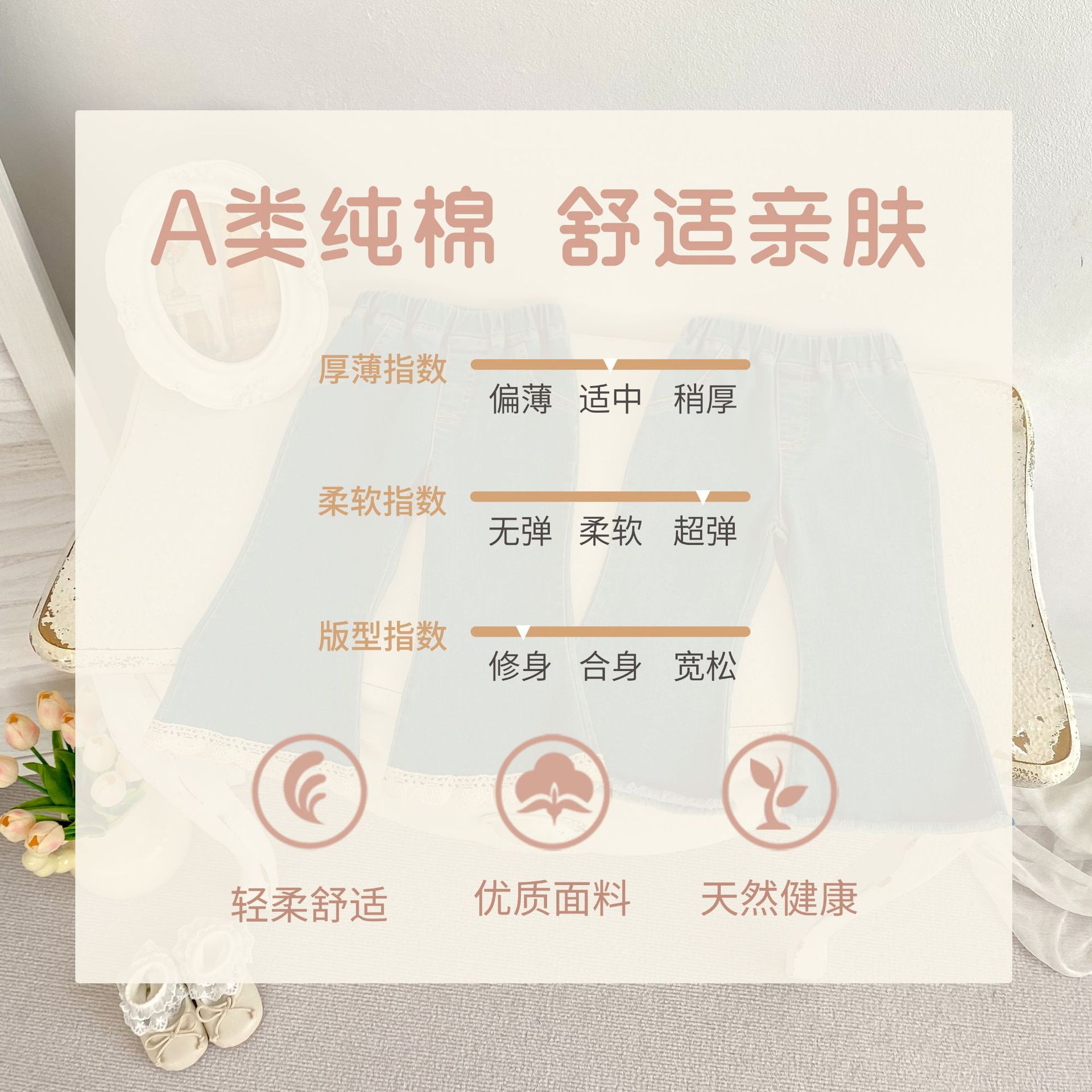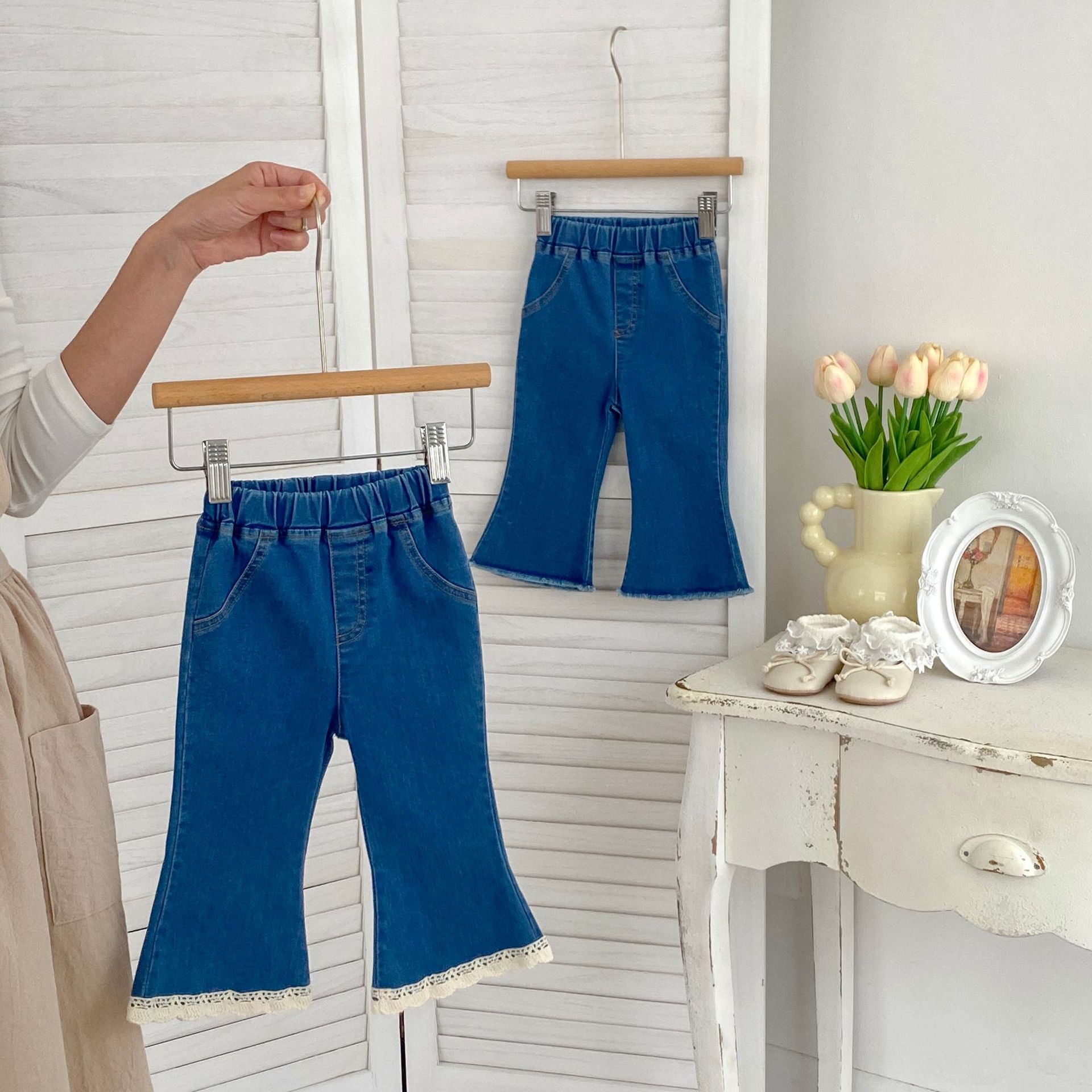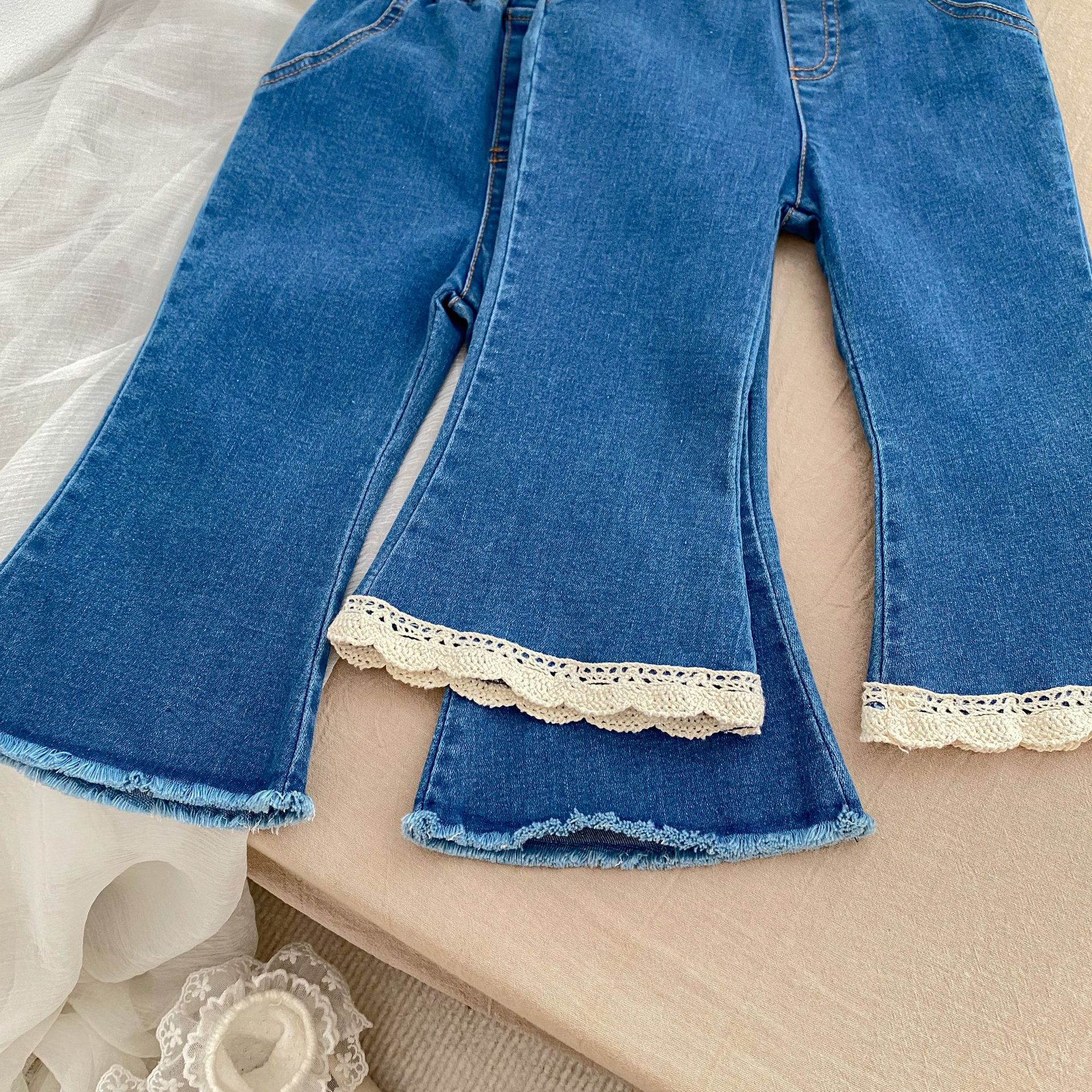 여아용 청바지 2025 봄 신상 패셔너블하고 다재다능한 여아용 마이크로 플레어 팬츠 한국 스타일 레이스 청바지스토어 가기