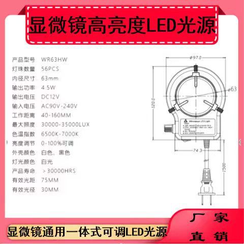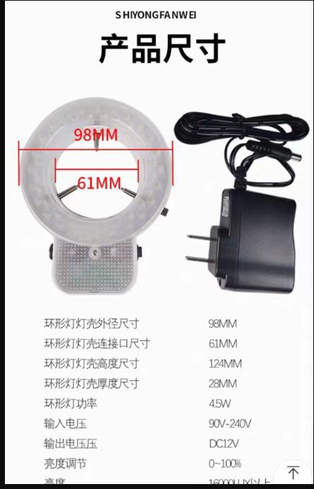 56 램프 비드 현미경 LED 링 광원 내경 63MM 조정 가능한 광원 스테레오 현미경 채우기 빛