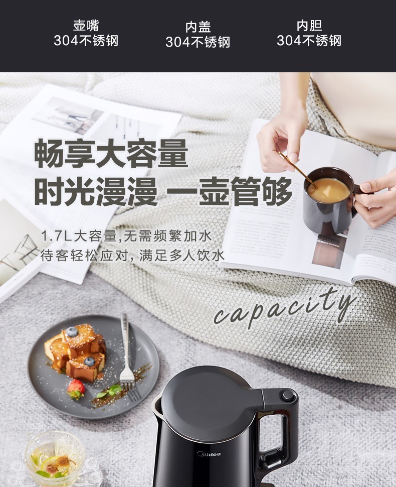 Midea 전기 주전자 가정용 스테인리스 주전자 자동 전원 끄기 주전자 전기 주전자 MK-SHJ1720스토어 가기