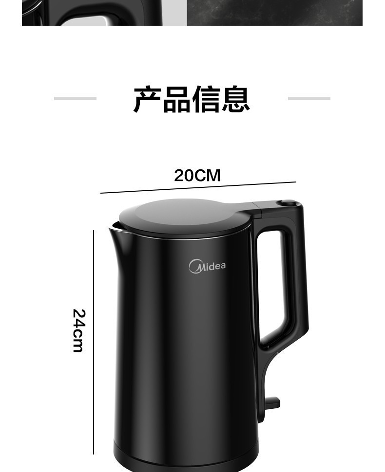 Midea 전기 주전자 가정용 스테인리스 주전자 자동 전원 끄기 주전자 전기 주전자 MK-SHJ1720