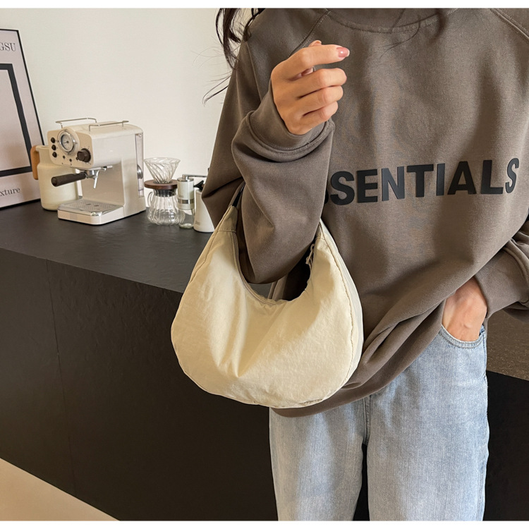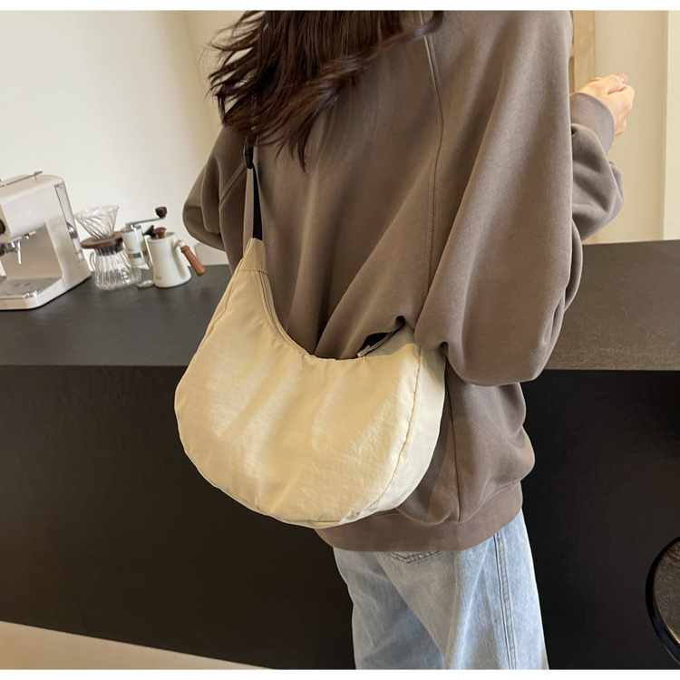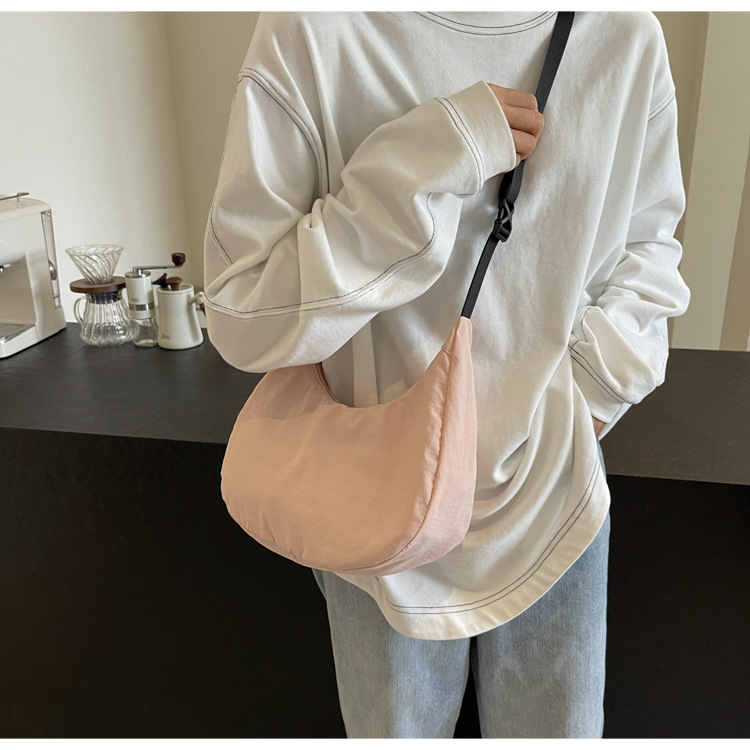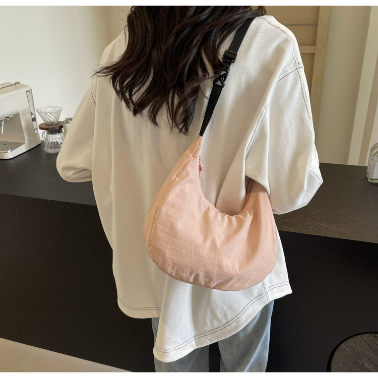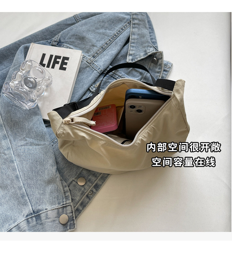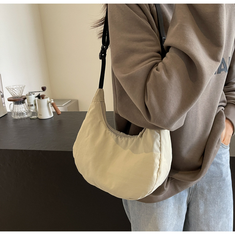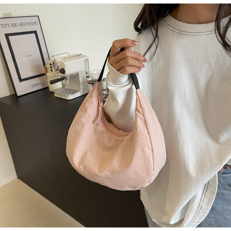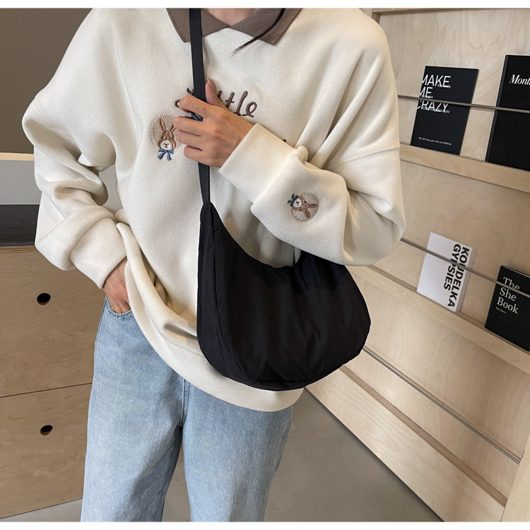 경량 만두 가방 여성 단색 나일론 헝겊 가방 캐주얼 핸드백 방수 어깨 크로스 바디 가방 일본과 한국 스타일의 작은 헝겊 가방스토어 가기