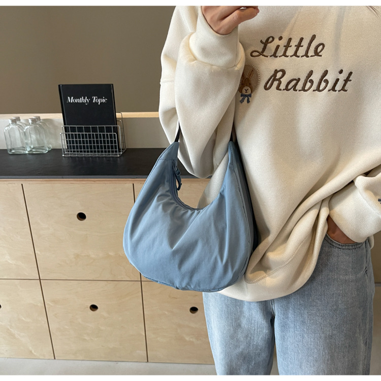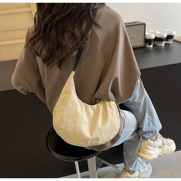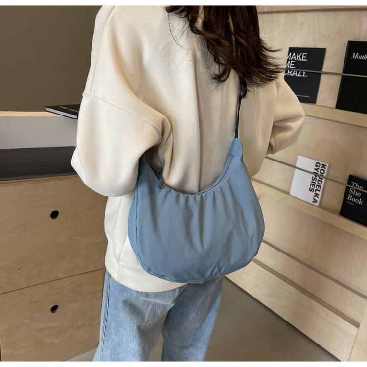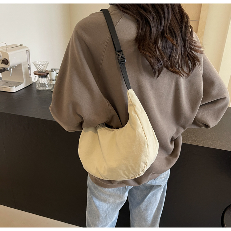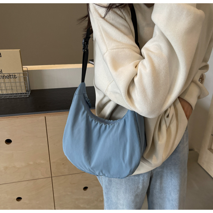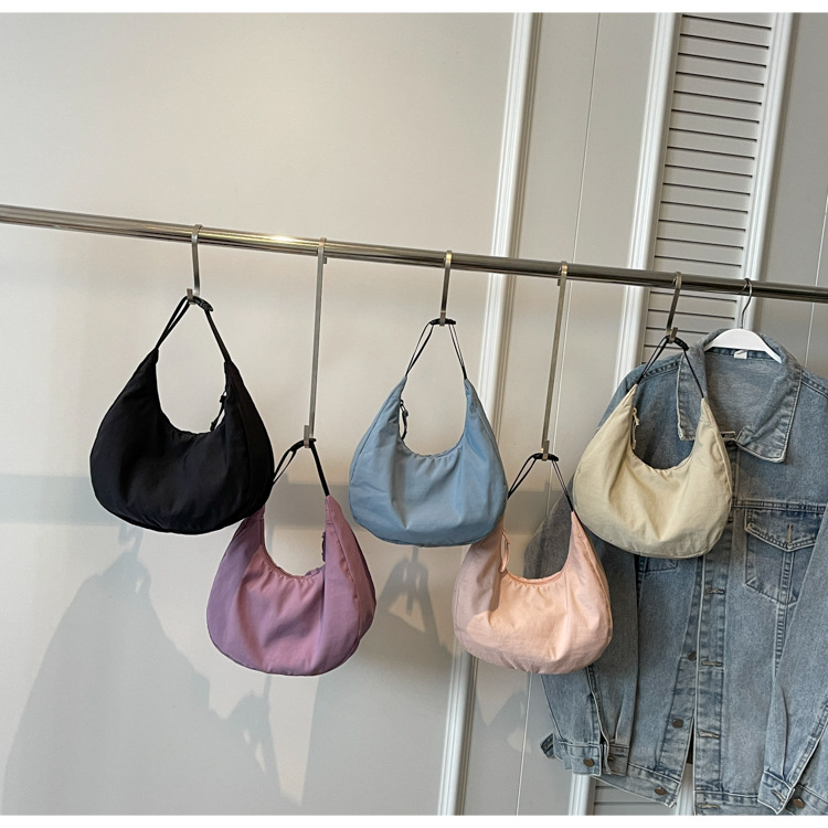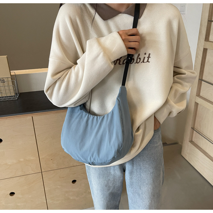 경량 만두 가방 여성 단색 나일론 헝겊 가방 캐주얼 핸드백 방수 어깨 크로스 바디 가방 일본과 한국 스타일의 작은 헝겊 가방스토어 가기