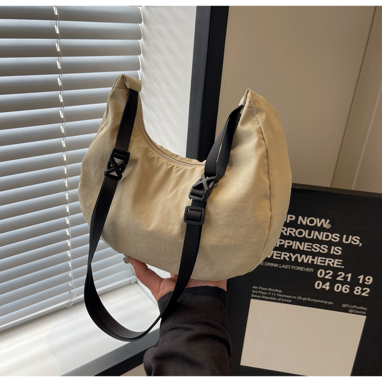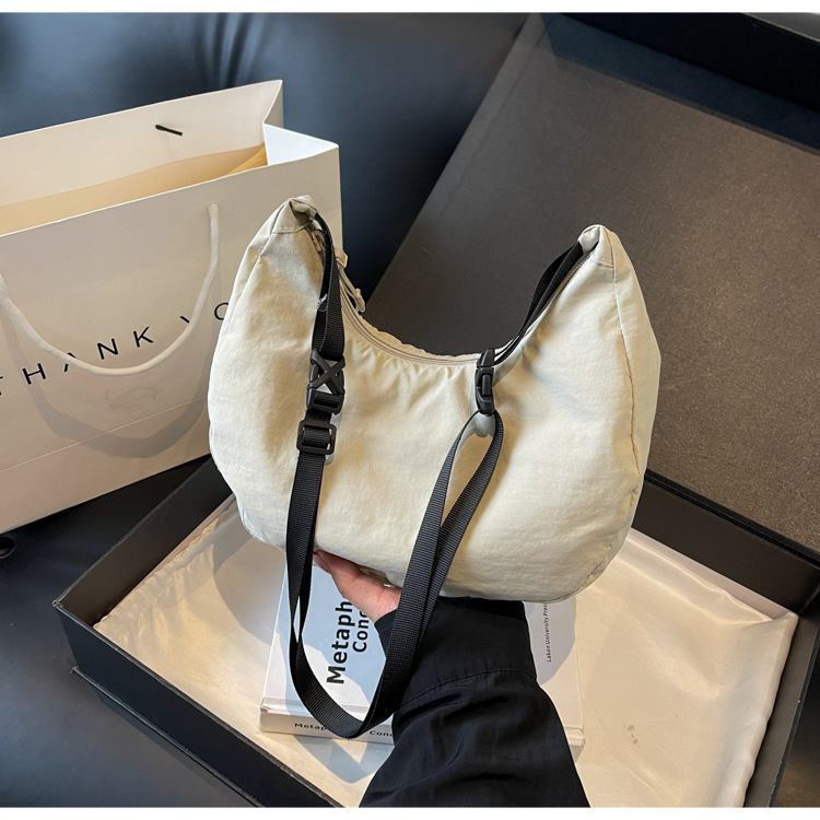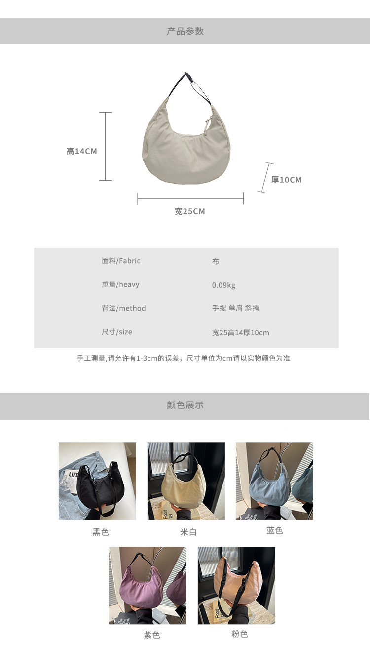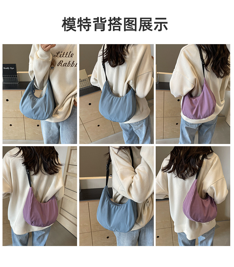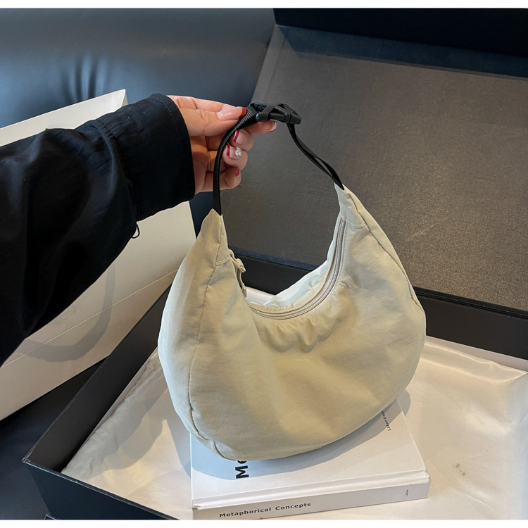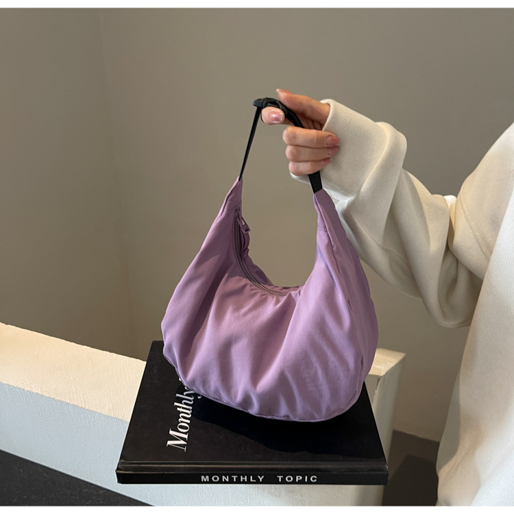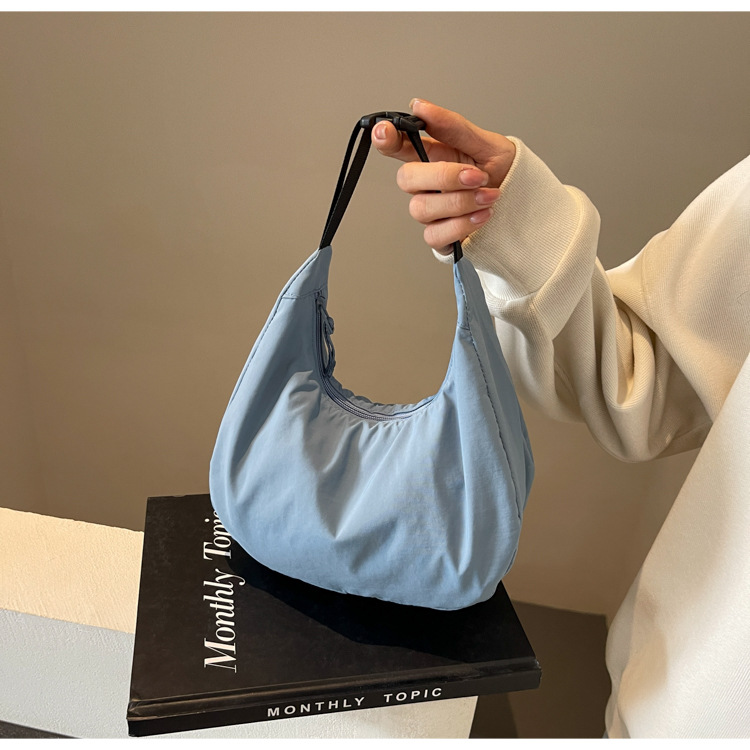 경량 만두 가방 여성 단색 나일론 헝겊 가방 캐주얼 핸드백 방수 어깨 크로스 바디 가방 일본과 한국 스타일의 작은 헝겊 가방스토어 가기