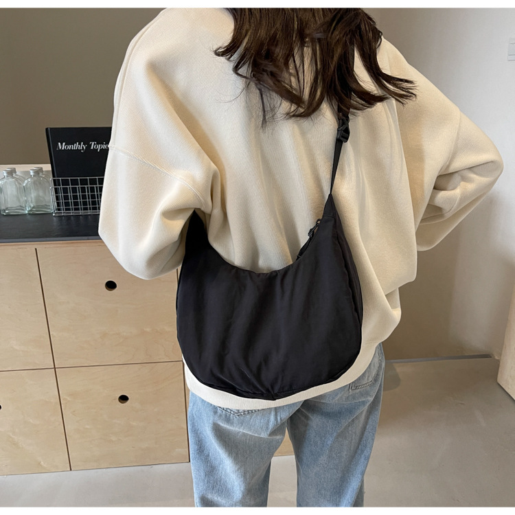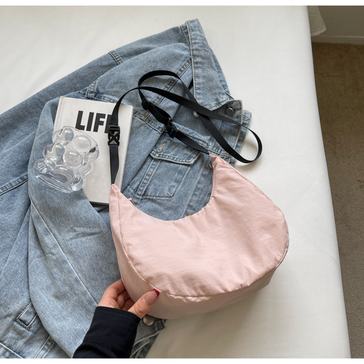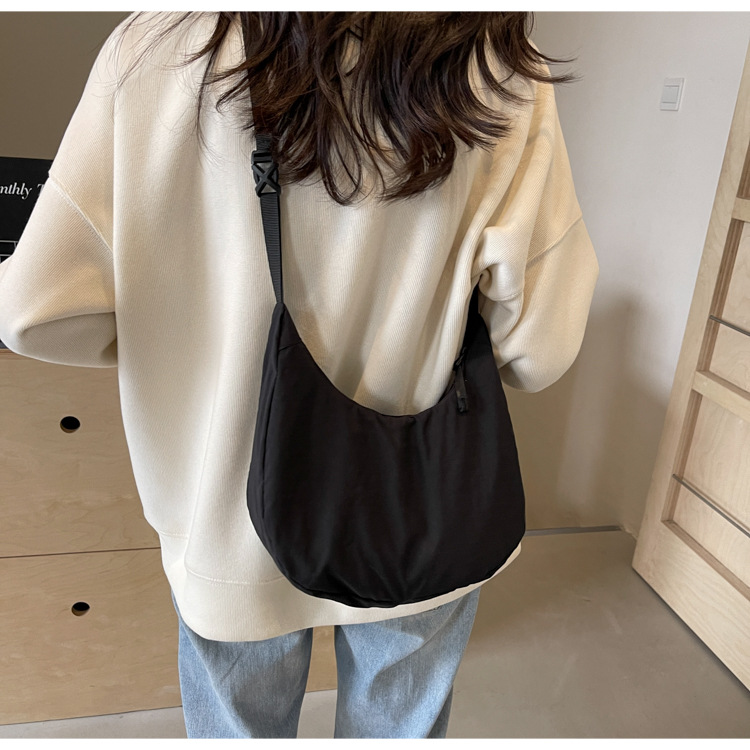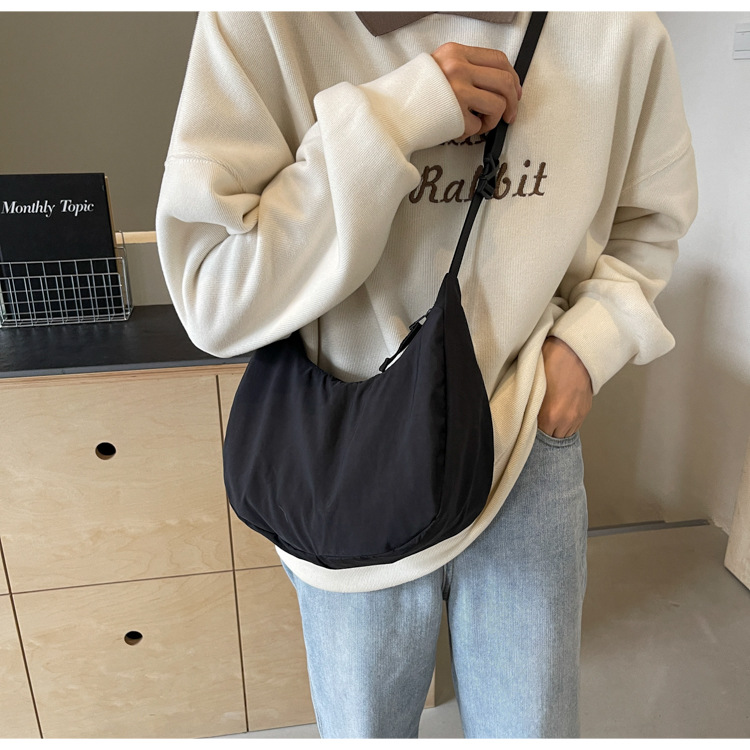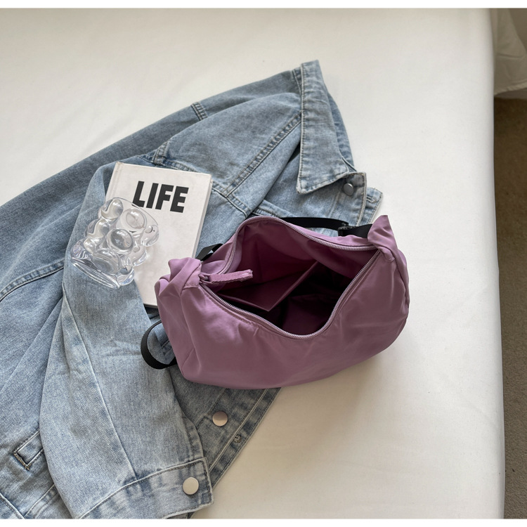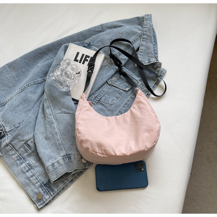 경량 만두 가방 여성 단색 나일론 헝겊 가방 캐주얼 핸드백 방수 어깨 크로스 바디 가방 일본과 한국 스타일의 작은 헝겊 가방
