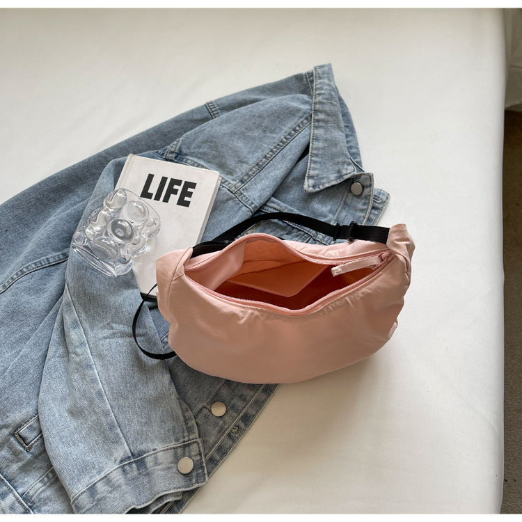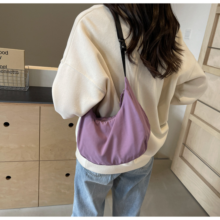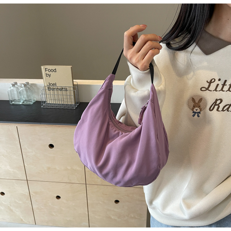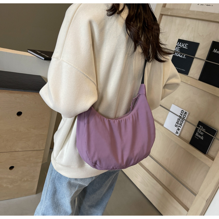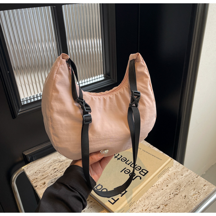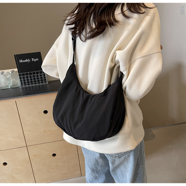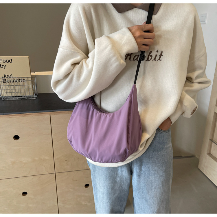 경량 만두 가방 여성 단색 나일론 헝겊 가방 캐주얼 핸드백 방수 어깨 크로스 바디 가방 일본과 한국 스타일의 작은 헝겊 가방