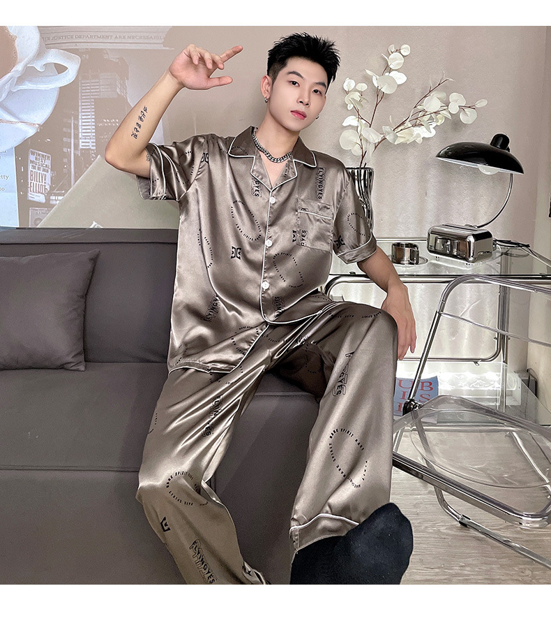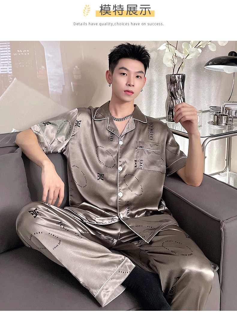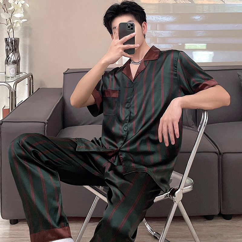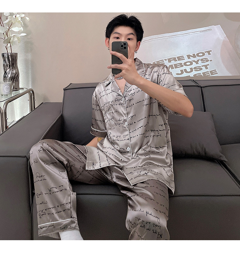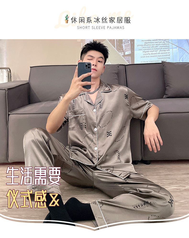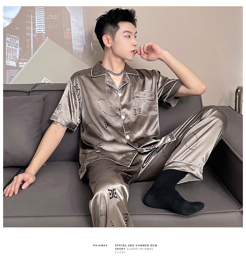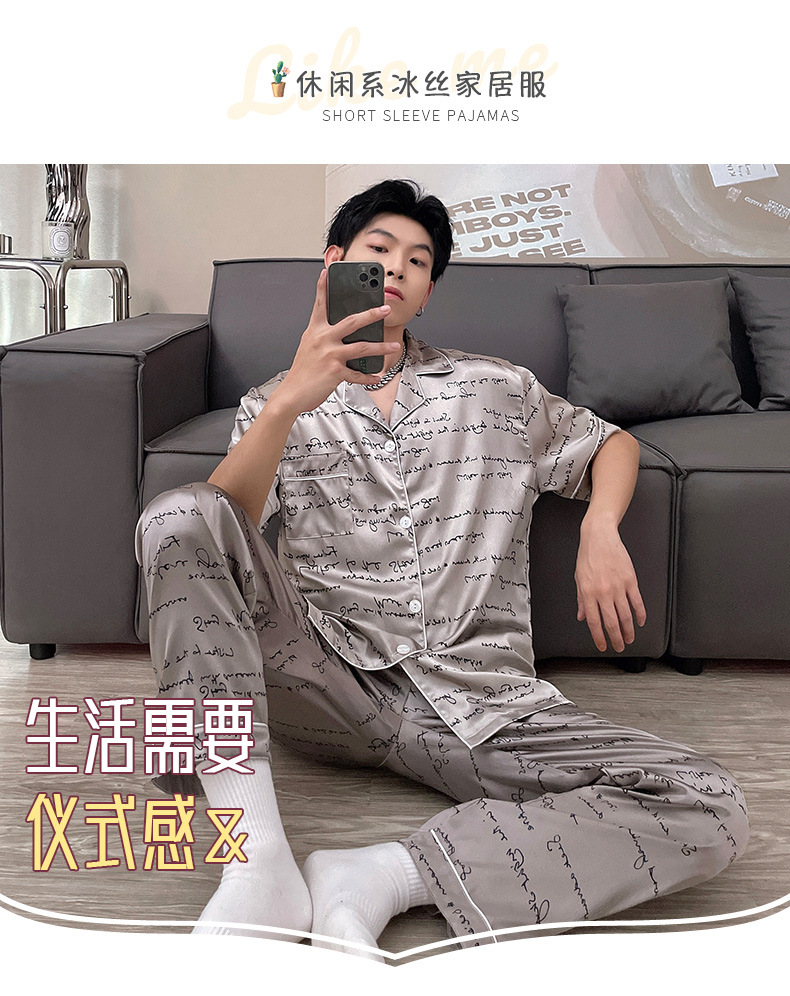 남자 잠옷 여름 반팔 반바지 아이스 실크 얇은 만화 플러스 사이즈 잠옷 남자 실크 세트 외부 착용