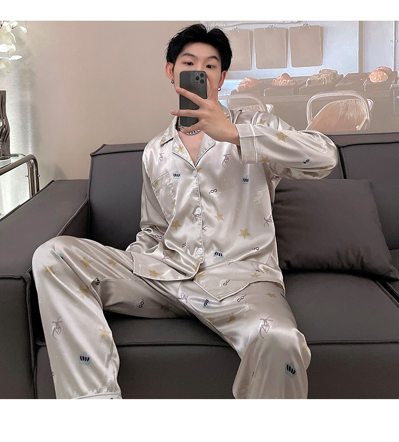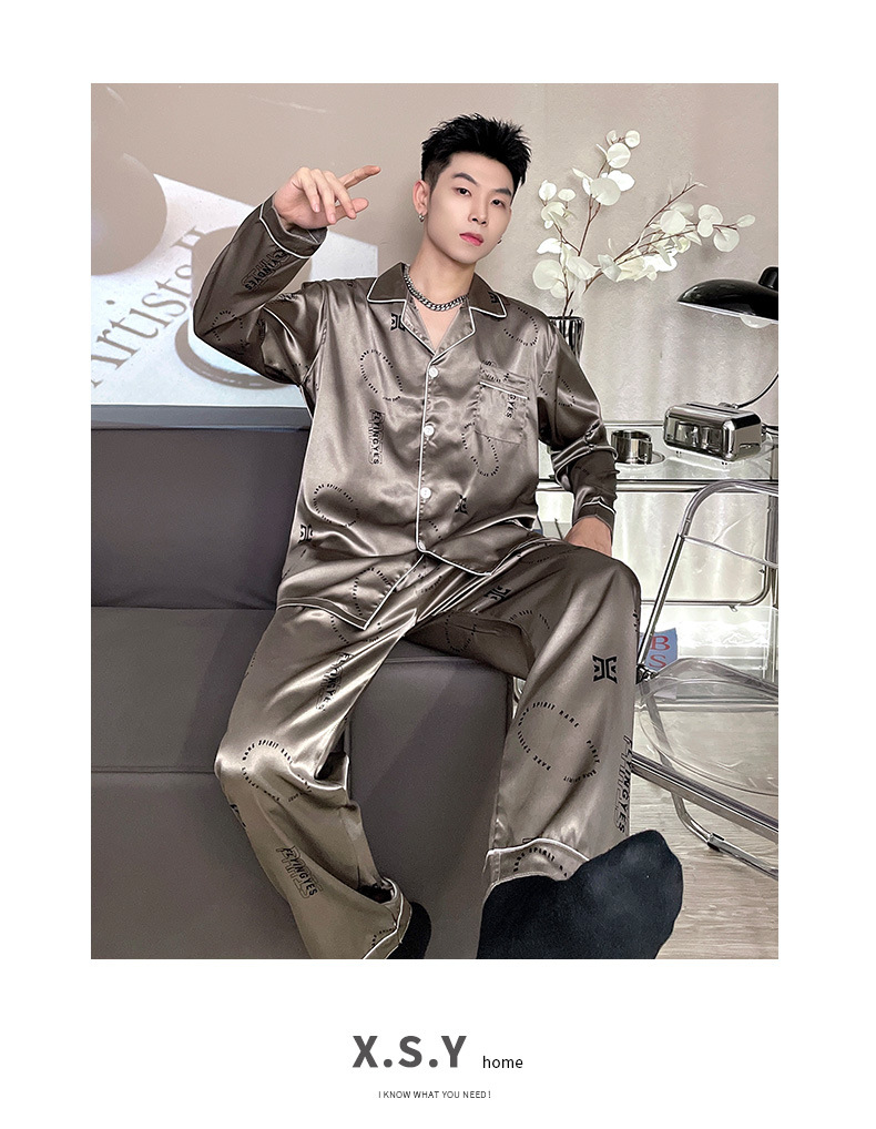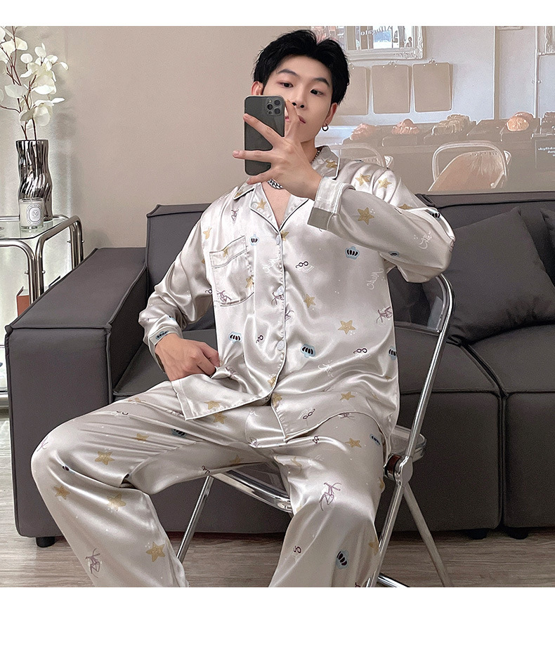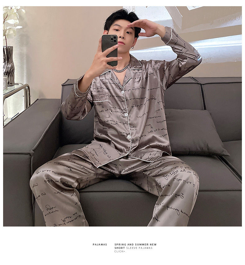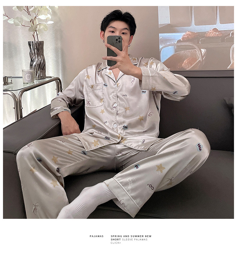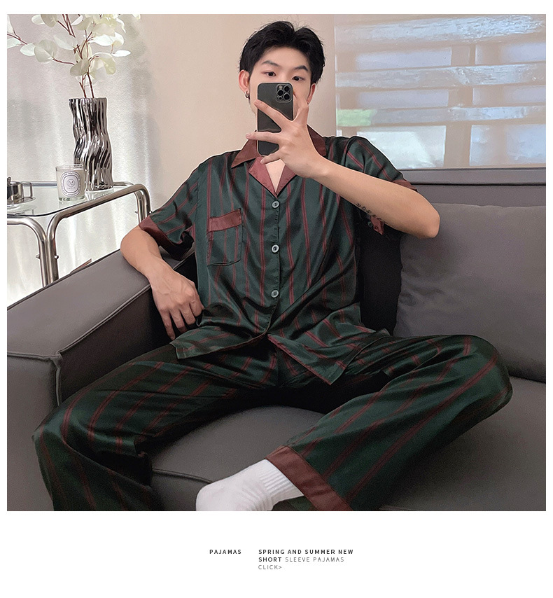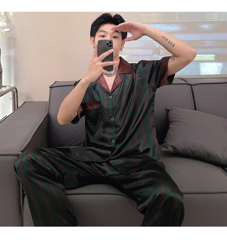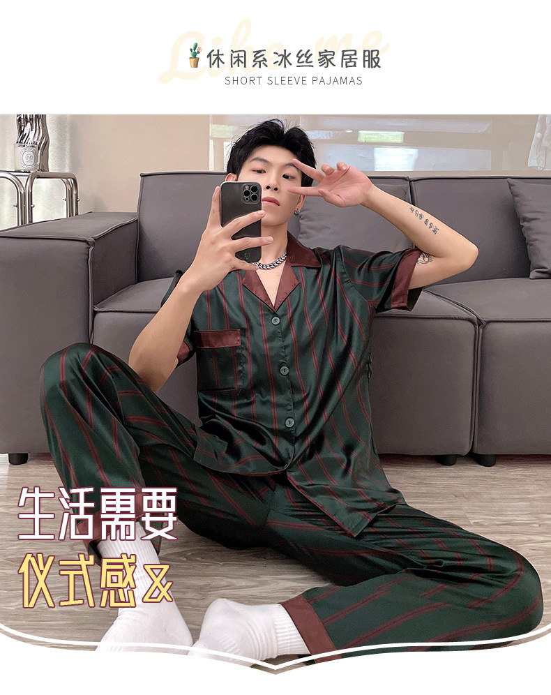 남자 잠옷 여름 반팔 반바지 아이스 실크 얇은 만화 플러스 사이즈 잠옷 남자 실크 세트 외부 착용