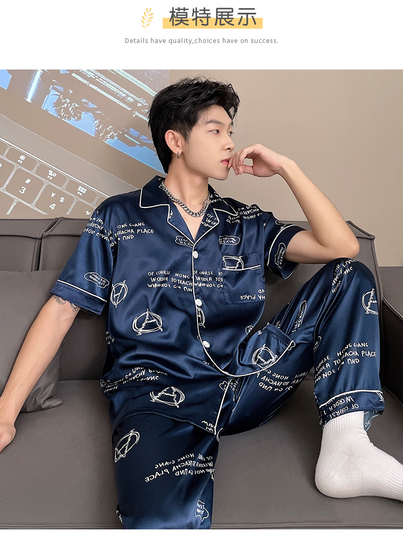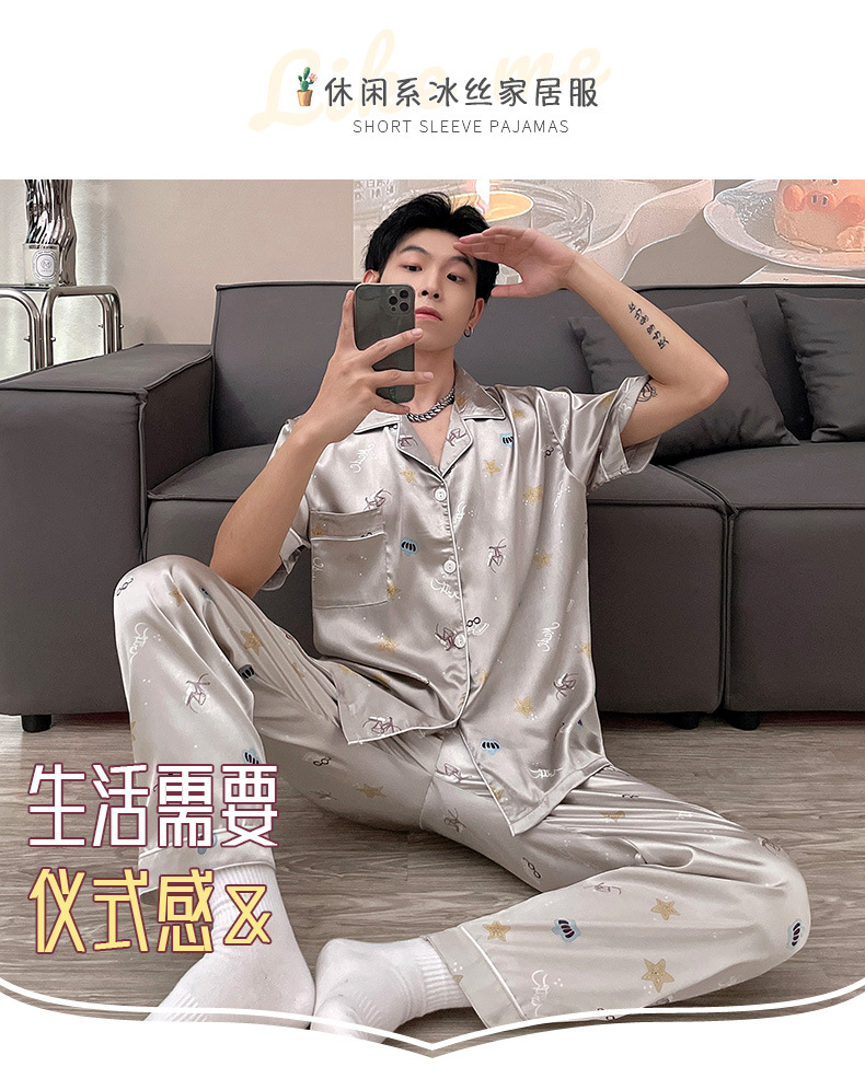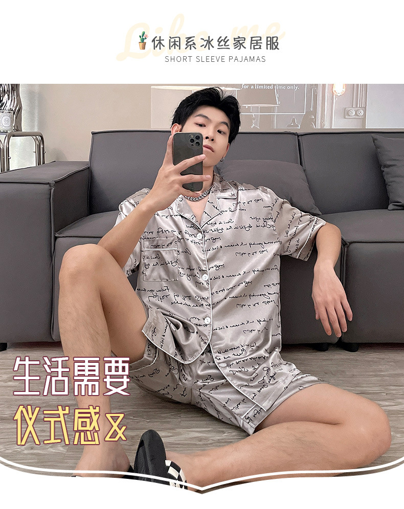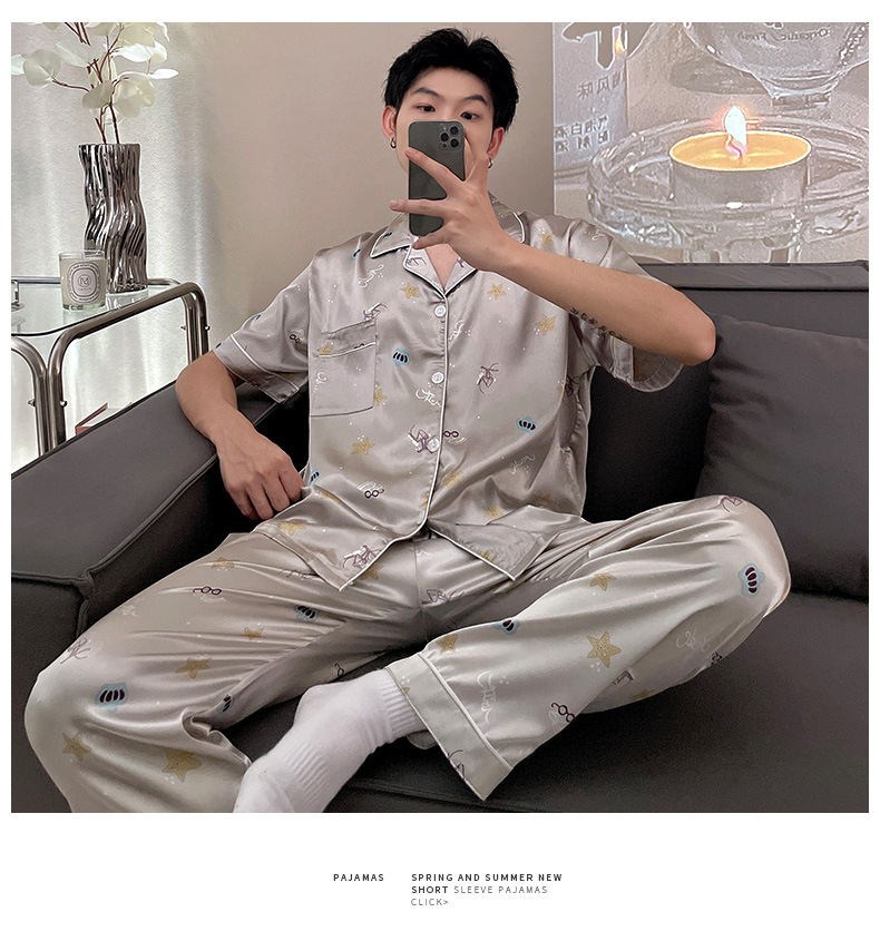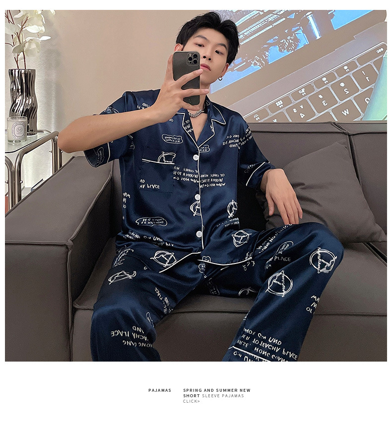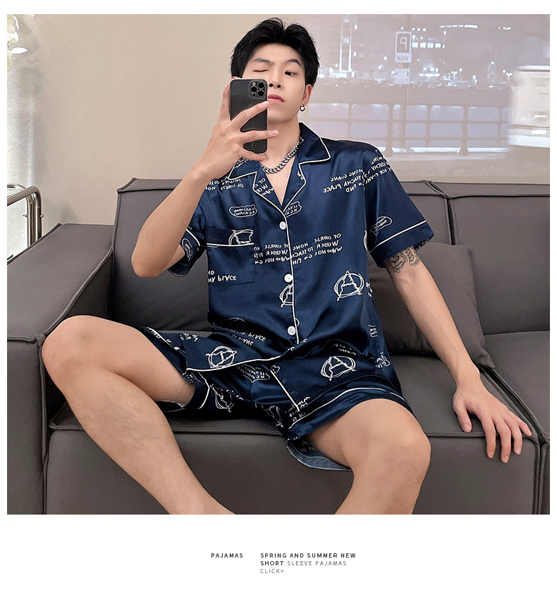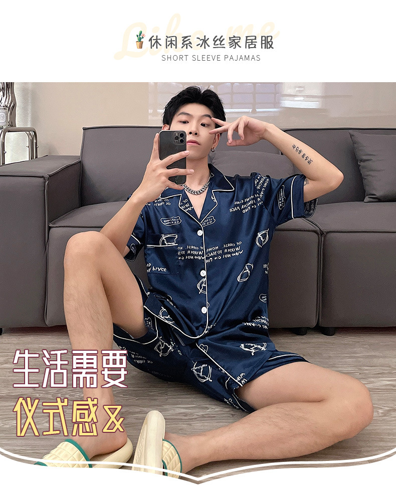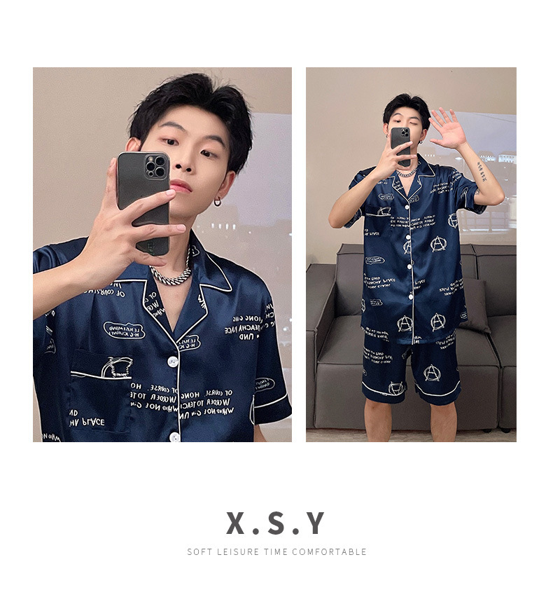 남자 잠옷 여름 반팔 반바지 아이스 실크 얇은 만화 플러스 사이즈 잠옷 남자 실크 세트 외부 착용스토어 가기