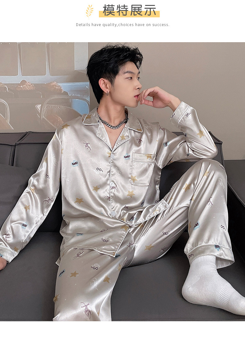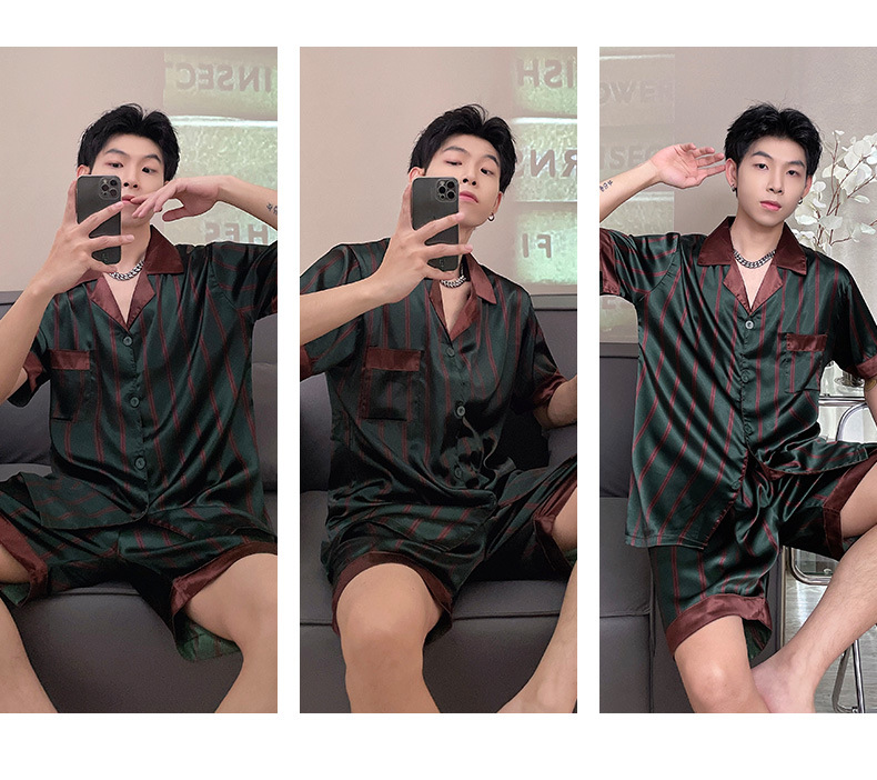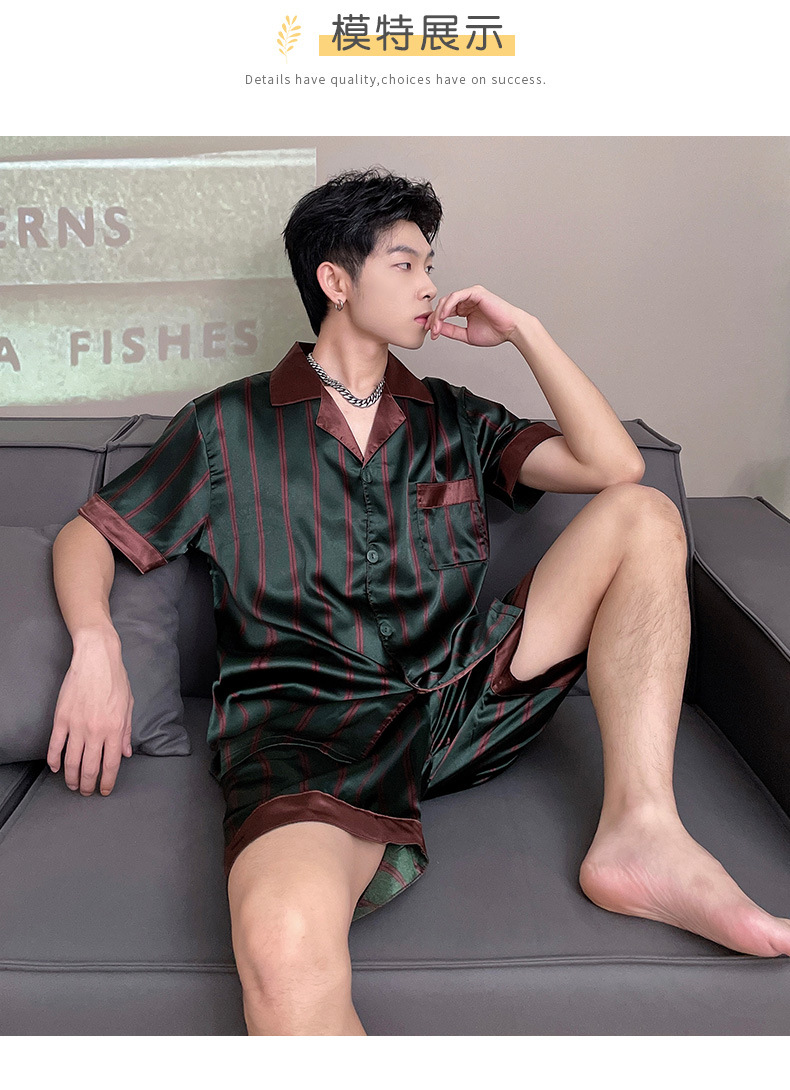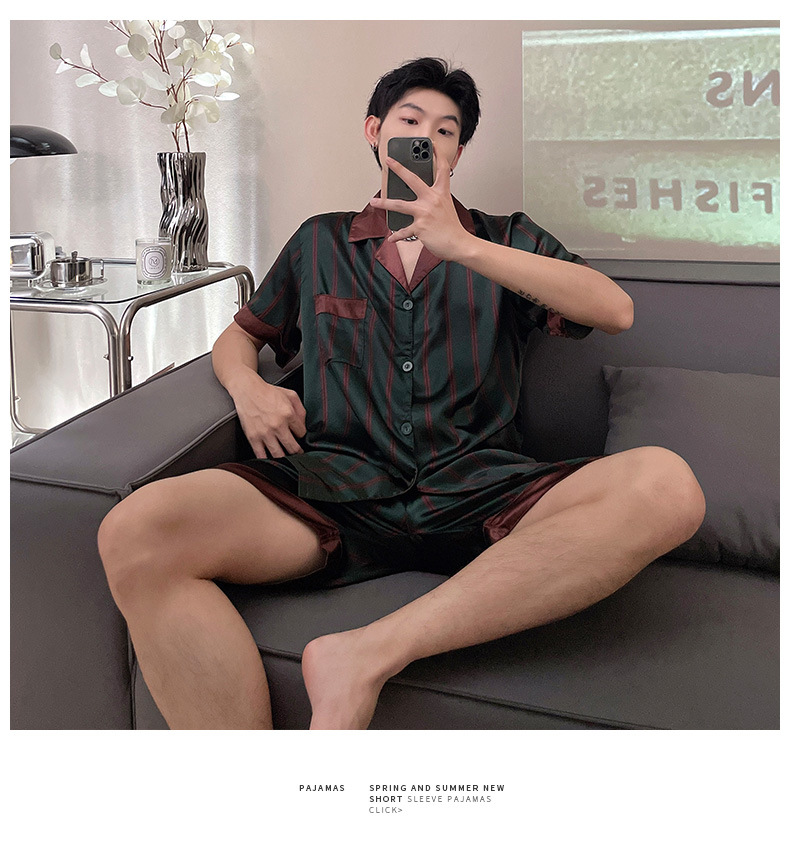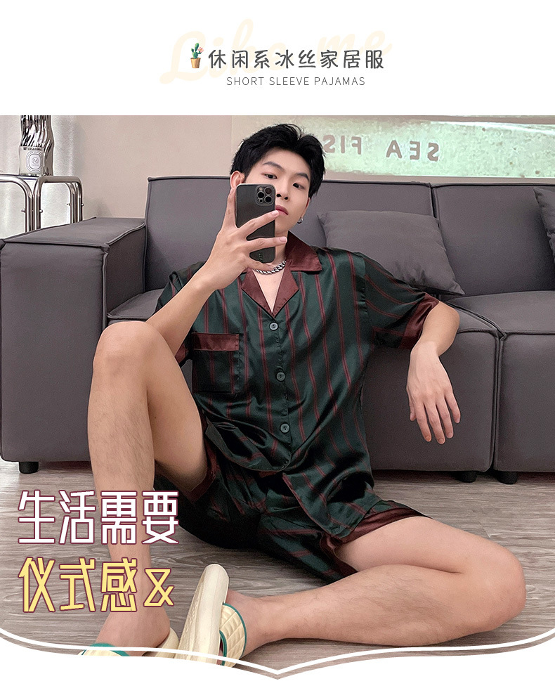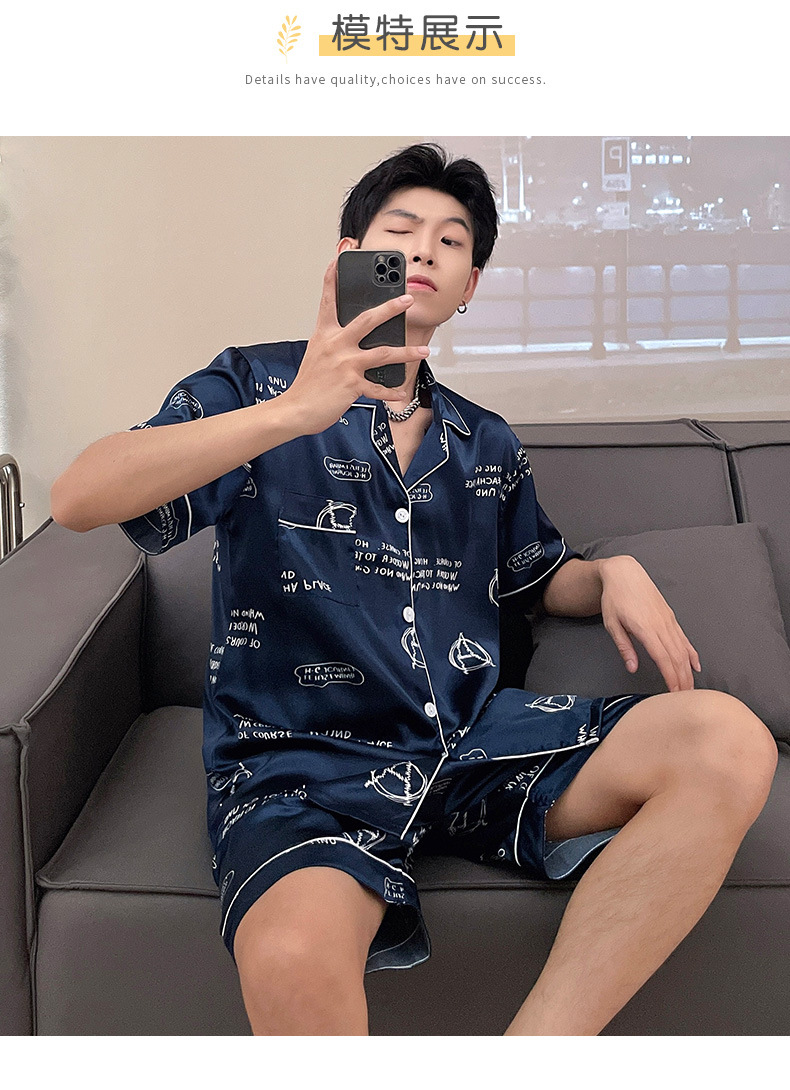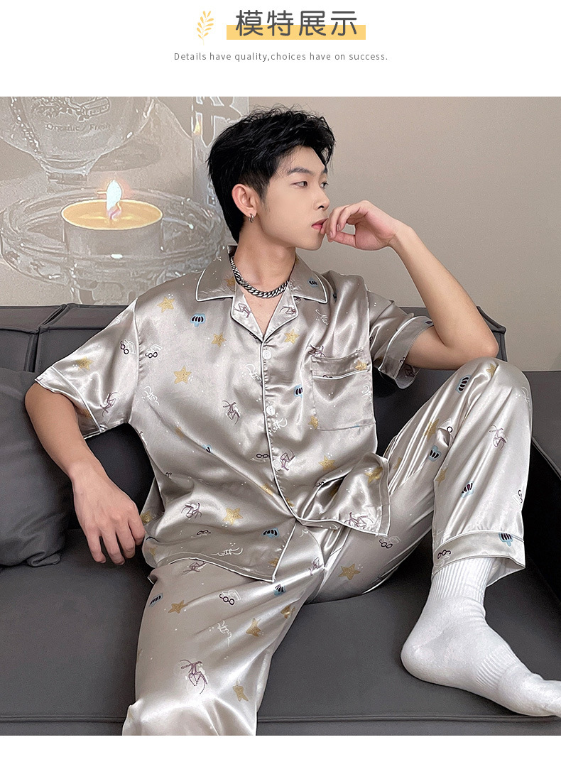 남자 잠옷 여름 반팔 반바지 아이스 실크 얇은 만화 플러스 사이즈 잠옷 남자 실크 세트 외부 착용스토어 가기