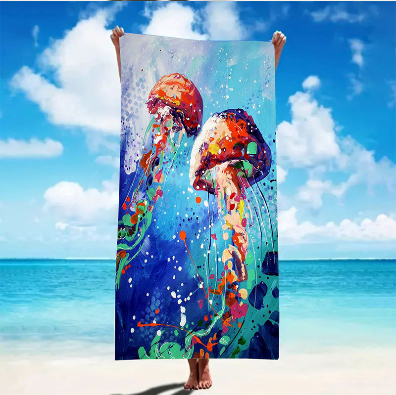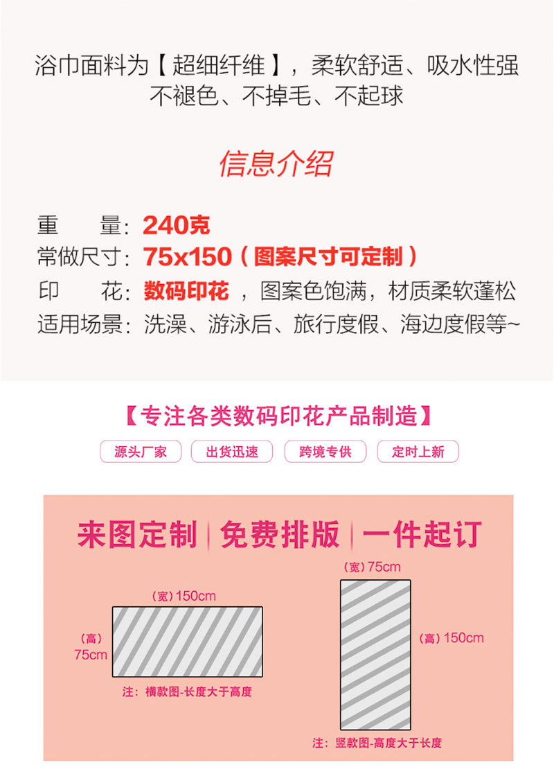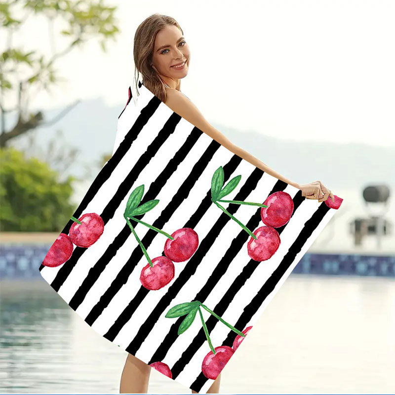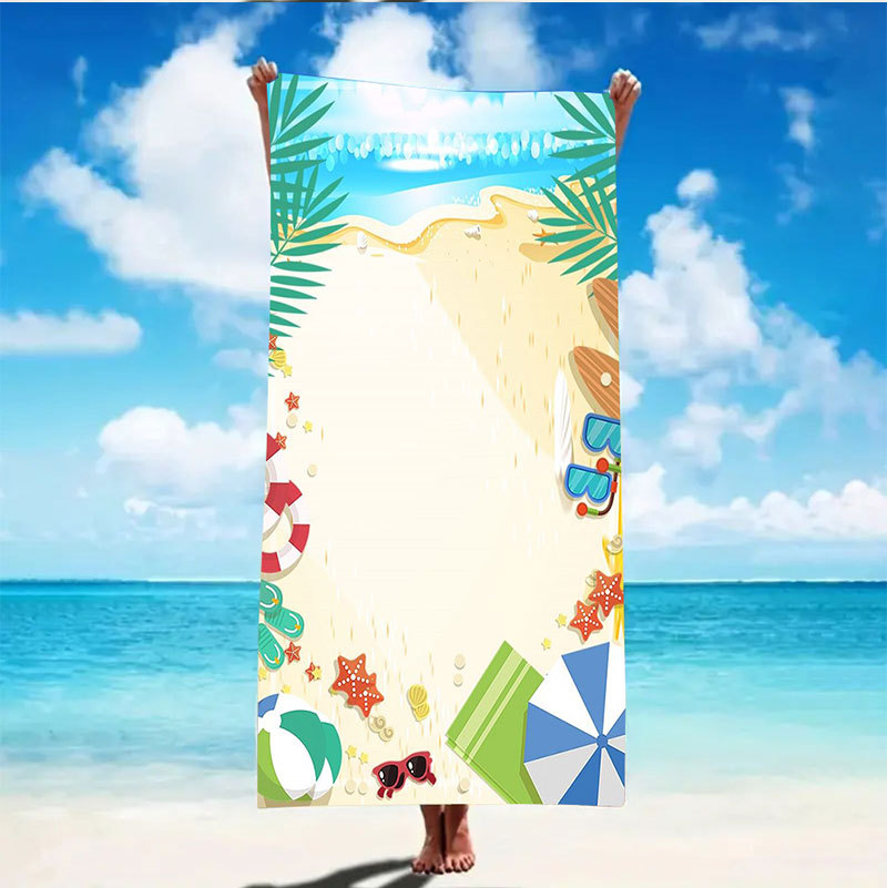 국경 간 마이크로 화이버 양면 벨벳 비치 타월 맞춤형 로고 디지털 인쇄 대형 목욕 타월 직사각형 두꺼운 수건