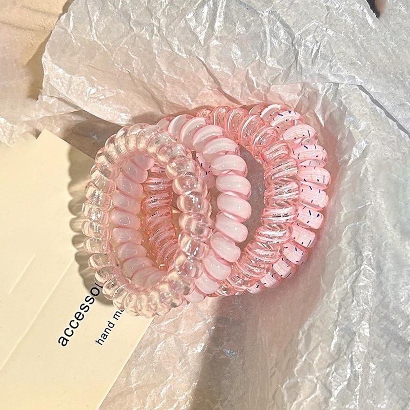 4 명의 한국 소녀 하이 퀄리티 민트 코코넛 웨이브 도트 전화선 여름 헤어 링 신선한 올 매치 헤어 로프