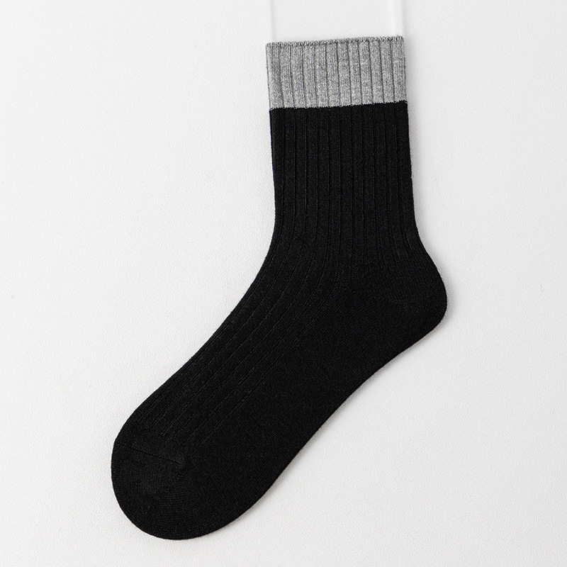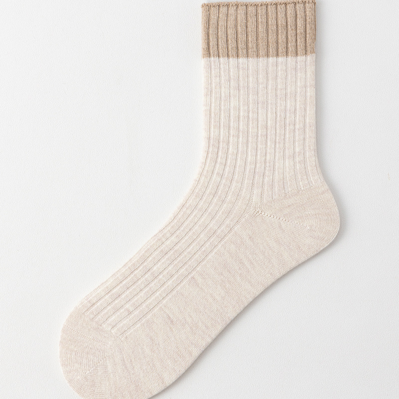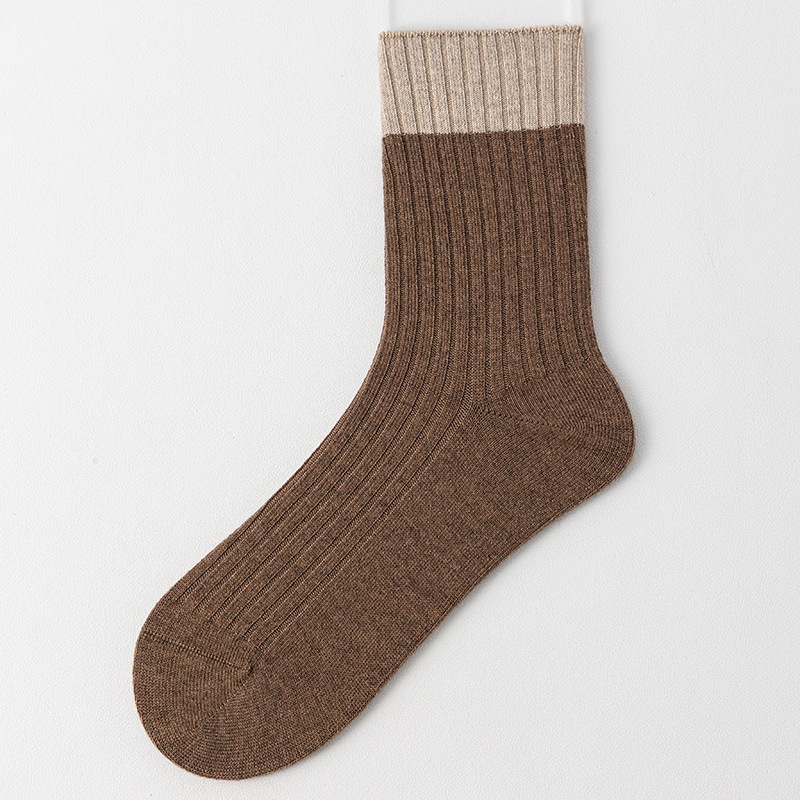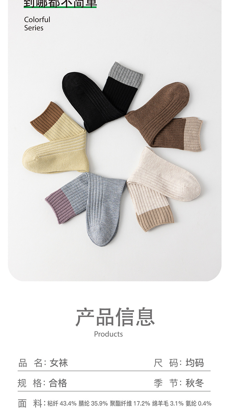 가을과 겨울 라커우 대비 색 양모 여성용 중장 양말 일본식 수직 줄무늬 두꺼운 따뜻한 양말 학술 스타일 캐주얼 양말스토어 가기