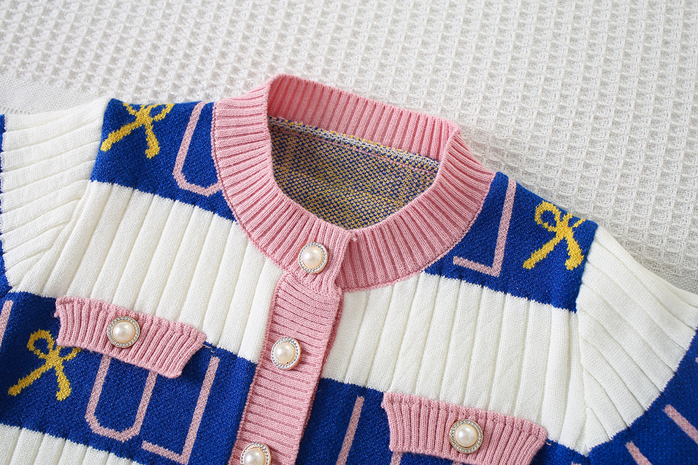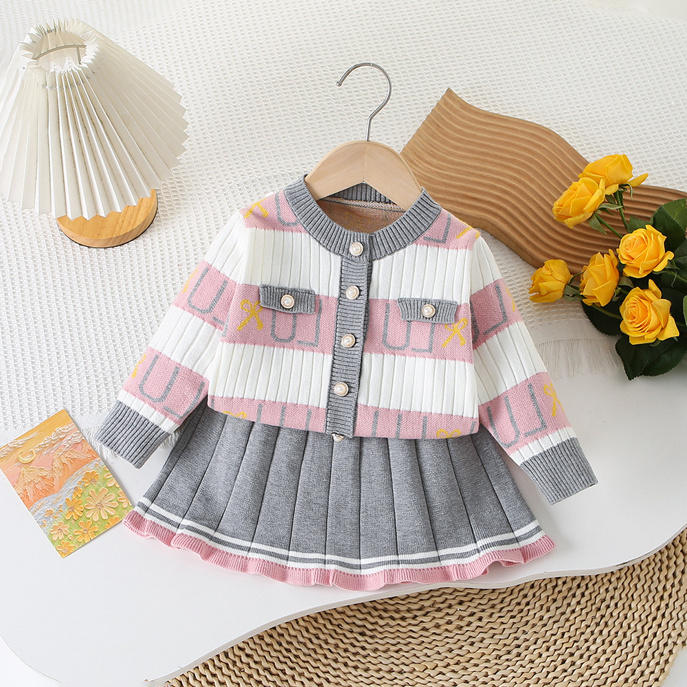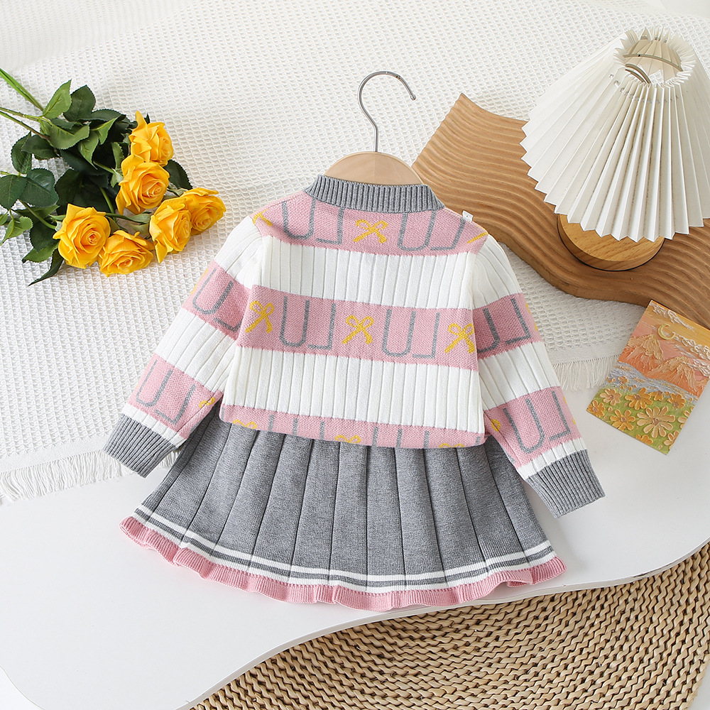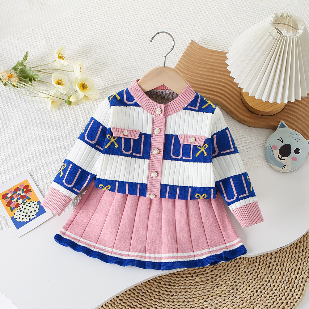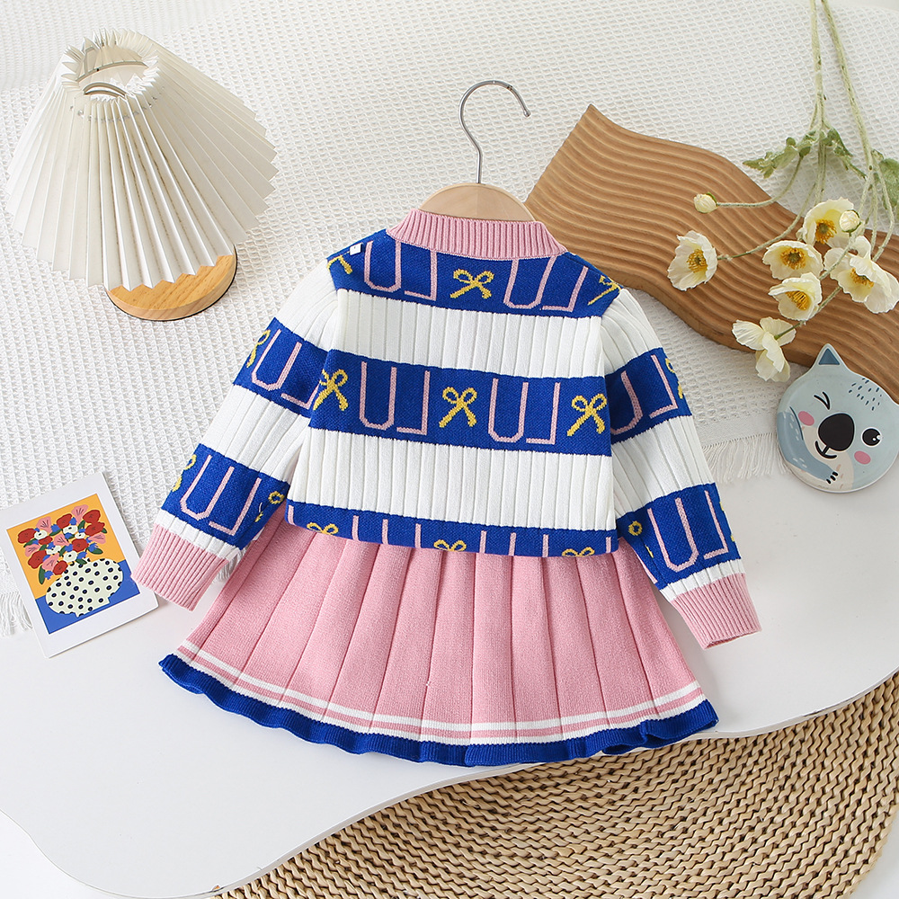 여자 스웨터 원피스 2024 여자 아기의 새로운 컬러 스트립 니트 투피스 한국 스타일 패션 카디건 탑