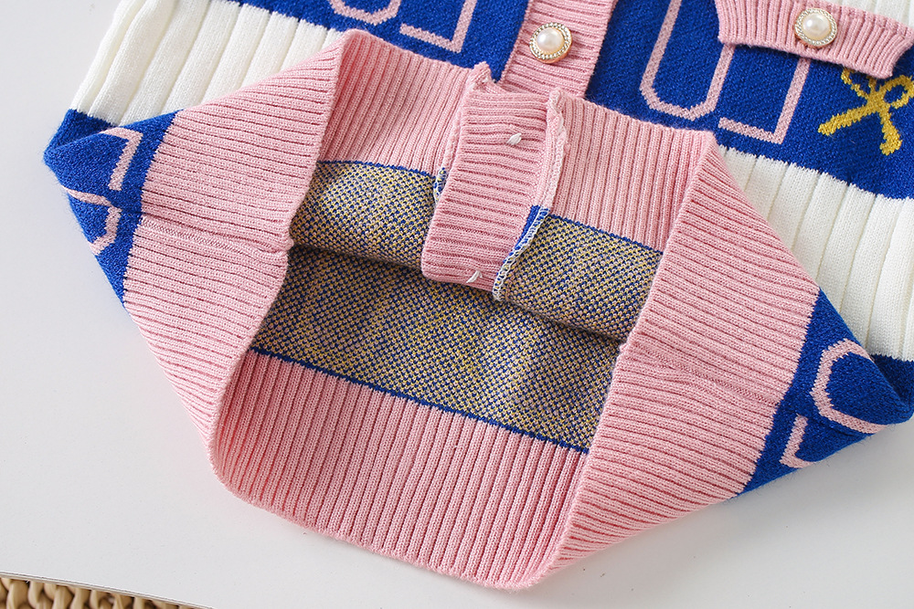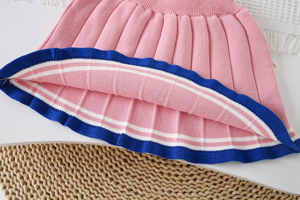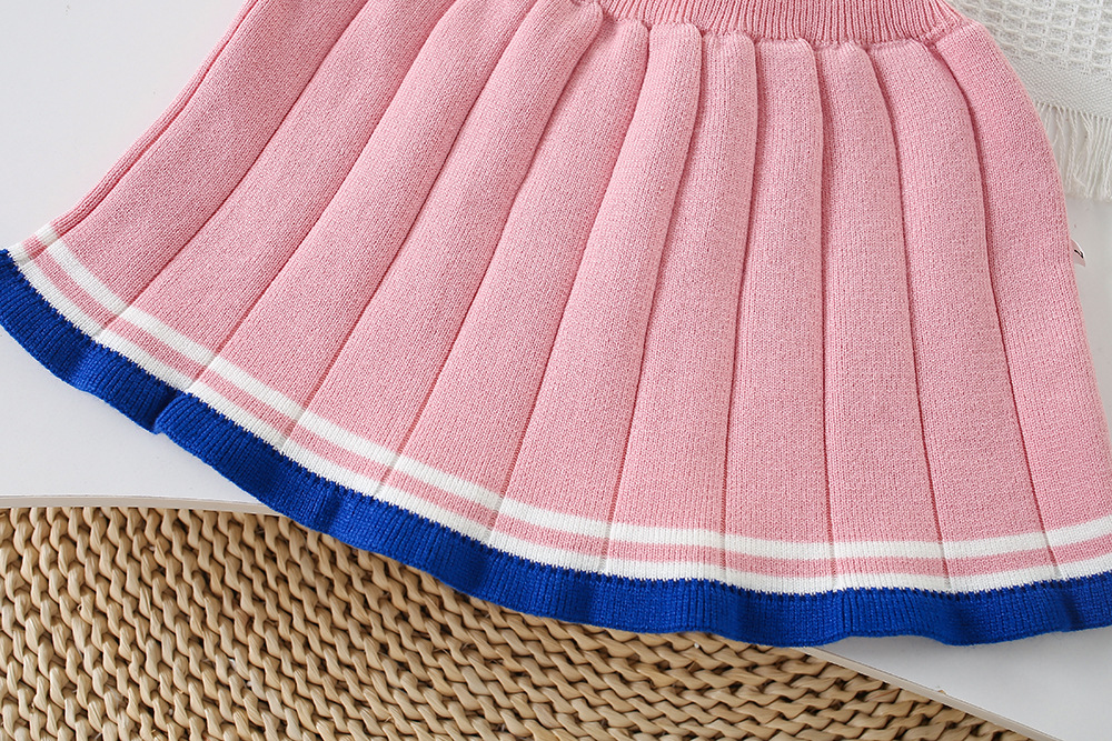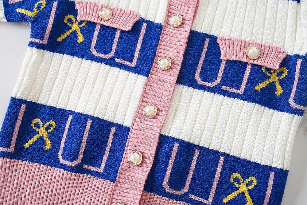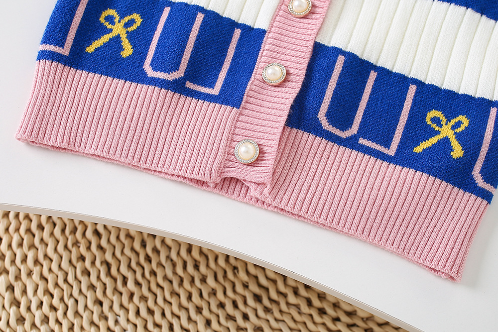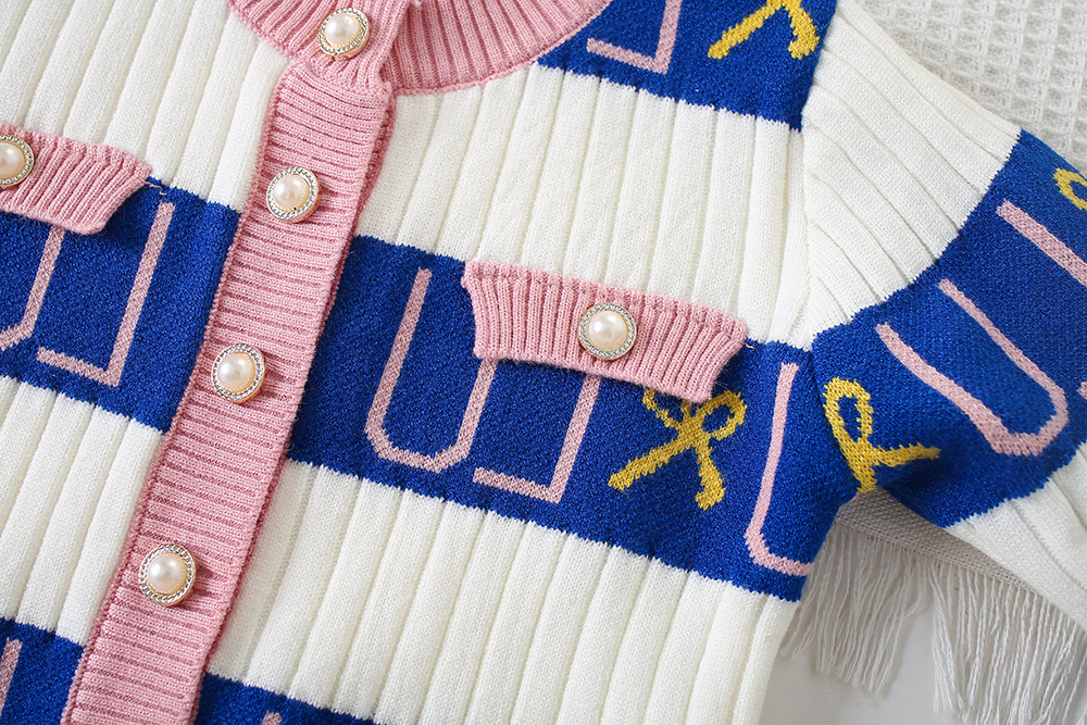 여자 스웨터 원피스 2024 여자 아기의 새로운 컬러 스트립 니트 투피스 한국 스타일 패션 카디건 탑