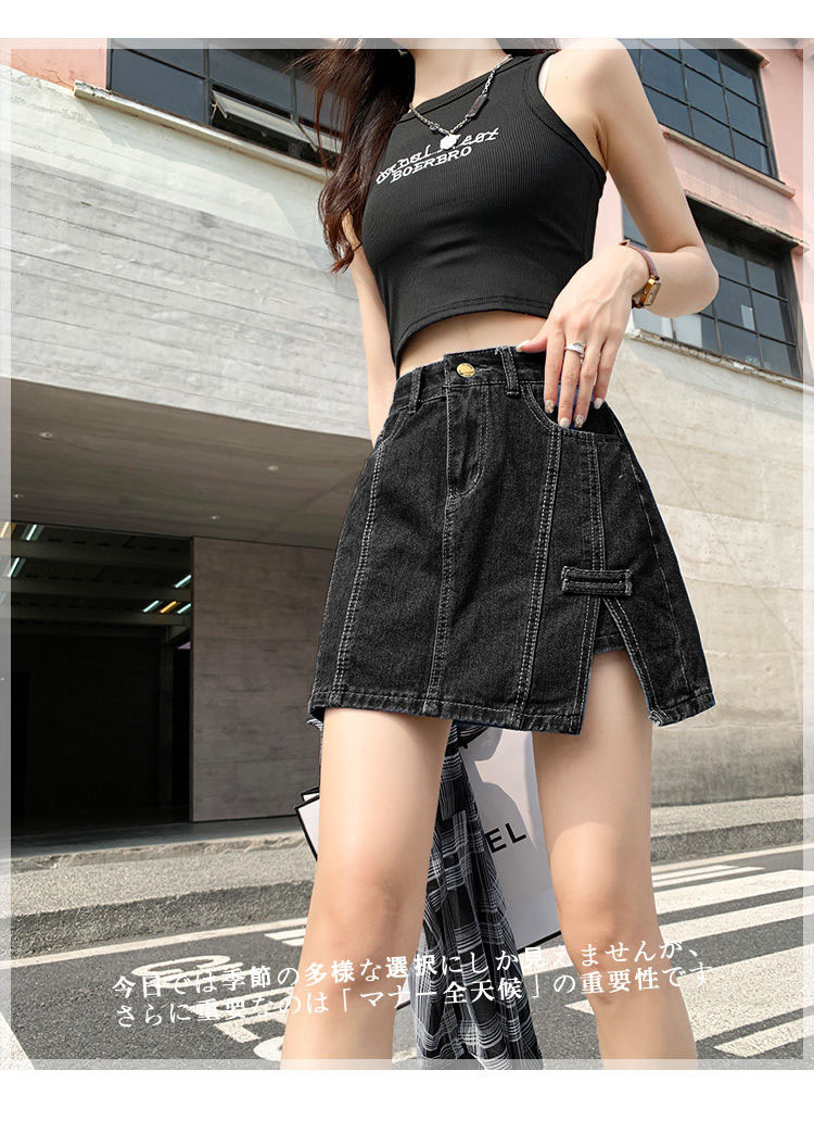분할 데님 짧은 치마 여자 치마 바지 여름 2024 새로운 높은 허리 슬리밍 A 라인 바지 안티 러닝 하프 길이 스커트