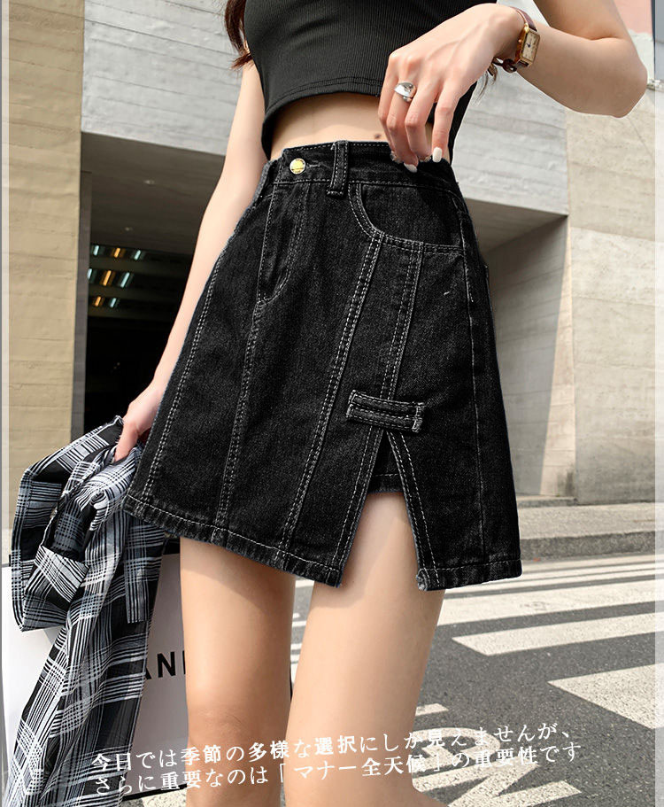 분할 데님 짧은 치마 여자 치마 바지 여름 2024 새로운 높은 허리 슬리밍 A 라인 바지 안티 러닝 하프 길이 스커트스토어 가기