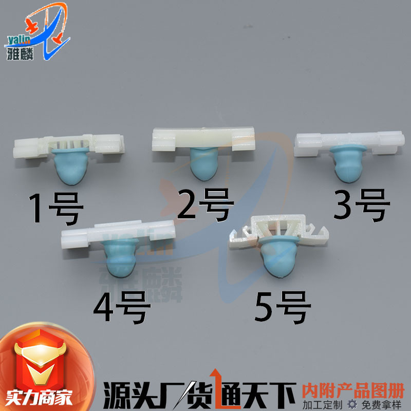 汽车位置用卡扣;汽车顶棚卡扣丰皮铆钉;内饰板卡扣;门饰板卡扣;护板卡扣;底边梁卡扣;座椅卡扣固定卡子;灯扣快丝座子贡螺丝;汽车锁扣;流水条卡扣;后备箱卡扣;叶子板内衬卡扣;机盖隔热板卡扣;隔热棉卡子;密封条卡扣;轮门卡扣;支撑杆卡扣;玻璃托卡扣;玻璃扣;脚垫卡扣;子母扣;双合扣;压条卡扣;保险杠卡扣(前杠 后杠);中网卡扣;机盖扣;穿芯钉;穿心钉;窗帘扣;地板扣;地毯扣;水管卡;油管卡;线卡;德式卡箍;美食喉箍;强力水管卡子;喷水嘴卡扣;压条钉;门提;门保险;开尾销钉;膨胀扣;膨胀螺丝;螺丝扣;膨胀螺丝扣;抽芯钉;胶墩;衬套;金属叶子板螺丝;铁片;螺钉;螺母;铁卡子