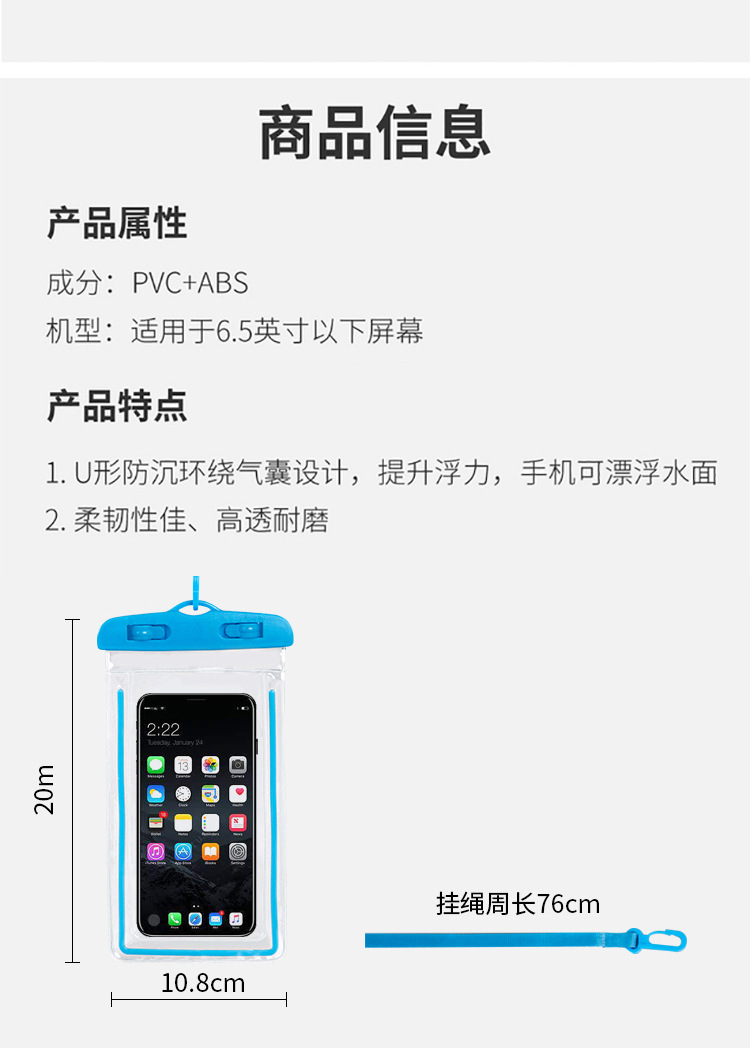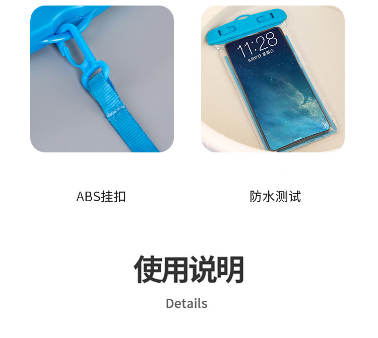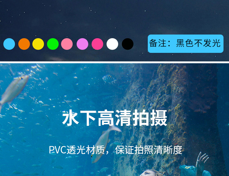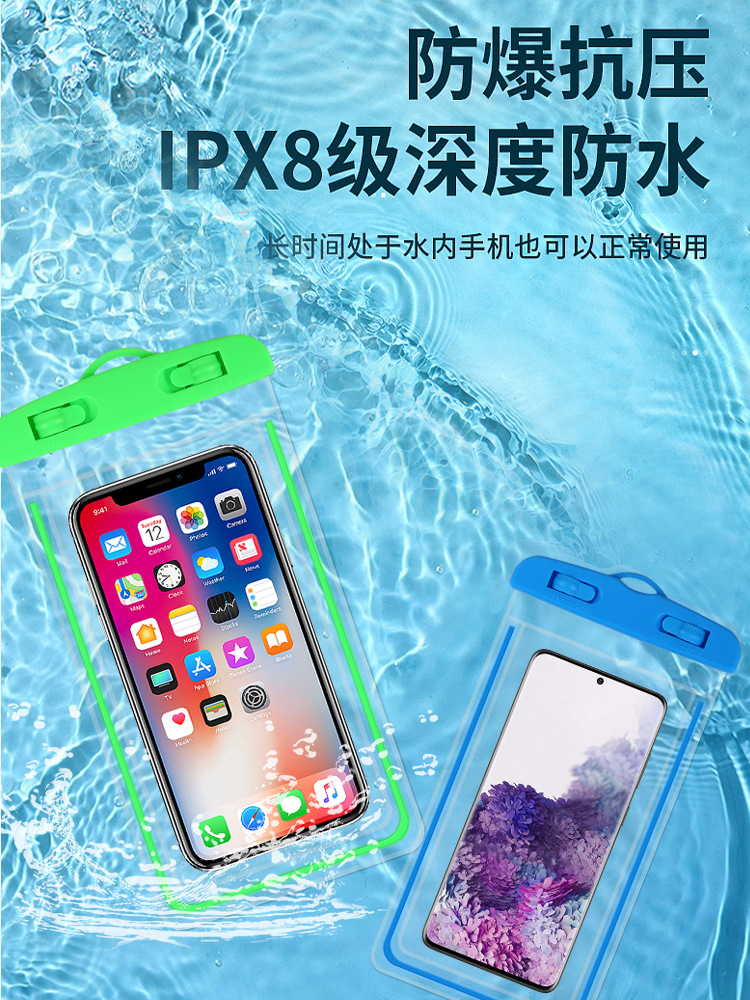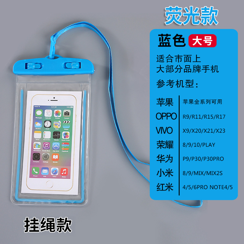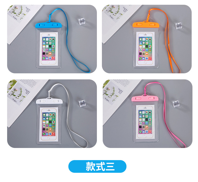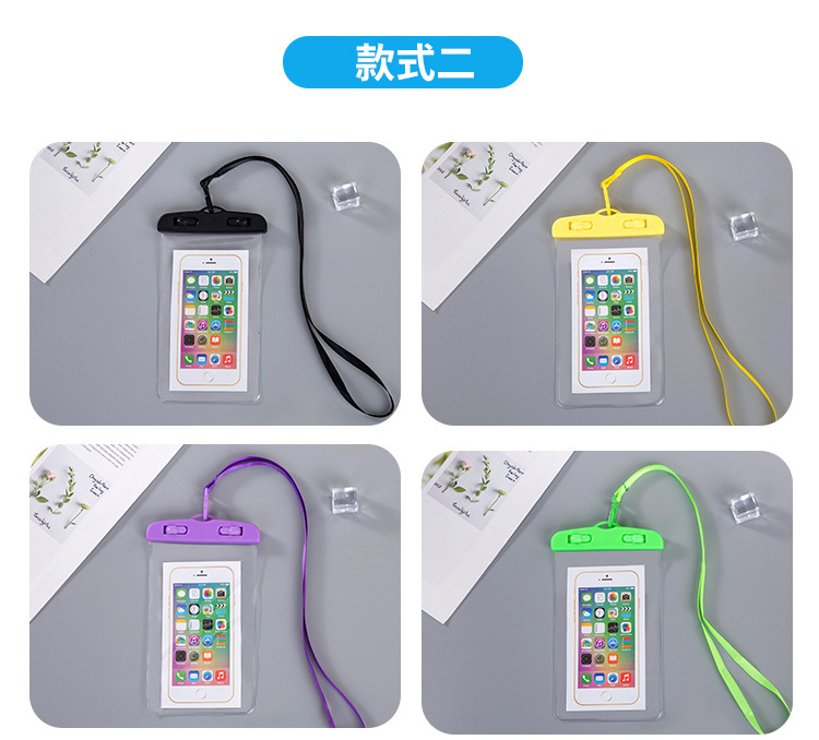 PVC 빛나는 투명 형광 휴대 전화 방수 가방 터치 스크린 빛나는 소매 수영 방수 가방 수영 표류 씰