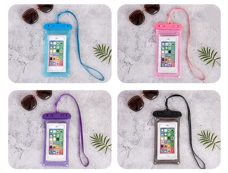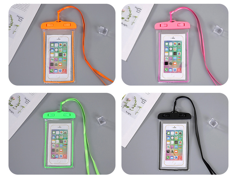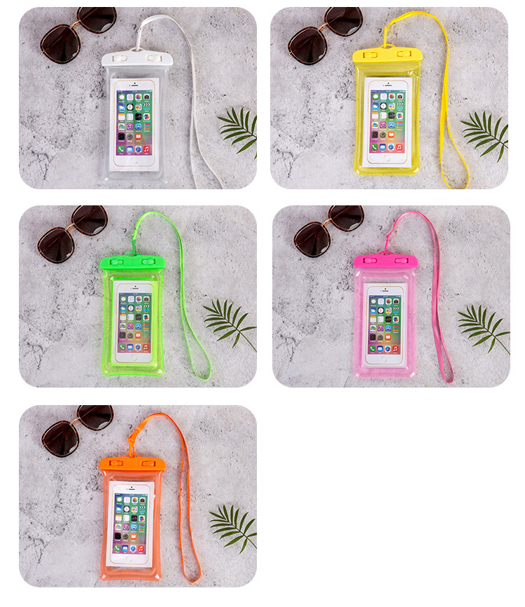 PVC 빛나는 투명 형광 휴대 전화 방수 가방 터치 스크린 빛나는 소매 수영 방수 가방 수영 표류 씰스토어 가기