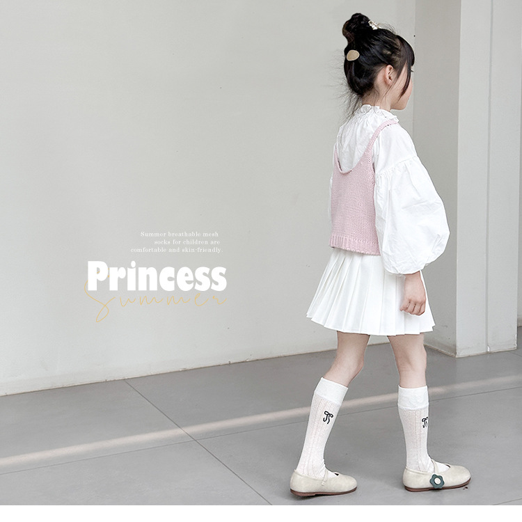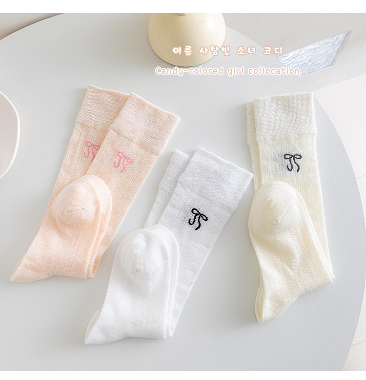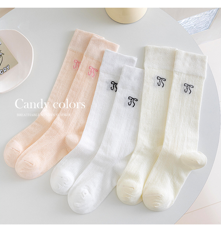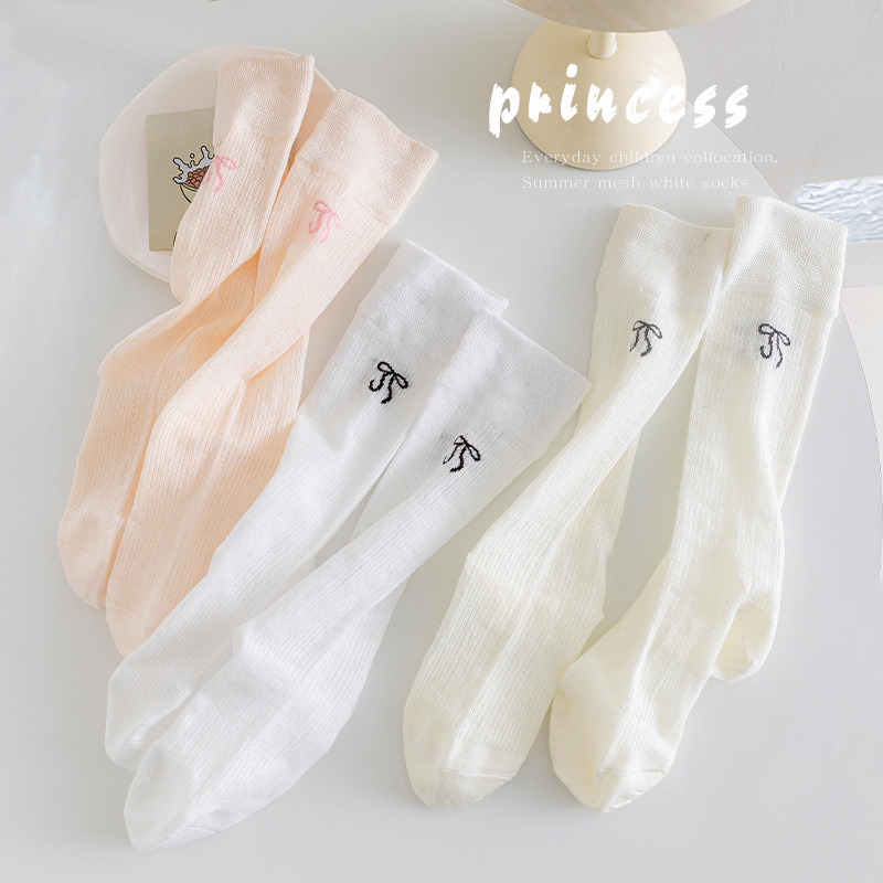 소녀 긴 양말 여름 얇은 발레 스타일 활 어린이 양말 땀 흡수성 로리타 아기 JK 양말 공주