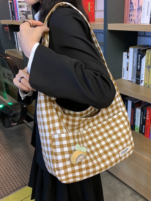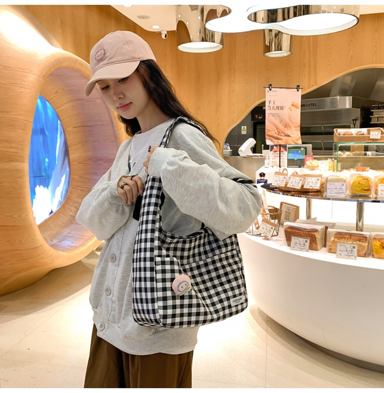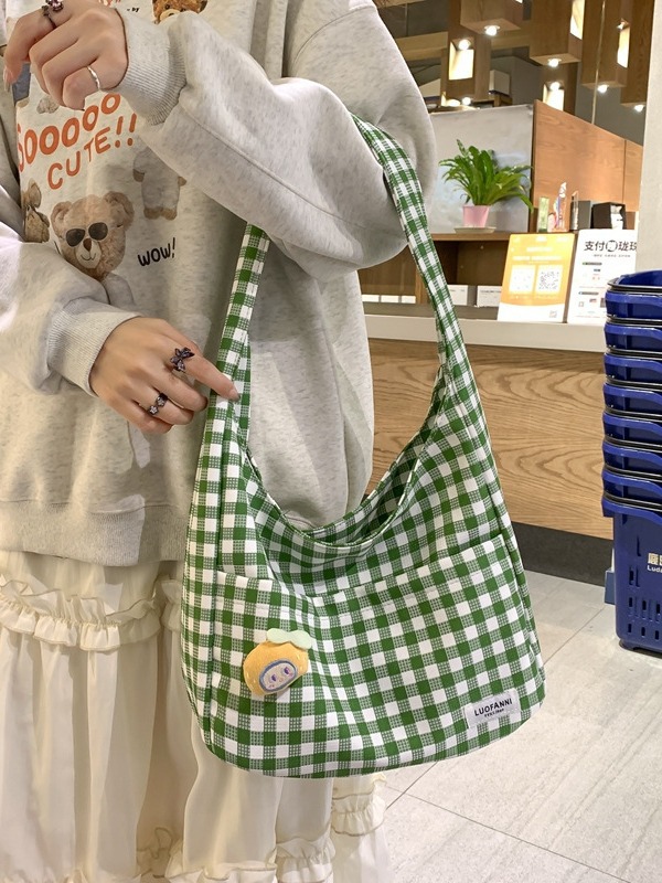 원래 디자인 대비 컬러 격자 무늬 크로스 백 달콤하고 귀여운 어깨 가방 모리 스타일 예술적 작은 신선한 학생 토트 백스토어 가기