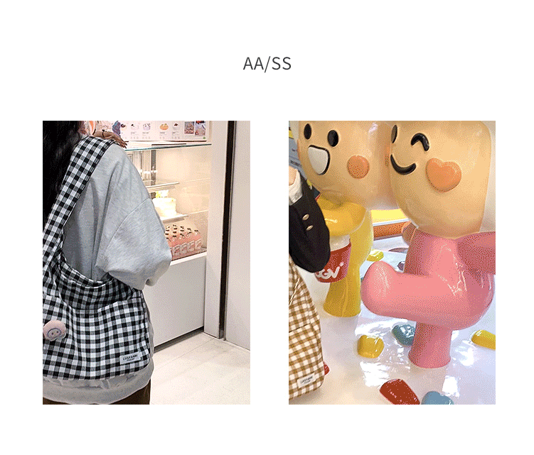 원래 디자인 대비 컬러 격자 무늬 크로스 백 달콤하고 귀여운 어깨 가방 모리 스타일 예술적 작은 신선한 학생 토트 백