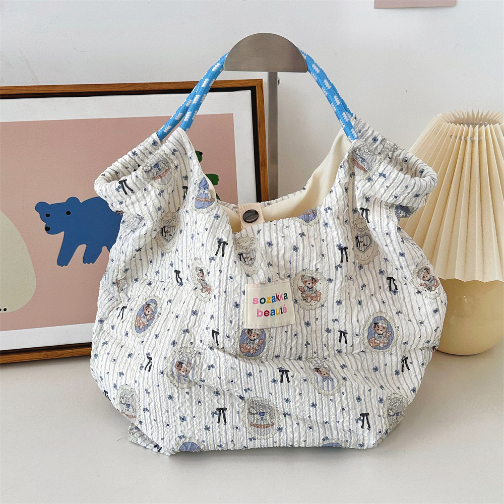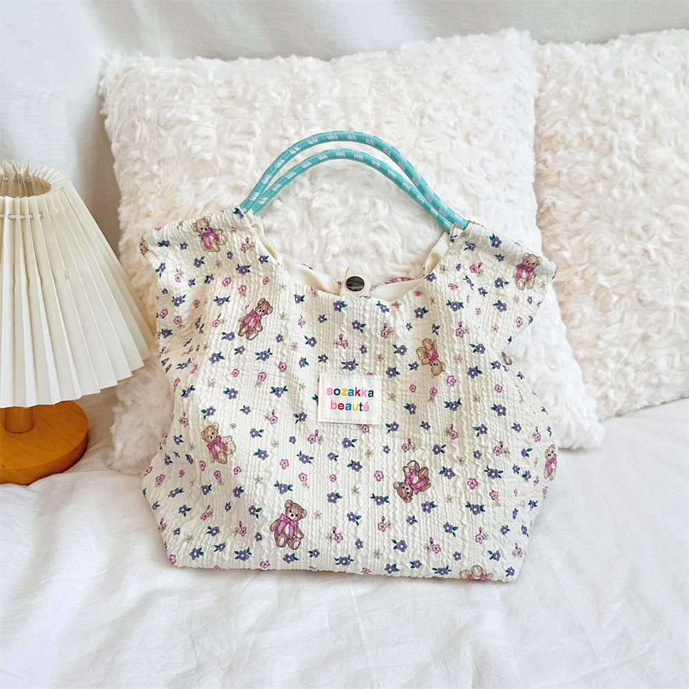 44181 한국 인 만화 양각 캔버스 가방 여성 대용량 캔버스 가방 휴대용 비치 홀리데이 핸드백스토어 가기