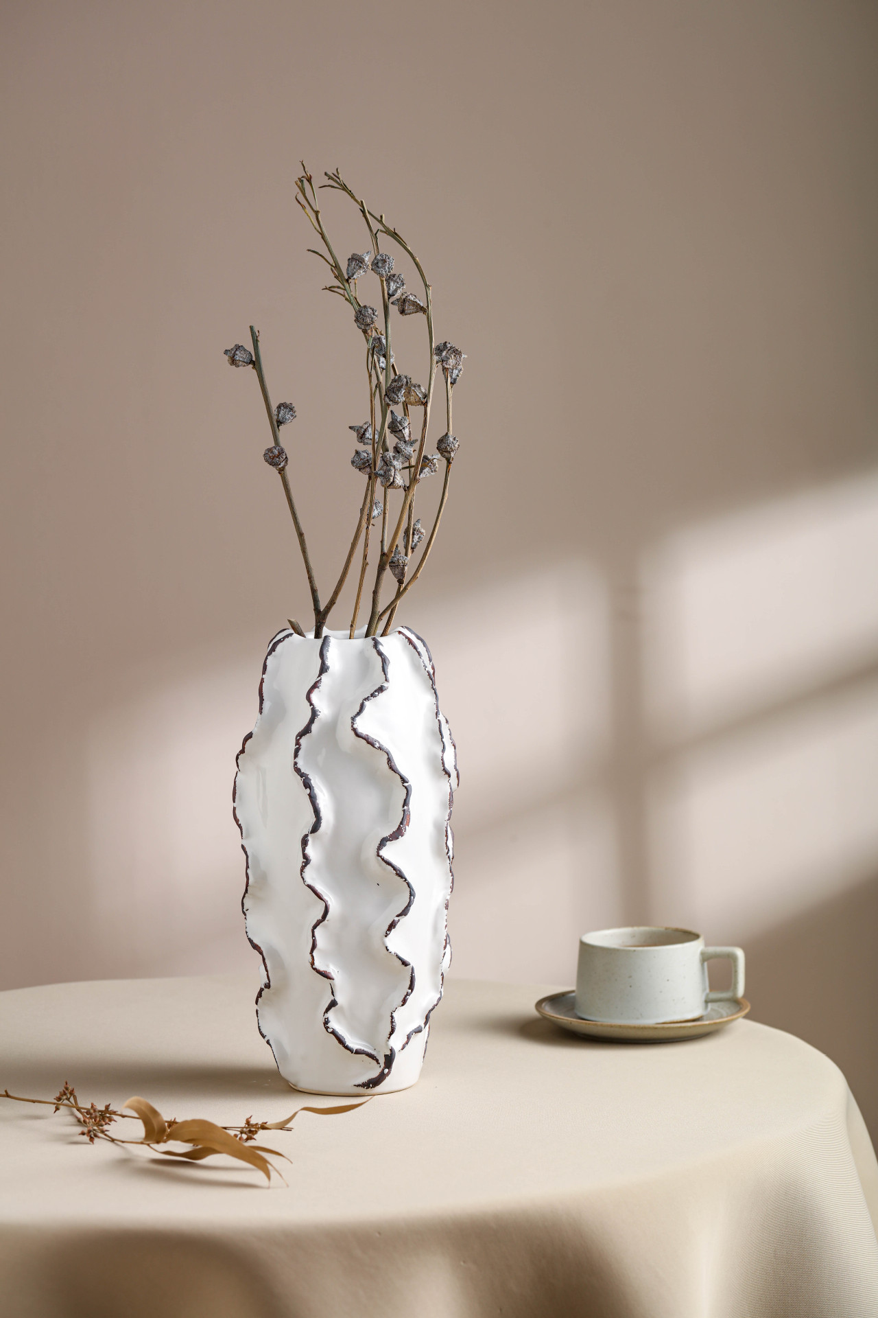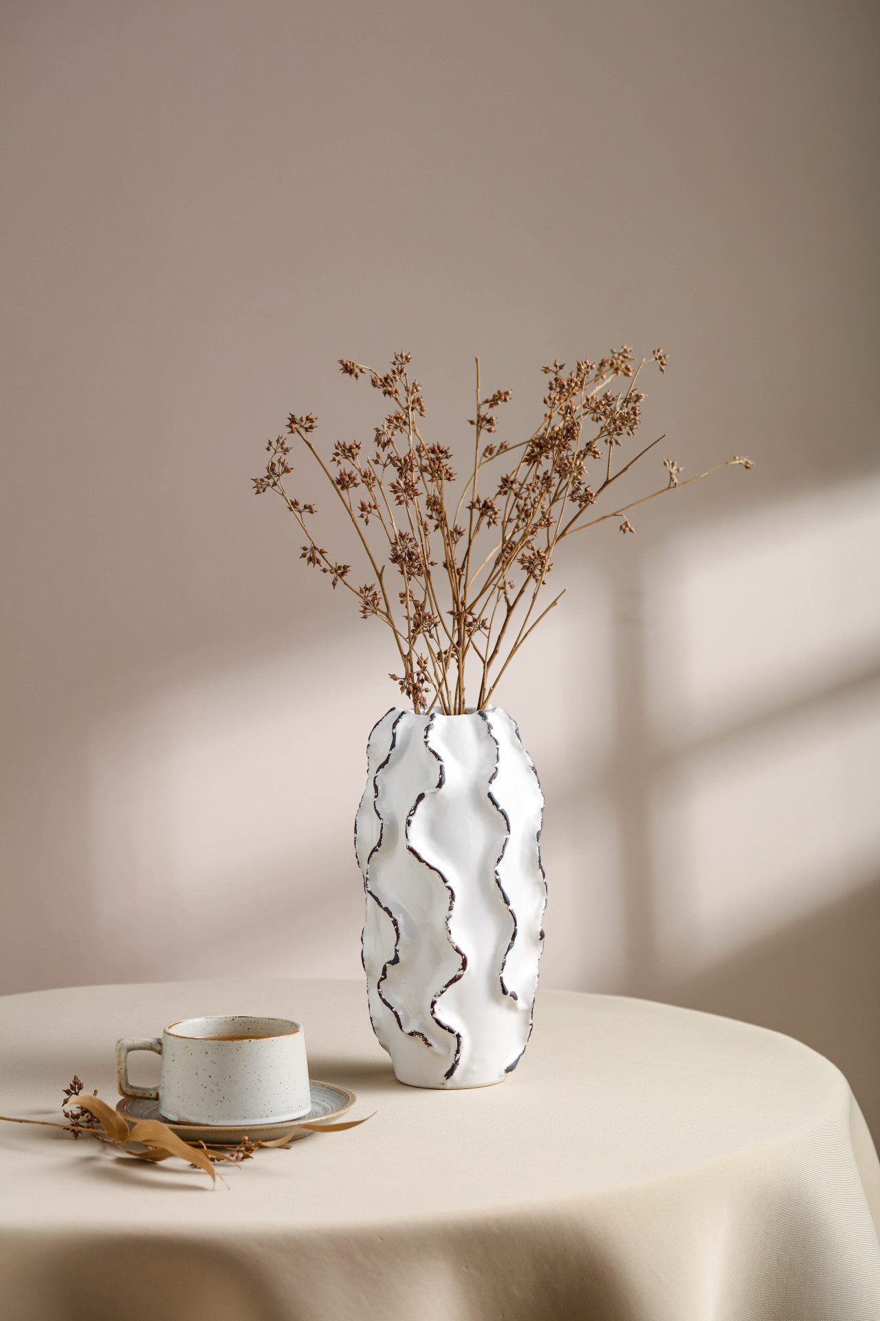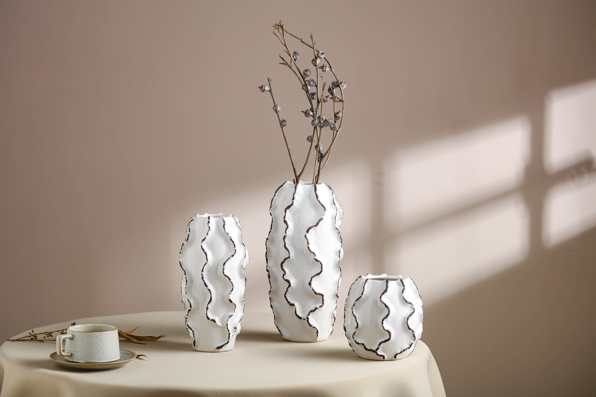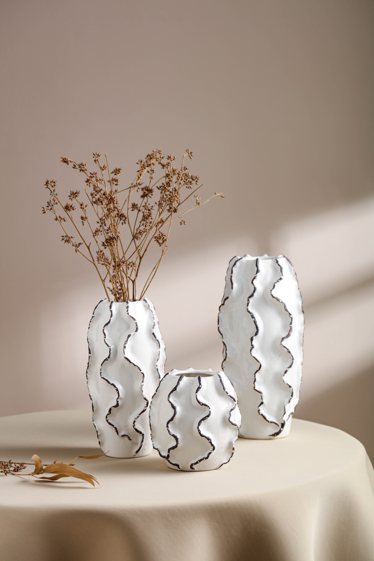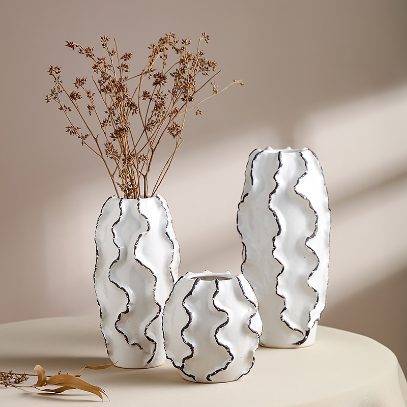 화이트 유약 블랙 웨이브 라인 세라믹 꽃병 물 저장 꽃 병 홈 장식 장식 홈스테이 장식