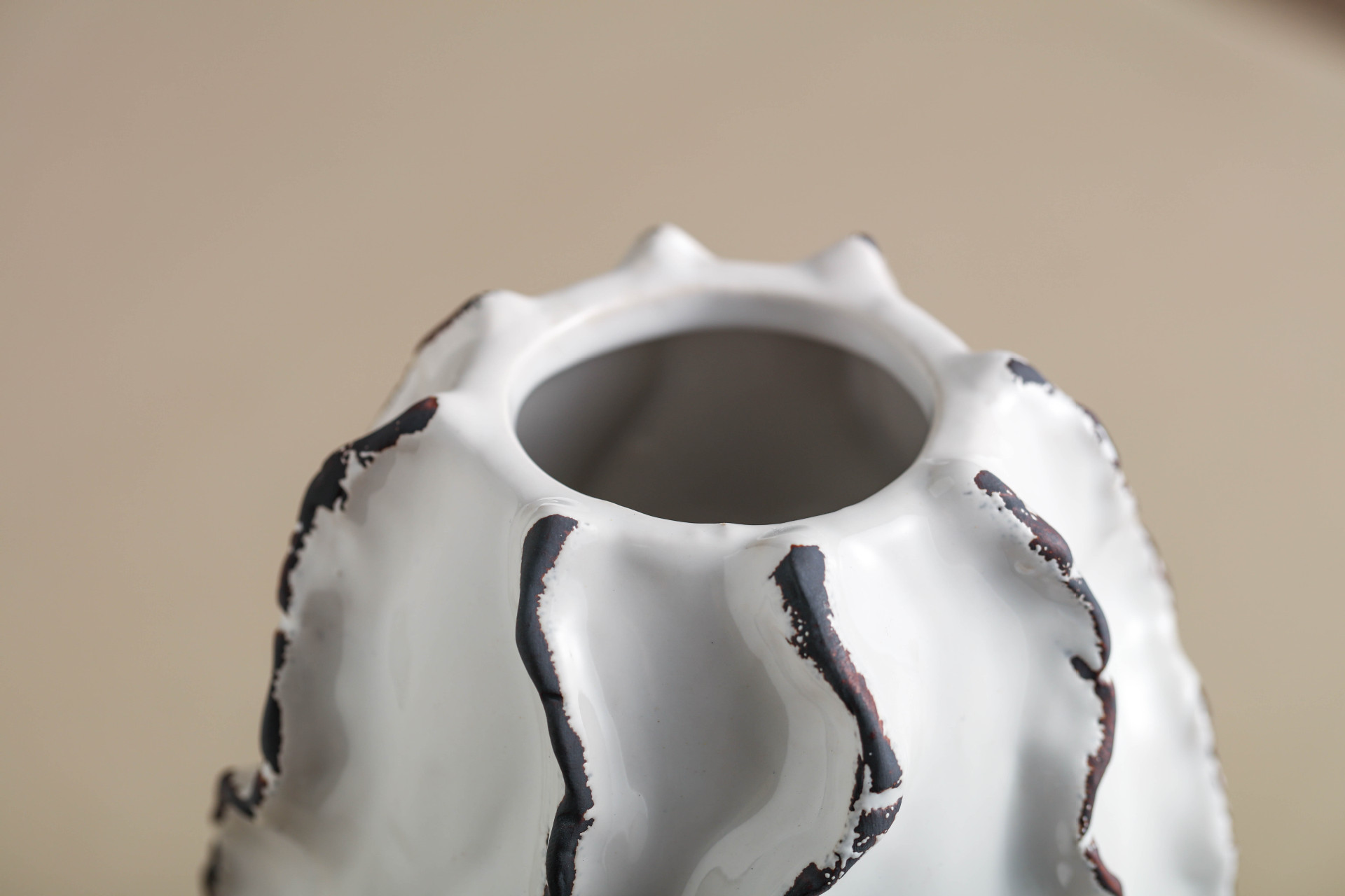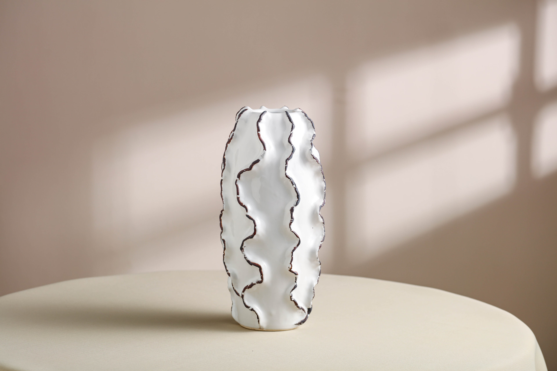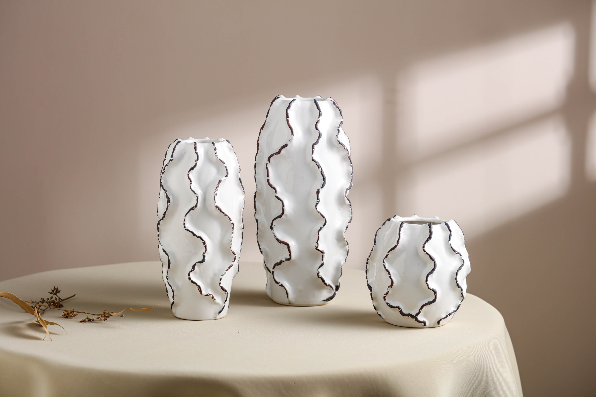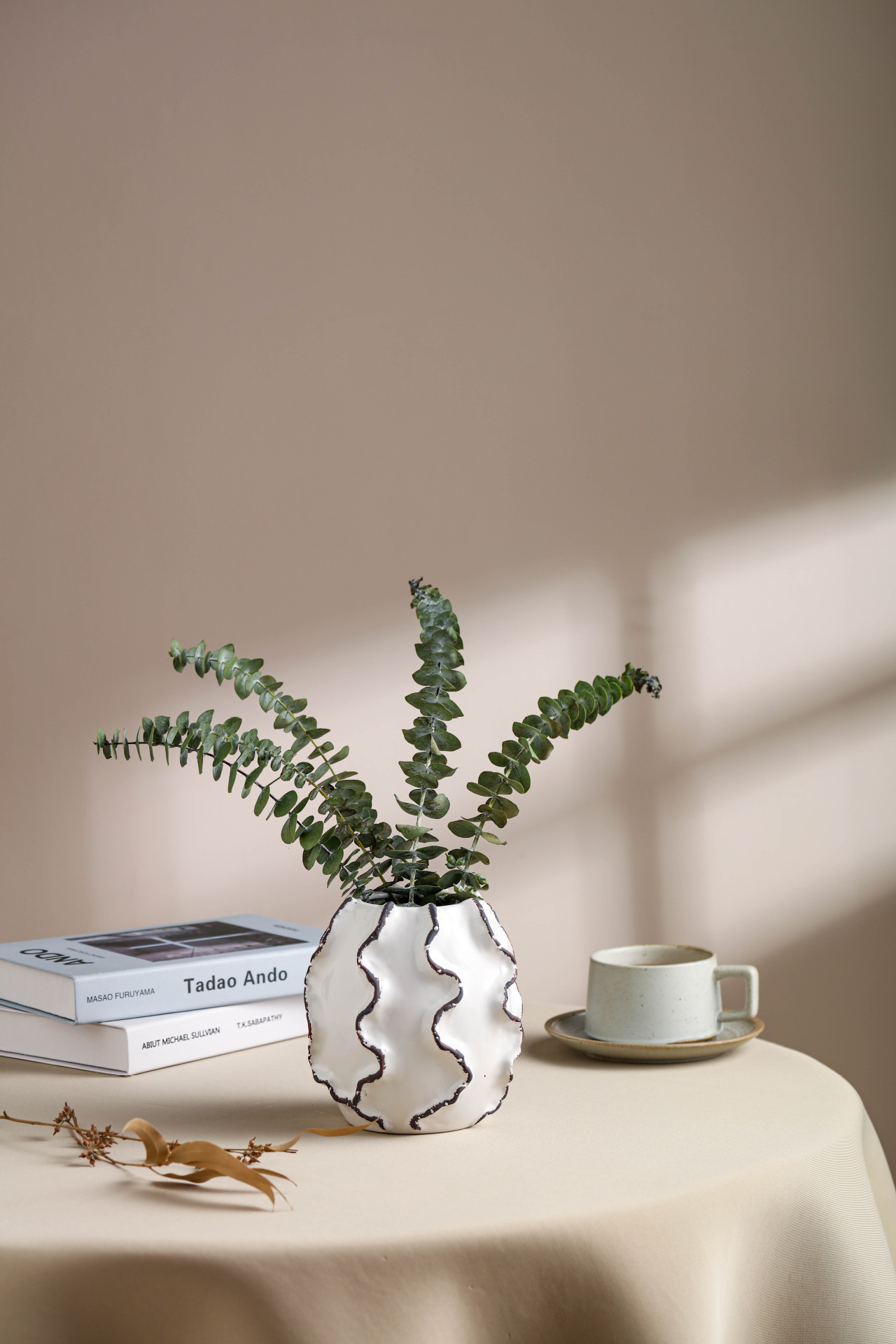 화이트 유약 블랙 웨이브 라인 세라믹 꽃병 물 저장 꽃 병 홈 장식 장식 홈스테이 장식