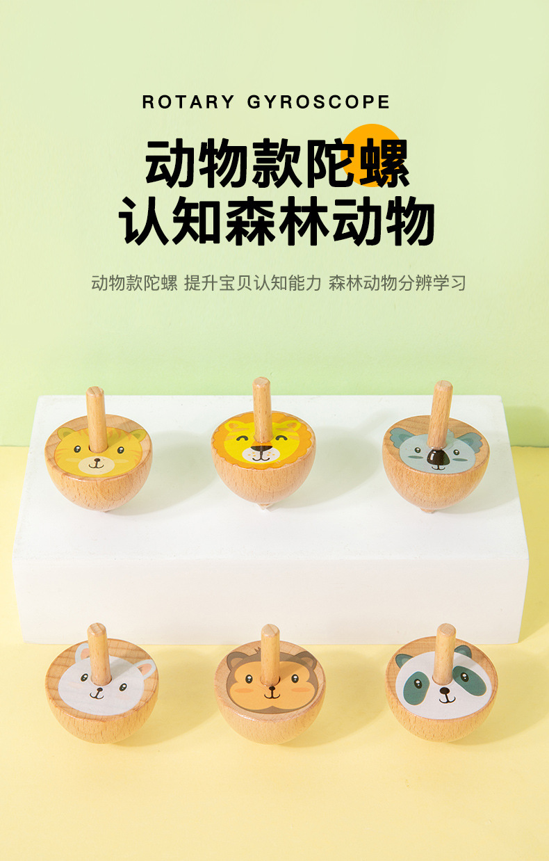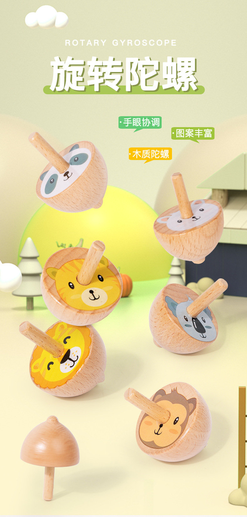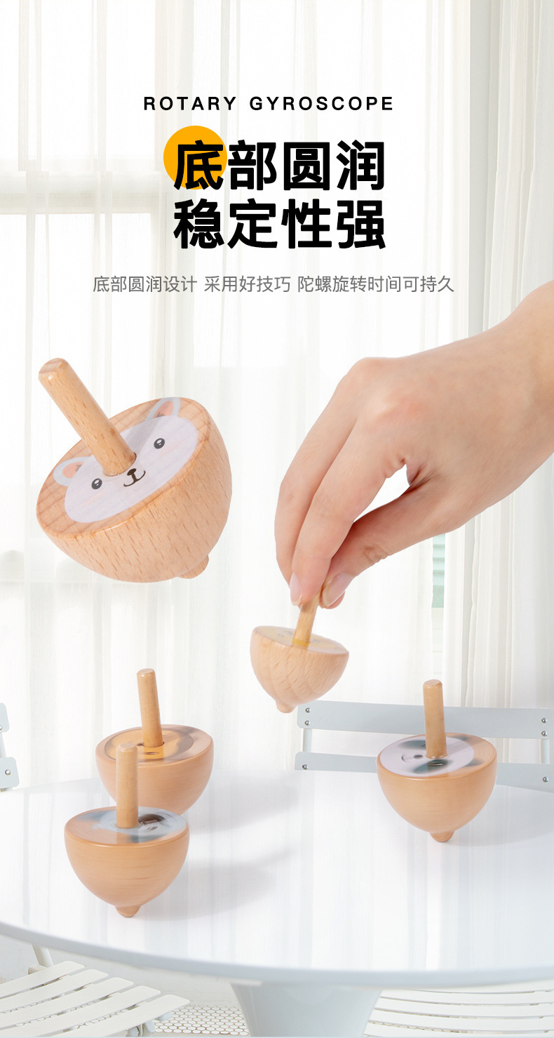 만화 어린 시절 나무 자이로 어린이 컬러 회전 자이로 수동 회전 유치원 나무 장난감 작은 자이로스토어 가기