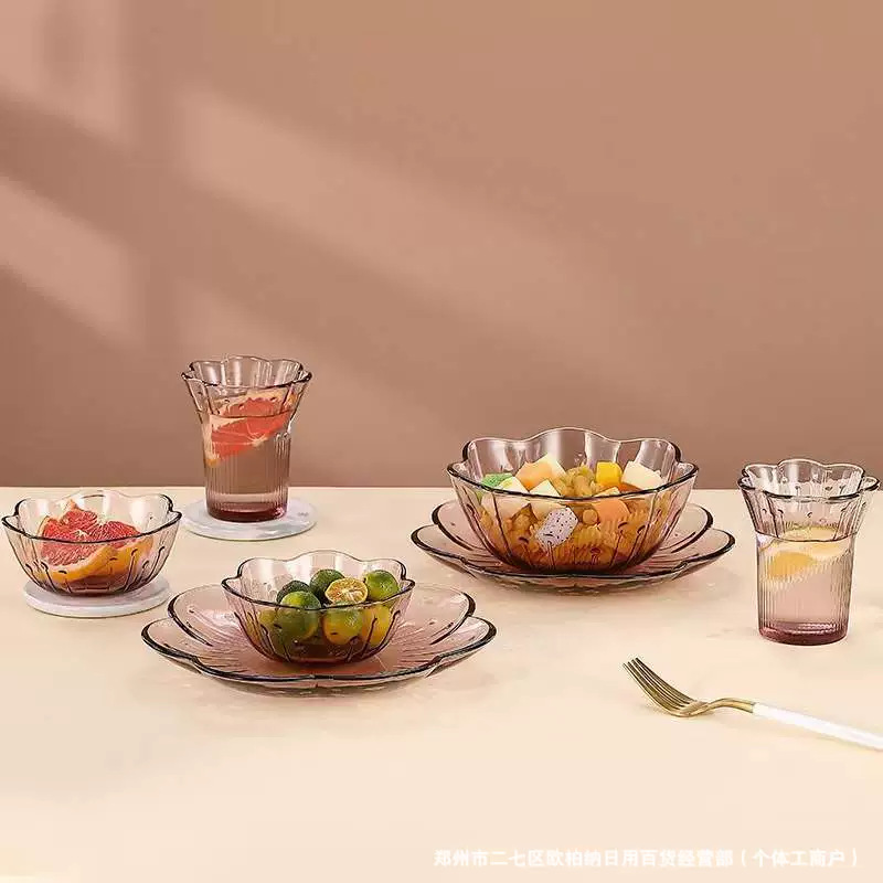 Aglaiya 시리즈 꽃 식기 7피스 세트 홈 크리에이티브 라이트 럭셔리 유리 식기 7피스 비즈니스 세트