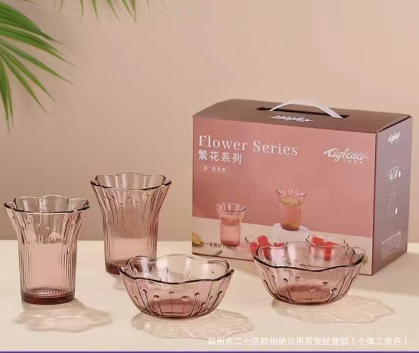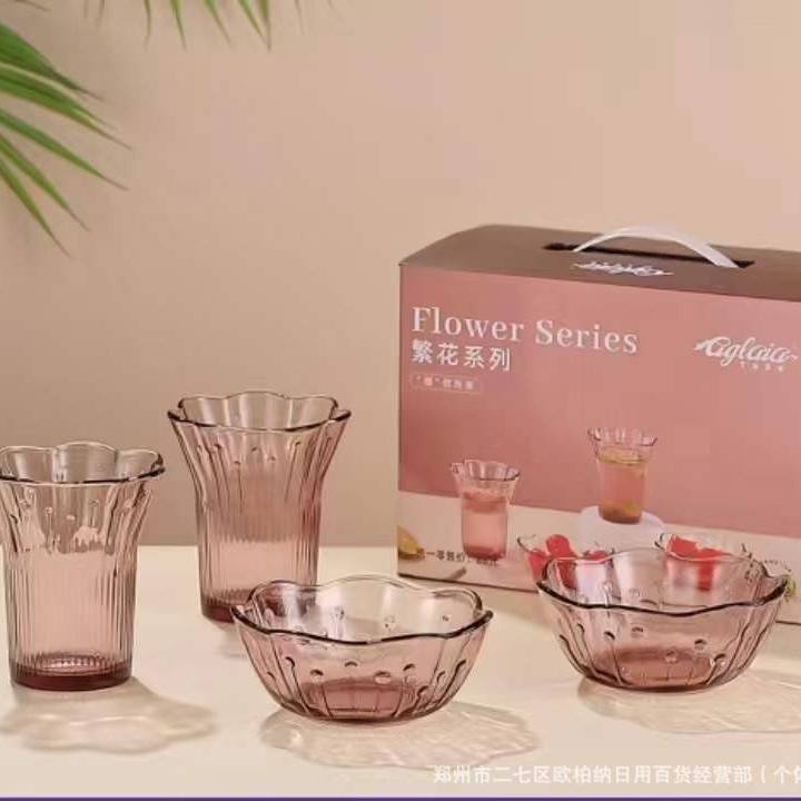 Aglaiya 시리즈 꽃 식기 7피스 세트 홈 크리에이티브 라이트 럭셔리 유리 식기 7피스 비즈니스 세트스토어 가기
