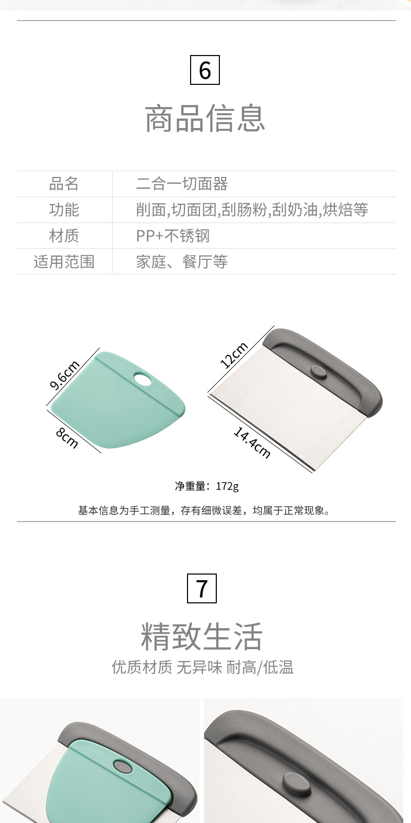 스테인레스 스틸 국수 커터 플라스틱 밀가루 컷 2 피스 세트 쌀 롤 스크레이퍼 반죽 컷 베이킹 가제트