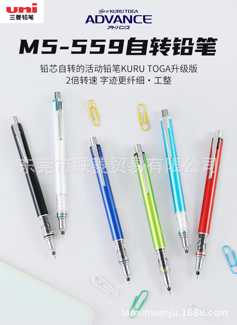 일본 유니미쓰비시 M5-559 자동 연필 리드 코어 자동 회전 이동식 연필 코어 2 배 속도스토어 가기