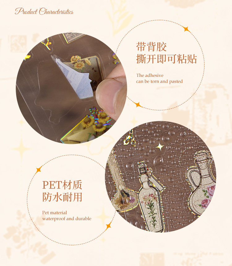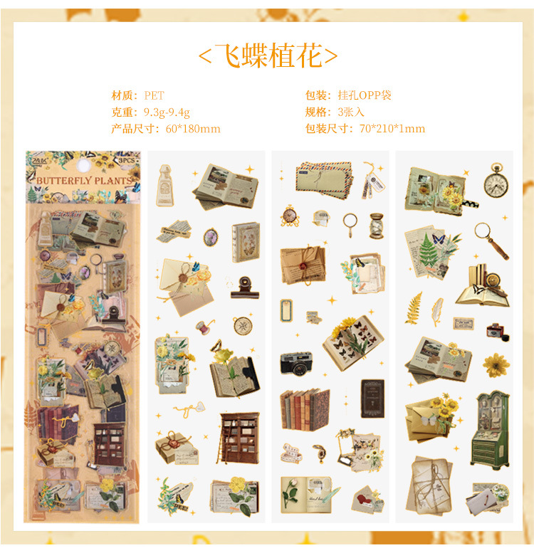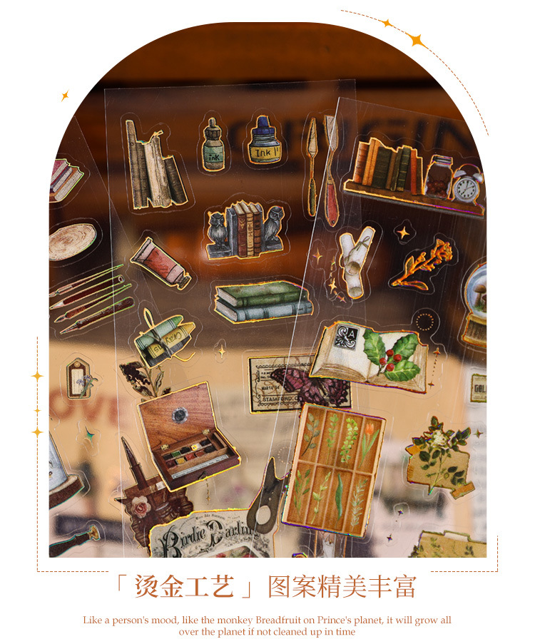 Yueshi 국경 새 제품 중세 이야기 복고풍 방수 손 계정 스티커 다이 컷 DIY 손 계정 소재 크리에이티브 스티커스토어 가기