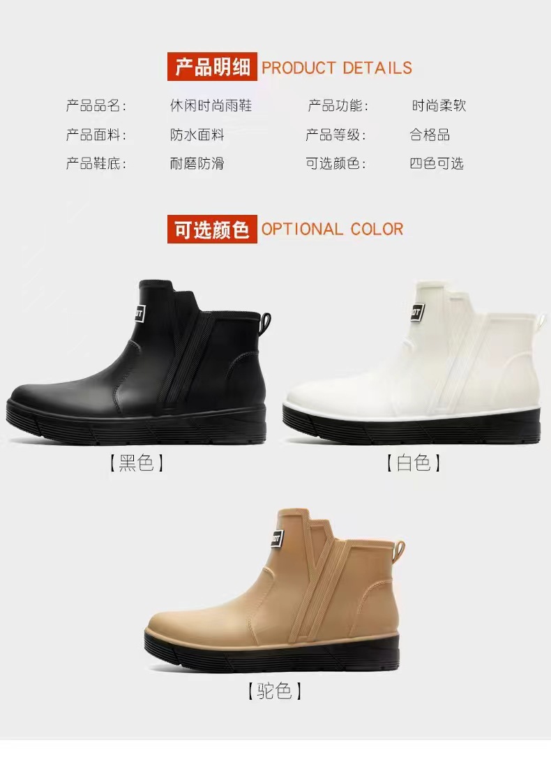 주방 건설 현장을위한 남성과 여성을위한 장화 패션 장화 고무 신발 짧은 튜브 뜨거운 판매 의상 낚시 방수 미끄럼 방지 워터 부츠
