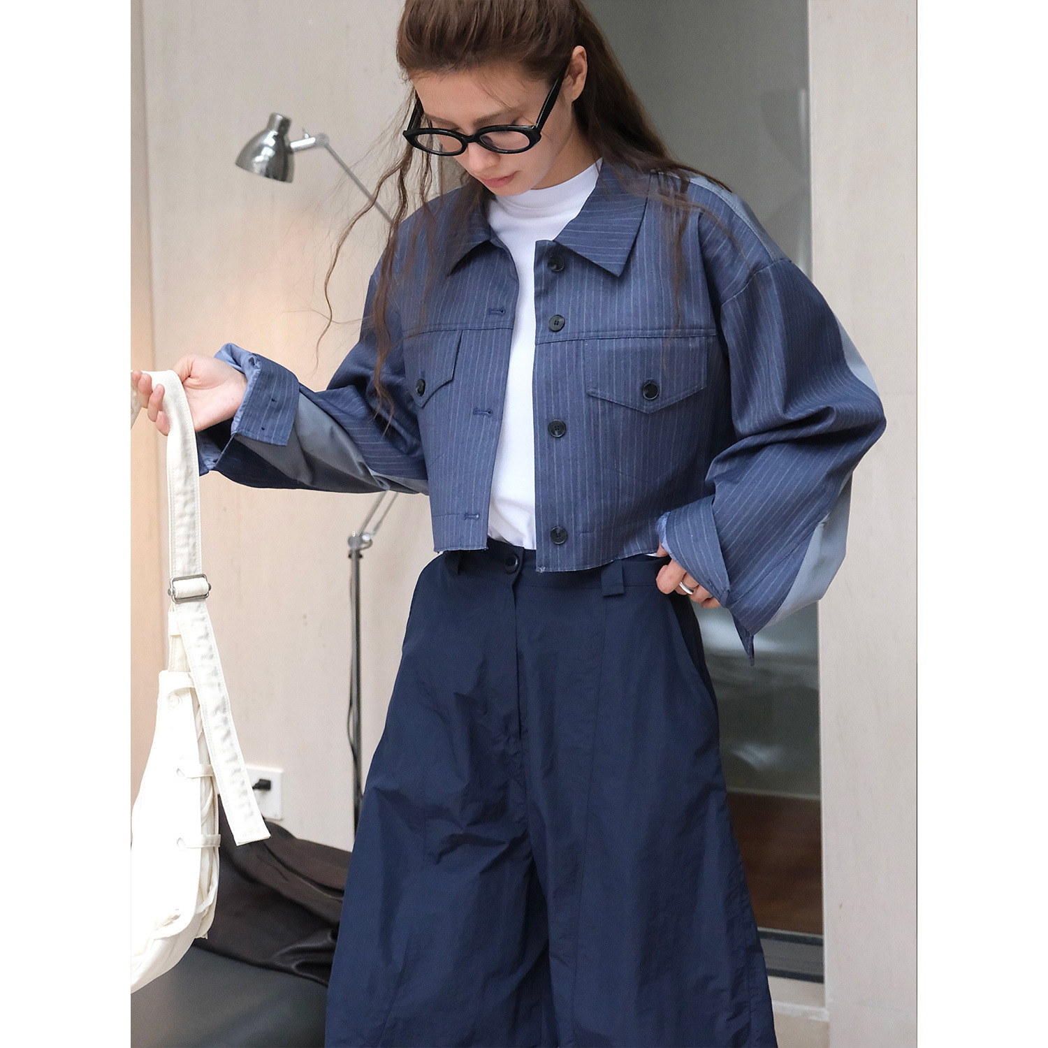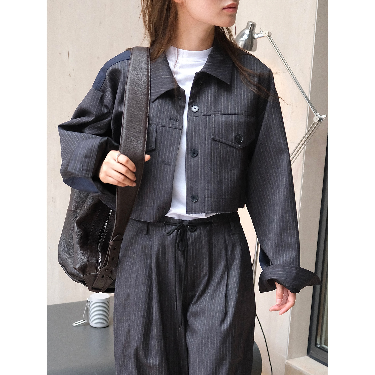 루푸 가을 새로운 일본 스타일 세련된 스티칭 줄무늬 프로필 재킷 편안한 캐주얼 슬리밍 짧은 재킷