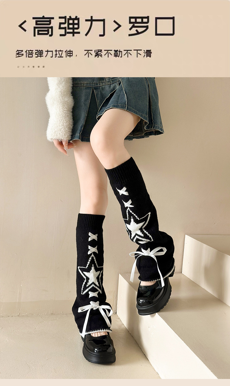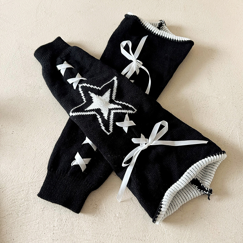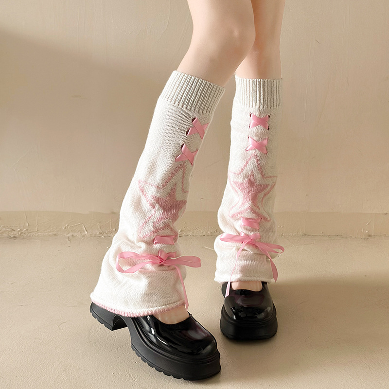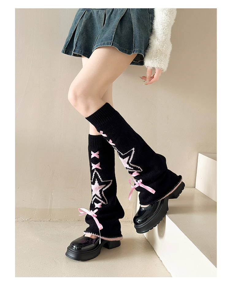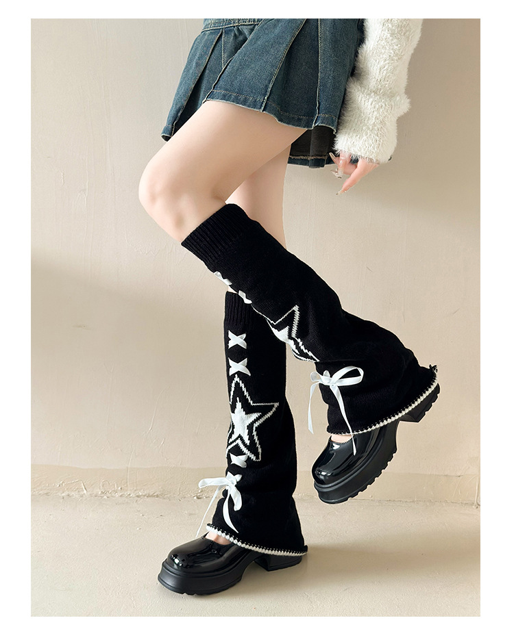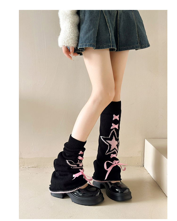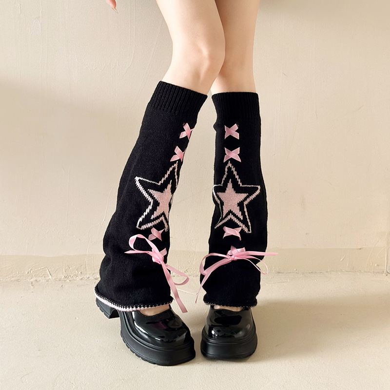 니트 플라 양말 여성 리본 스타 송아지 양말 스파이스 걸스 송아지 양말 하위 문화 Y2K 맞춤형 스택 양말