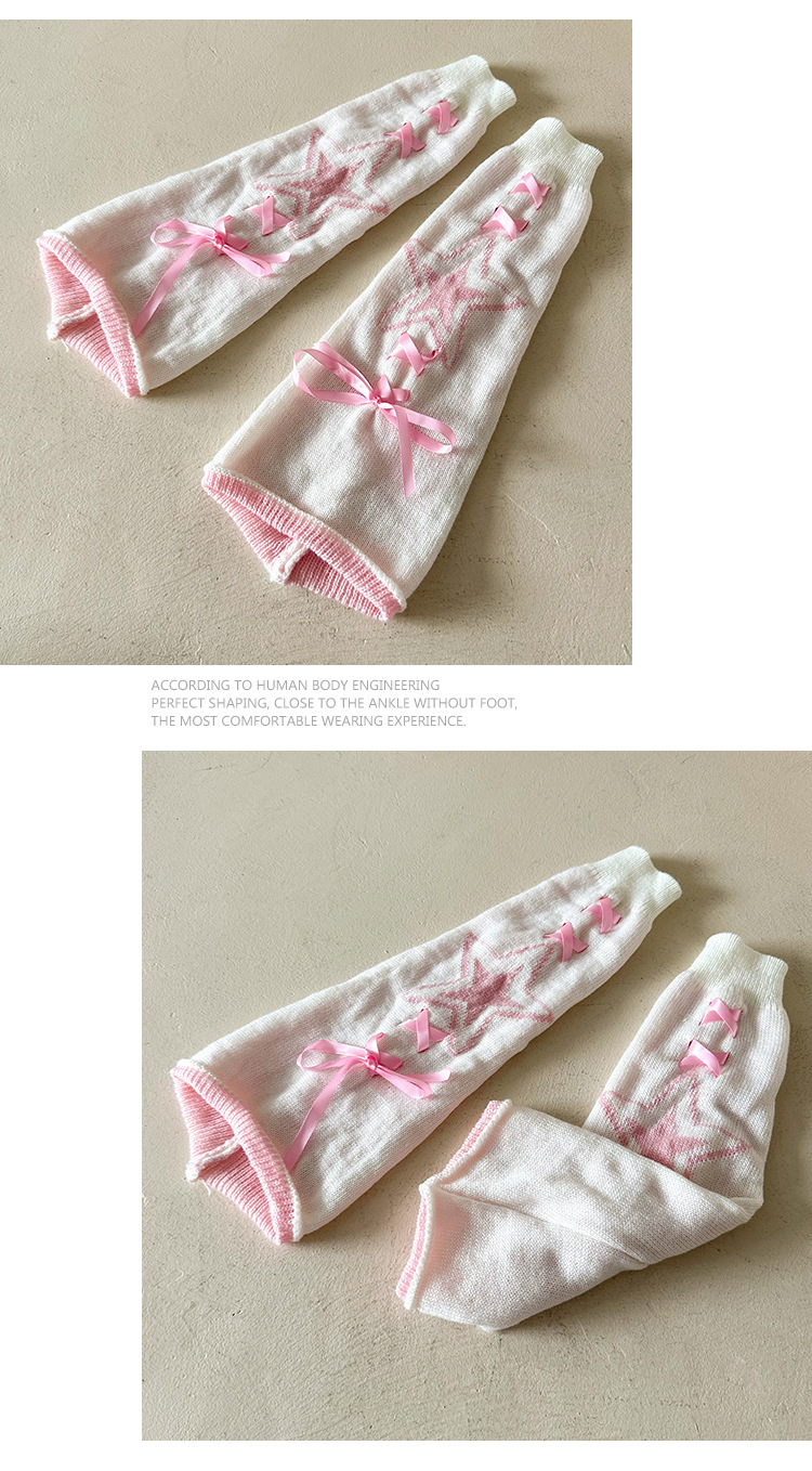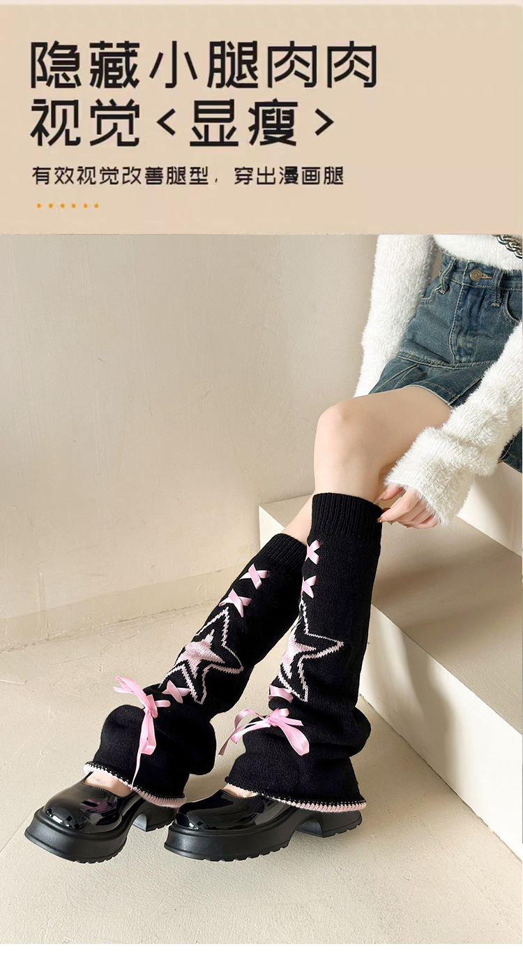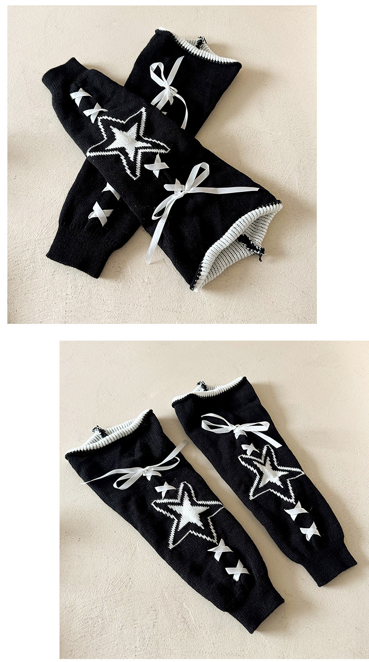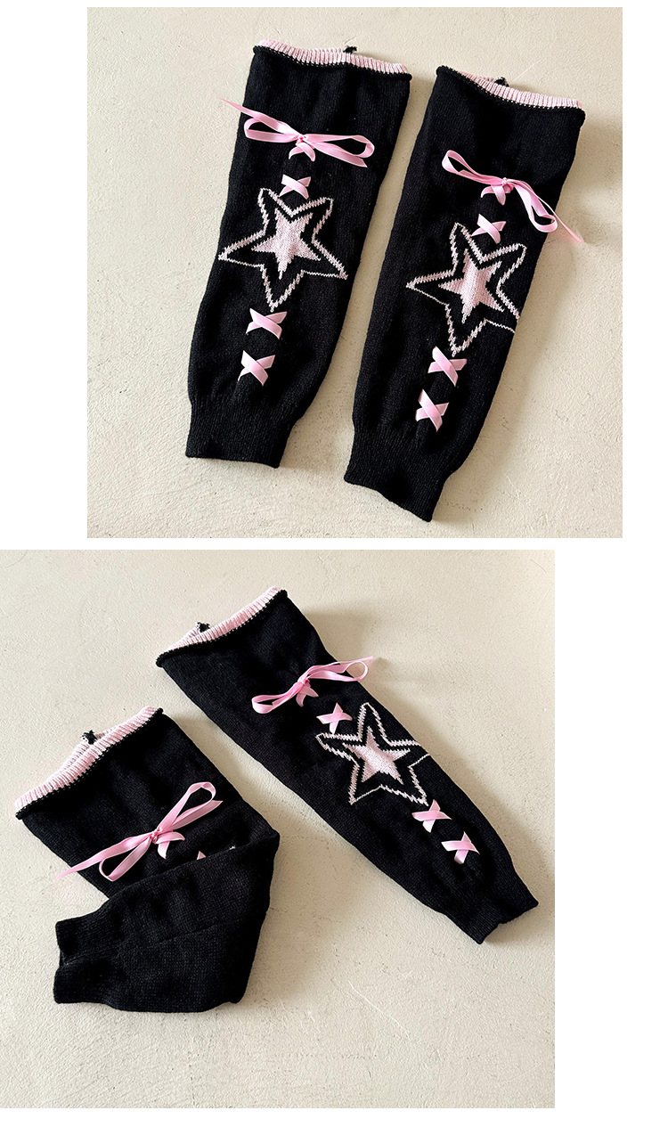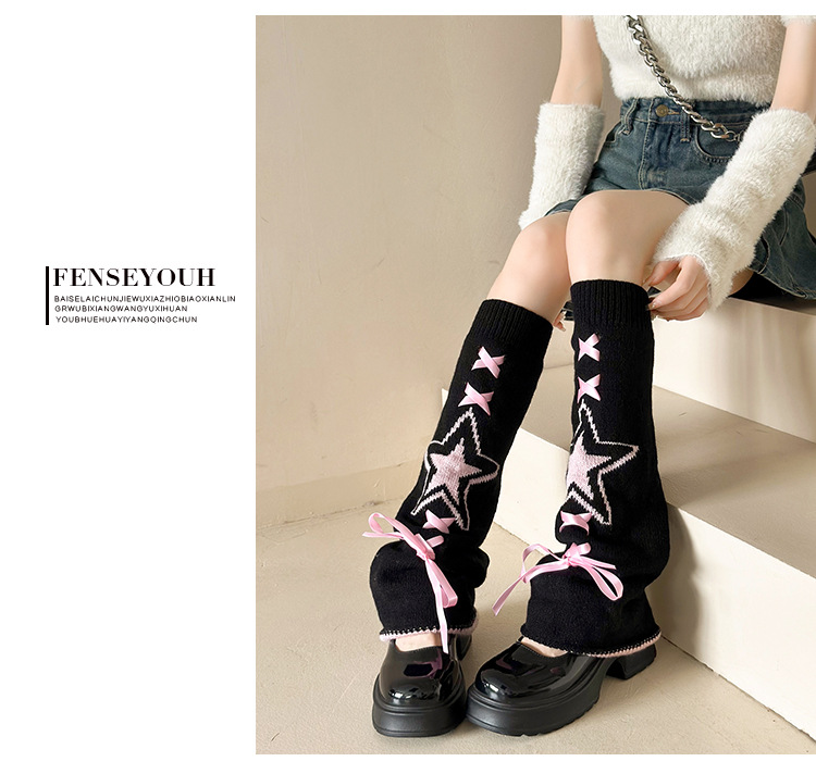 니트 플라 양말 여성 리본 스타 송아지 양말 스파이스 걸스 송아지 양말 하위 문화 Y2K 맞춤형 스택 양말