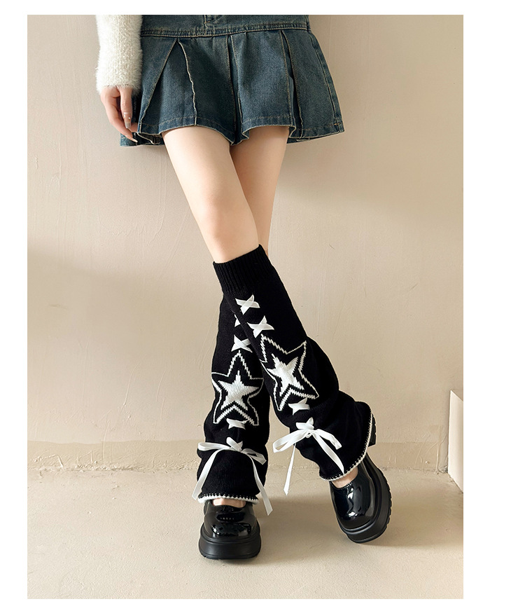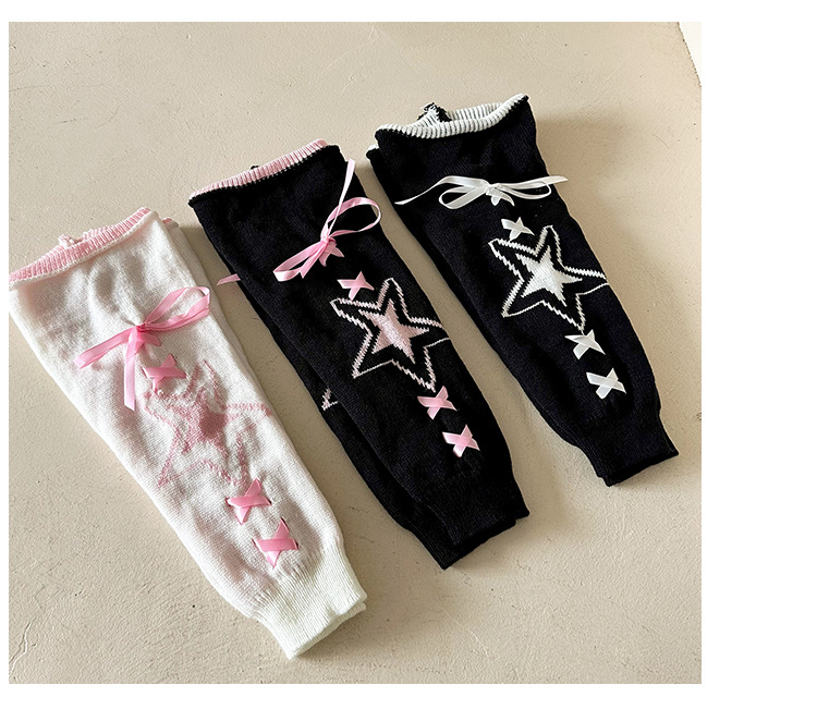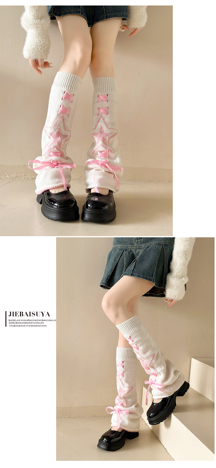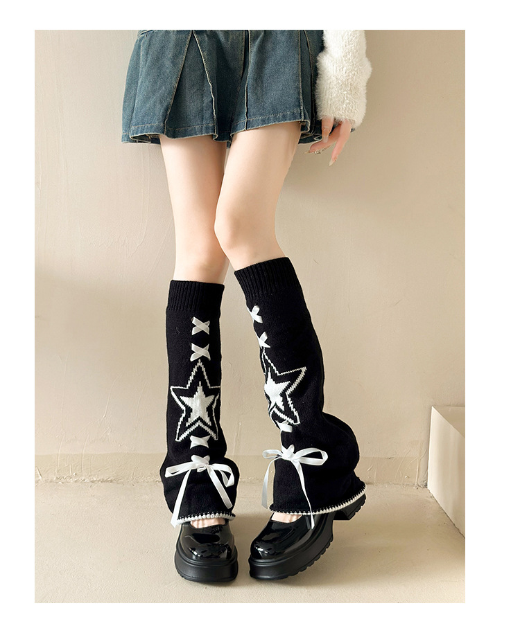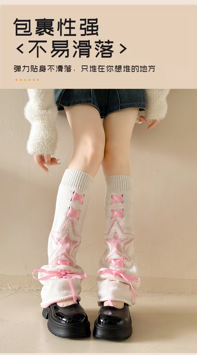 니트 플라 양말 여성 리본 스타 송아지 양말 스파이스 걸스 송아지 양말 하위 문화 Y2K 맞춤형 스택 양말