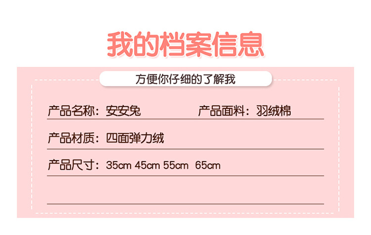 새로운 토끼 플러시 장난감 An'an 토끼 긴 귀 토끼 인형 컴포트 헝겊 인형 어린이 크리 에이 티브 선물 크로스 보더