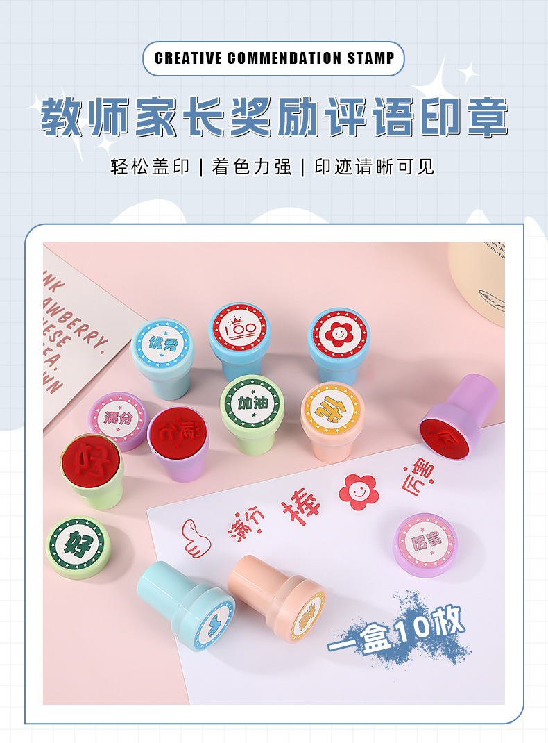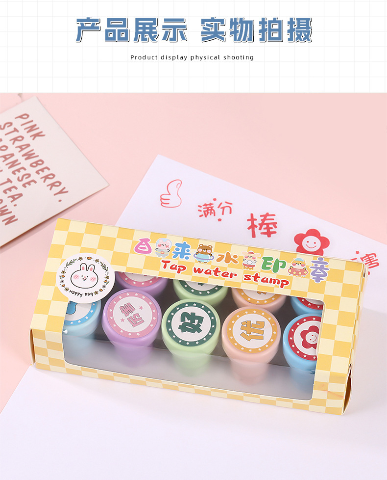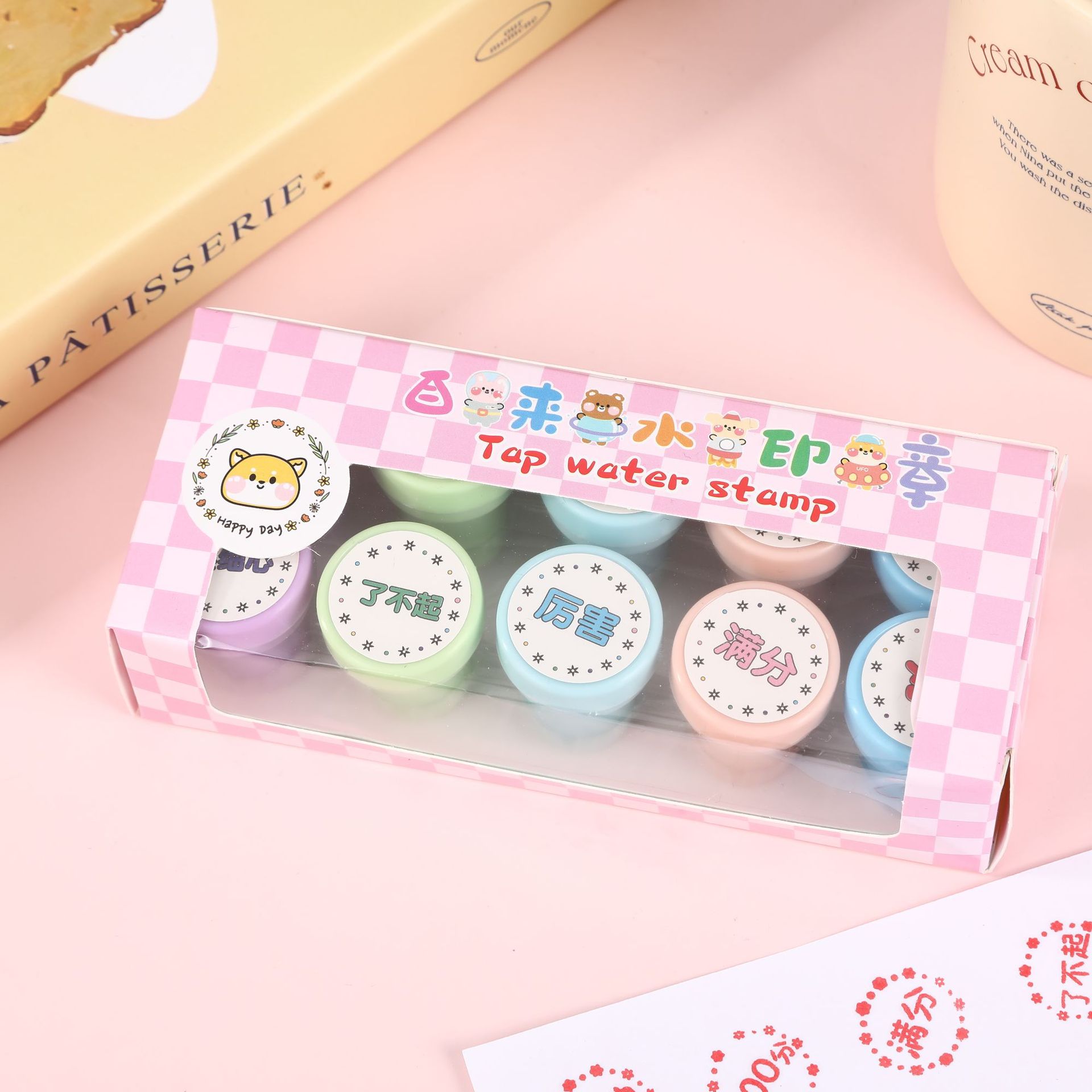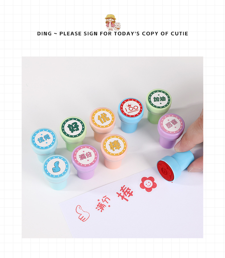 어린이 만화 격려 댓글 인감 유치원 교사의 숙제 교정 씰 컬러 수돗물 물감 장난감