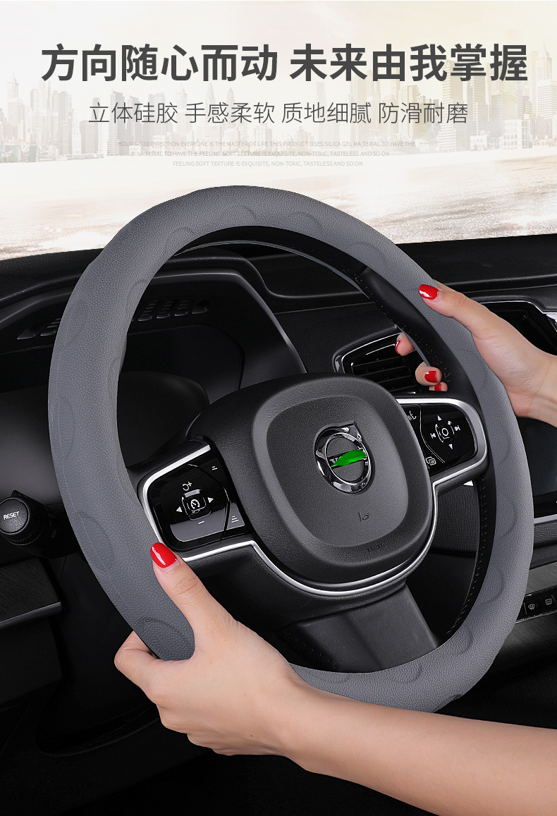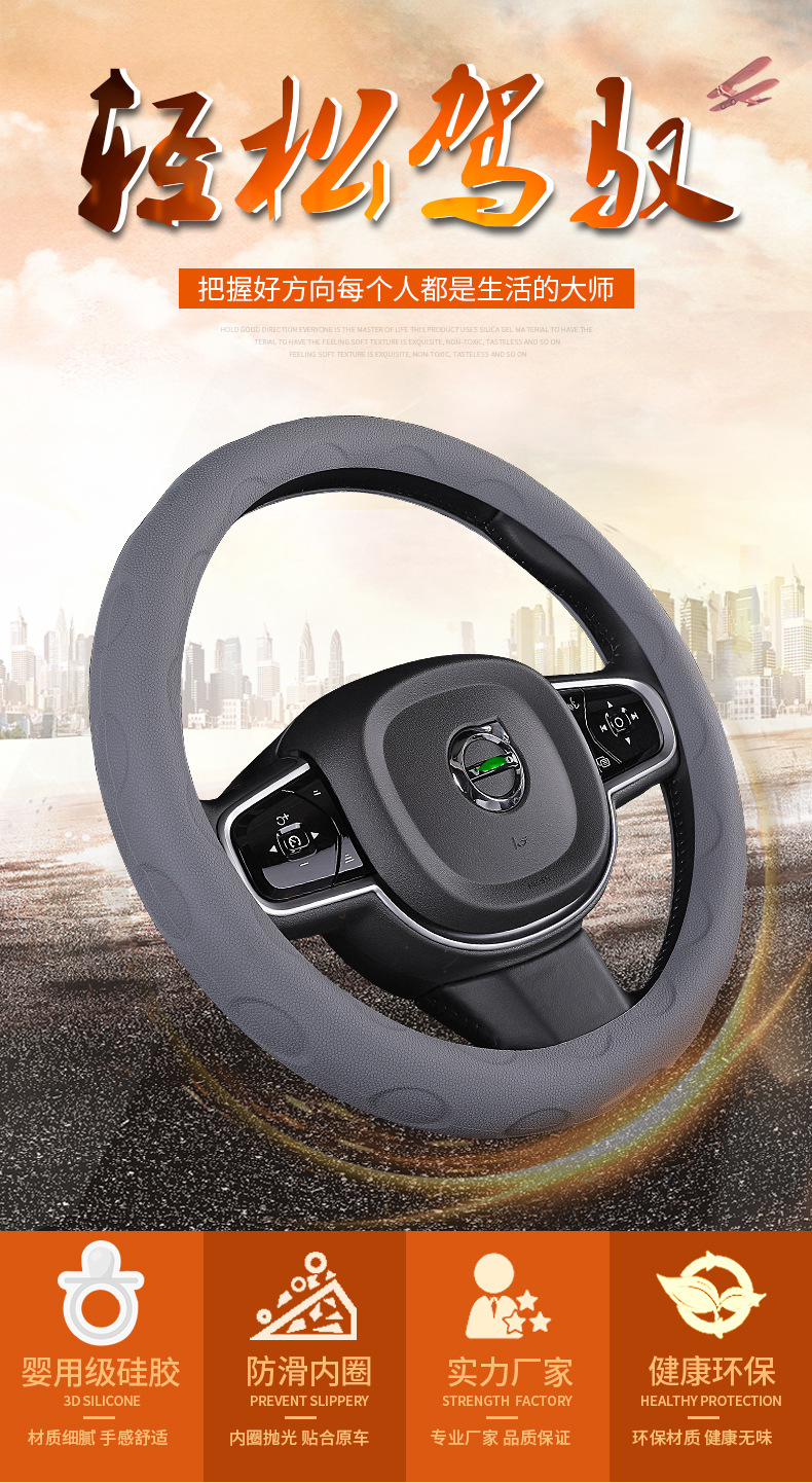 자동차 실리콘 스티어링 휠 커버 사계절 보편적 인 남성과 여성의 자동차 미끄럼 방지 스티어링 휠 커버 국경 직접 공급스토어 가기