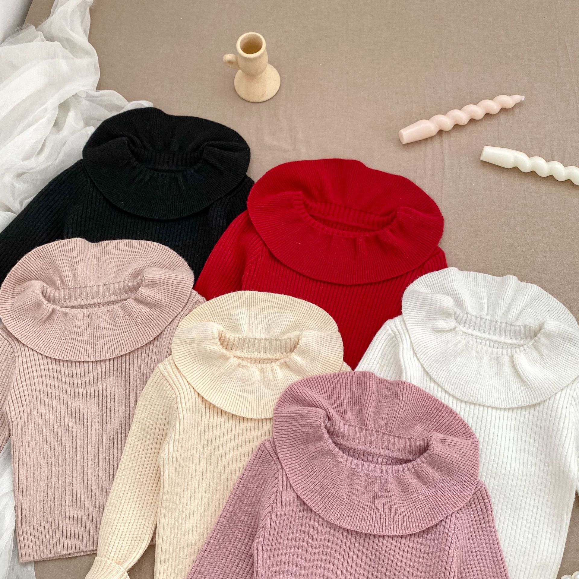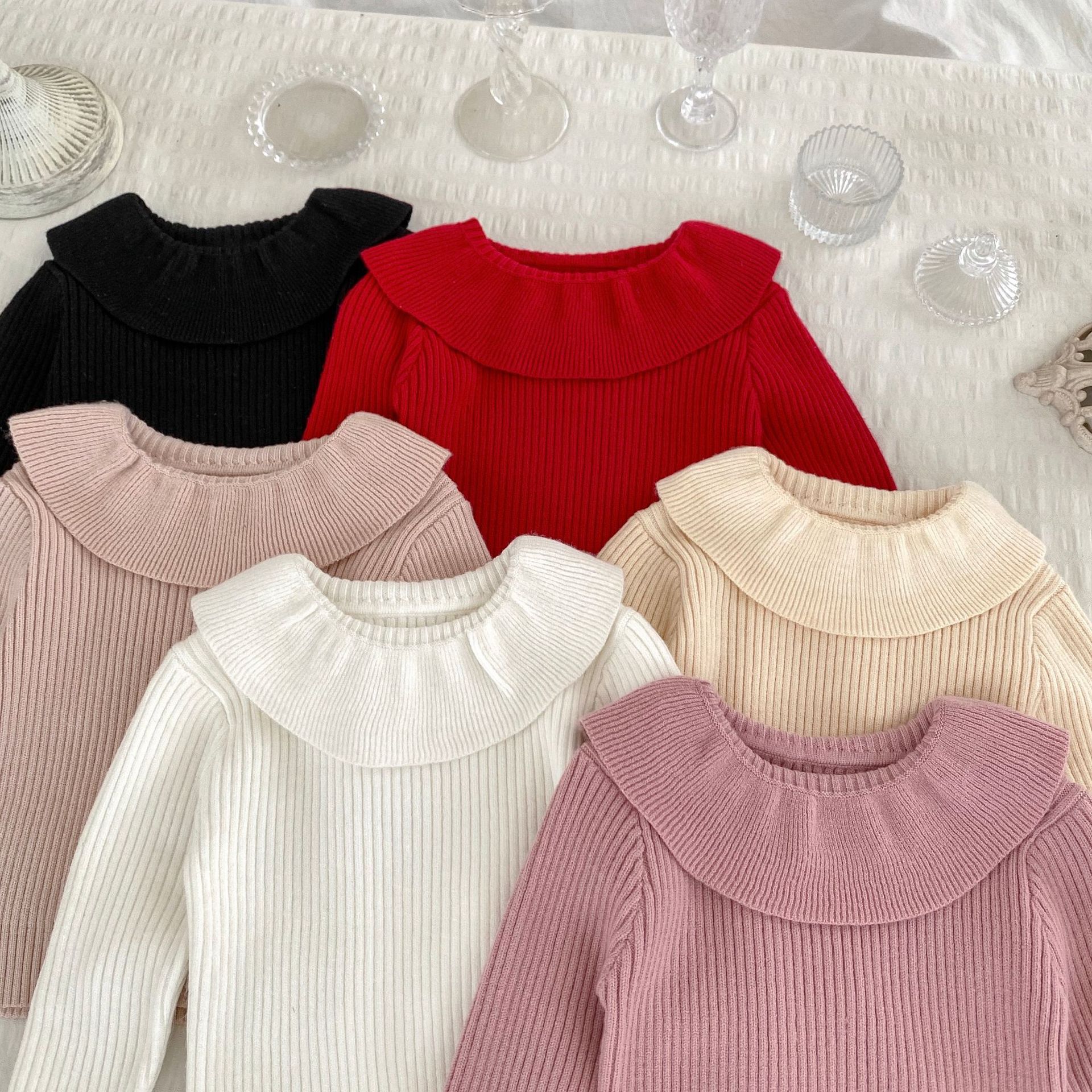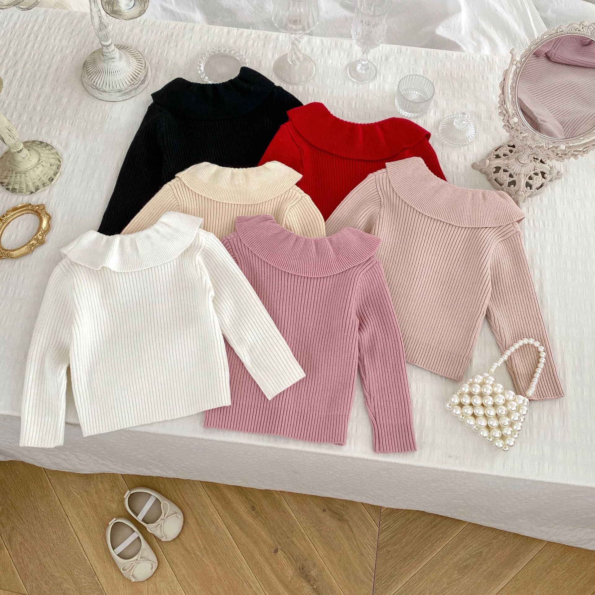 2025년 신상 여아 스웨터, 세련된 라펠 니트 상의, 여아용 단색 만능 긴팔 풀오버스토어 가기
