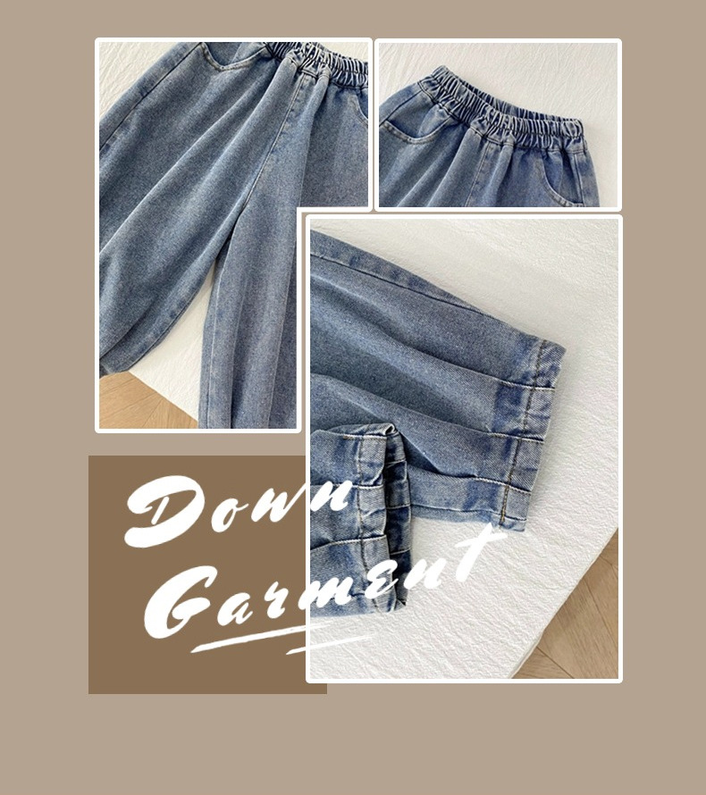 아동용 한국 청바지 가을 단색 하렘 바지 2025 봄, 가을 새로운 스타일의 다용도 바지 어린이와 중년 어린이를위한 유행스토어 가기