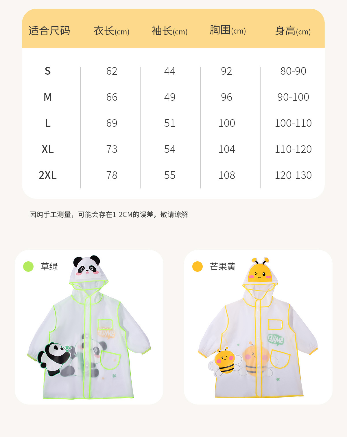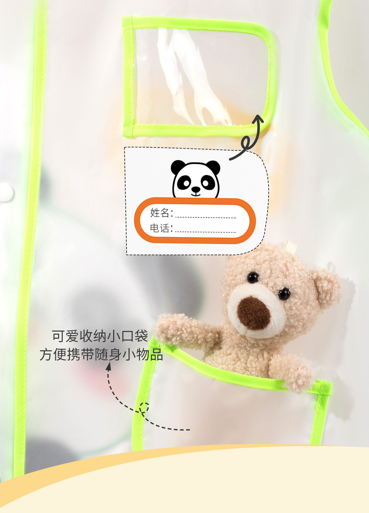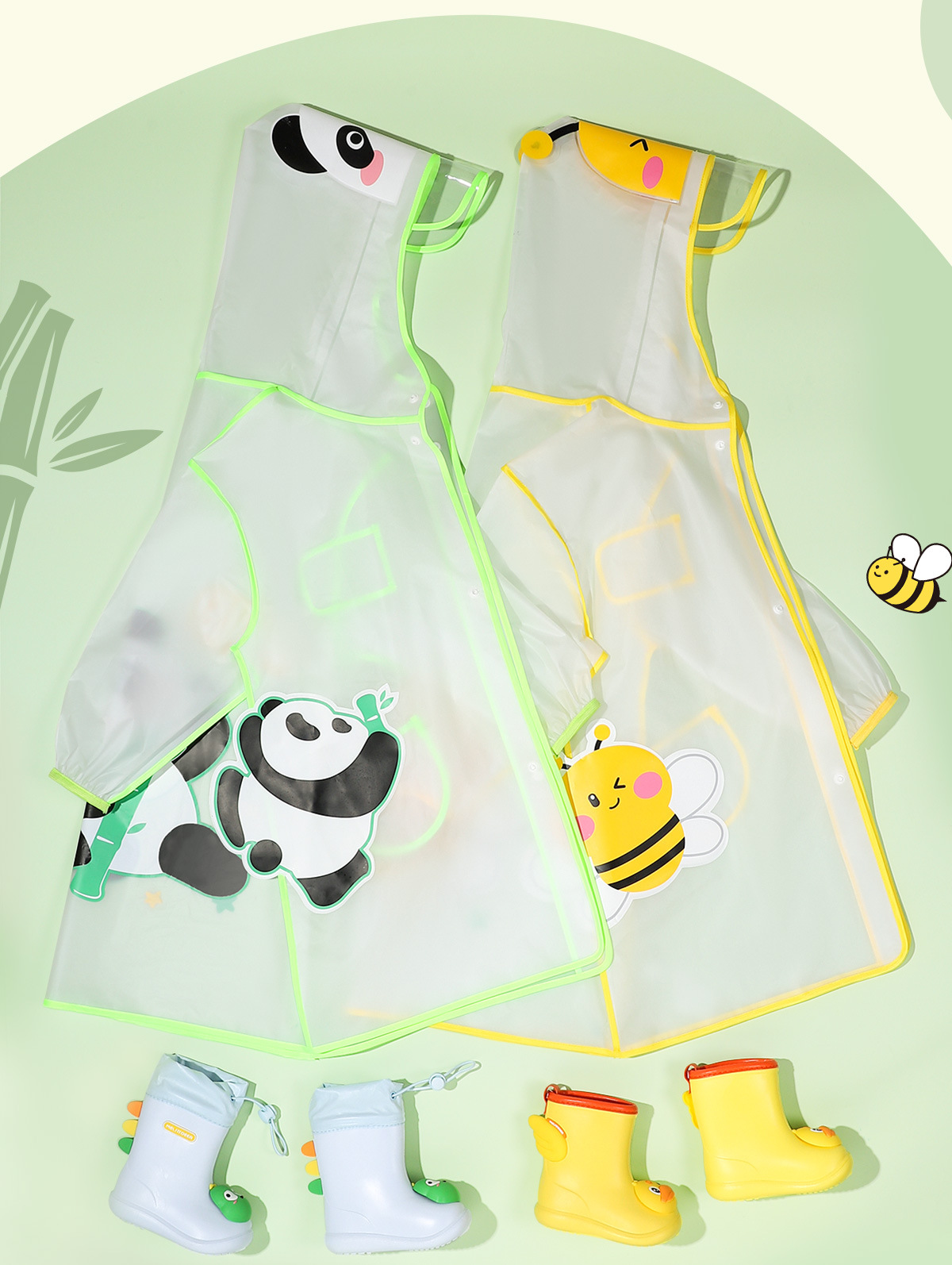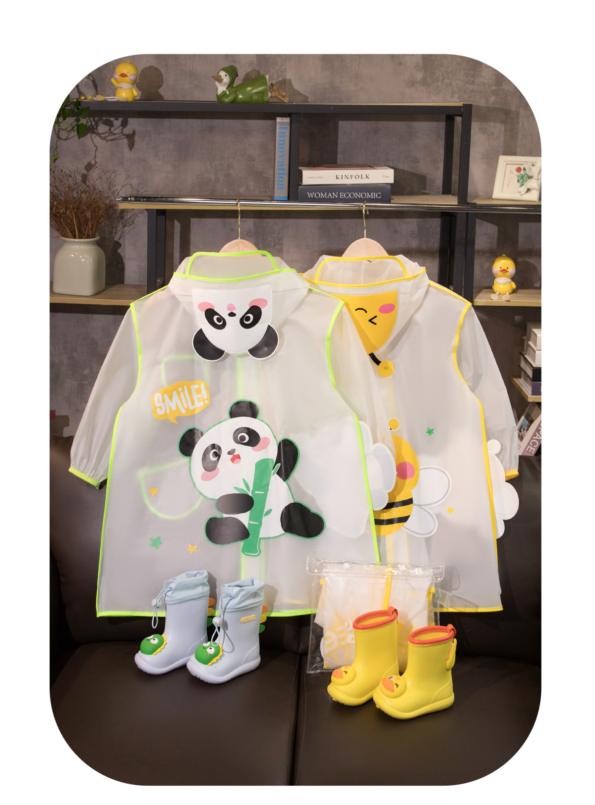 귀여운 만화 어린이 투명 팬더 판초 아기 어린이 EVA 레인 기어 유치원 어린이 비옷 도매 여름