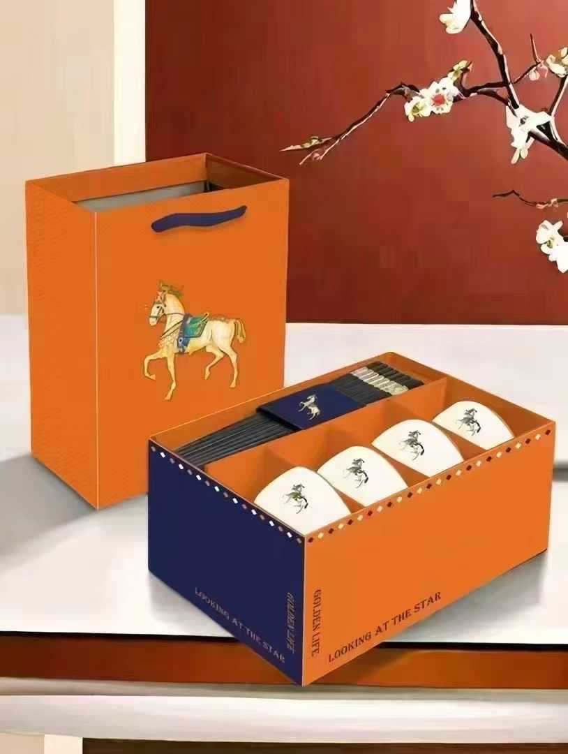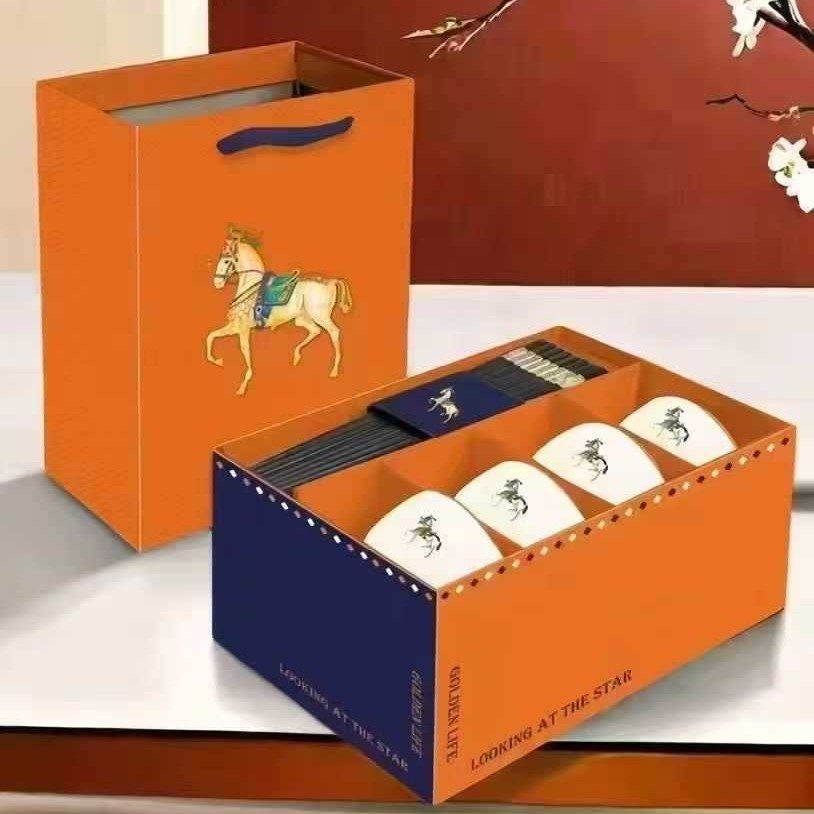 도매 세라믹 식기 그릇과 젓가락 세트 선물 상자 배치 회사 개업 이벤트 비즈니스 선물 그릇 기념품
