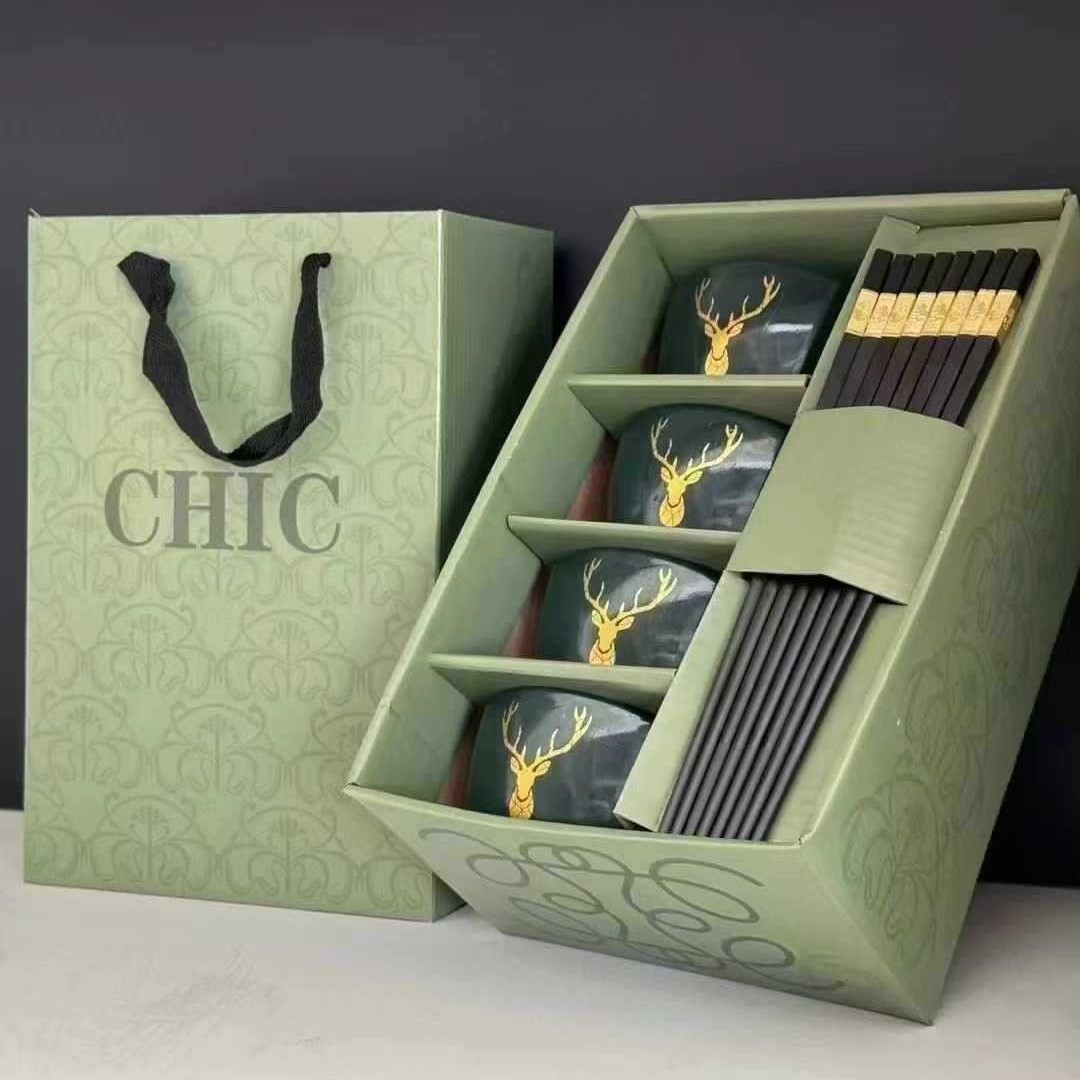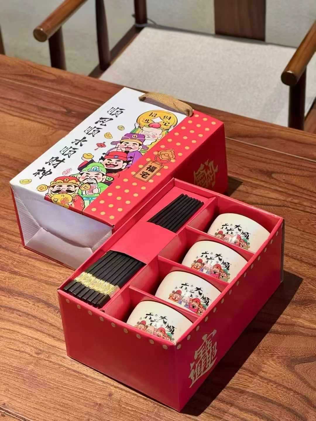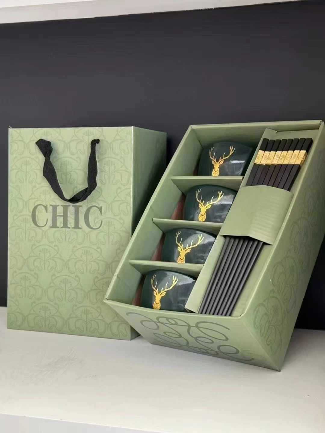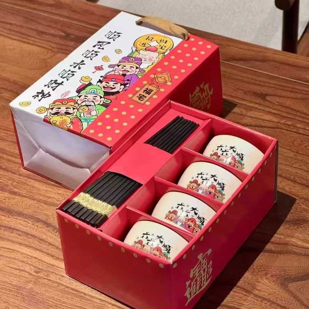 도매 세라믹 식기 그릇과 젓가락 세트 선물 상자 배치 회사 개업 이벤트 비즈니스 선물 그릇 기념품스토어 가기