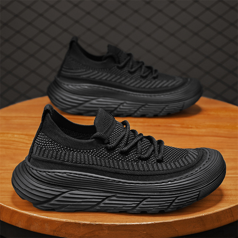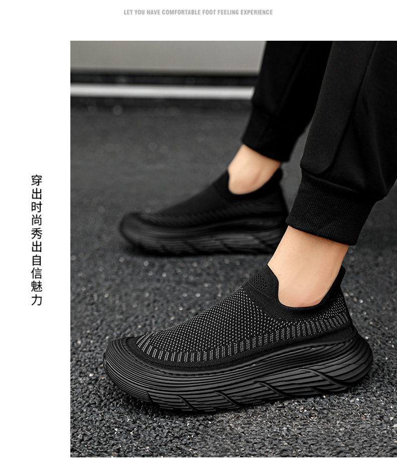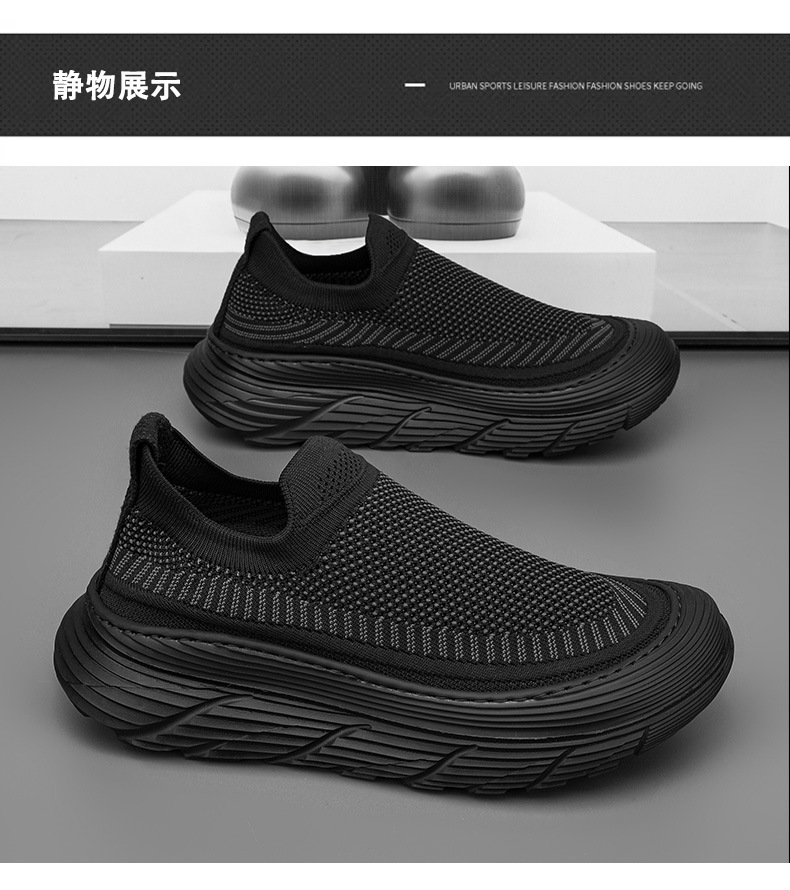 유럽 역 2024 새로운 봄 및 여름 캐주얼 스포츠 운동화 남자 슬립 온 두꺼운 밑창 플라이 짠 통기성 양말 남성 신발