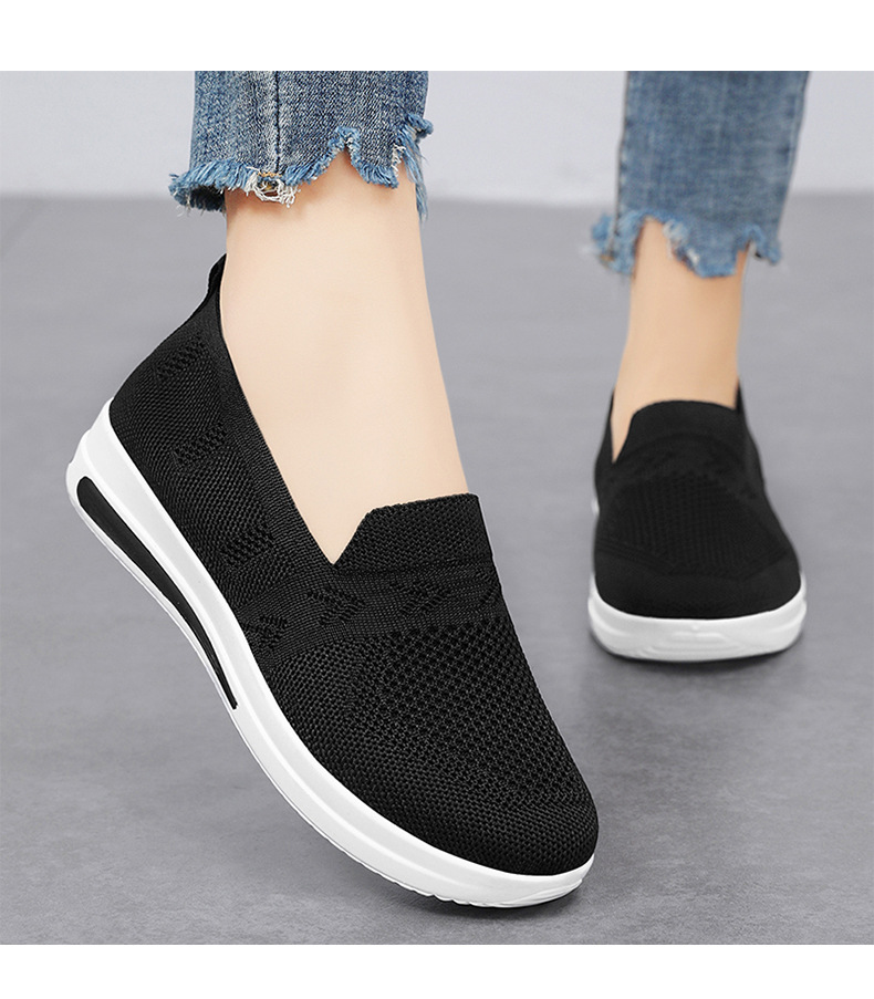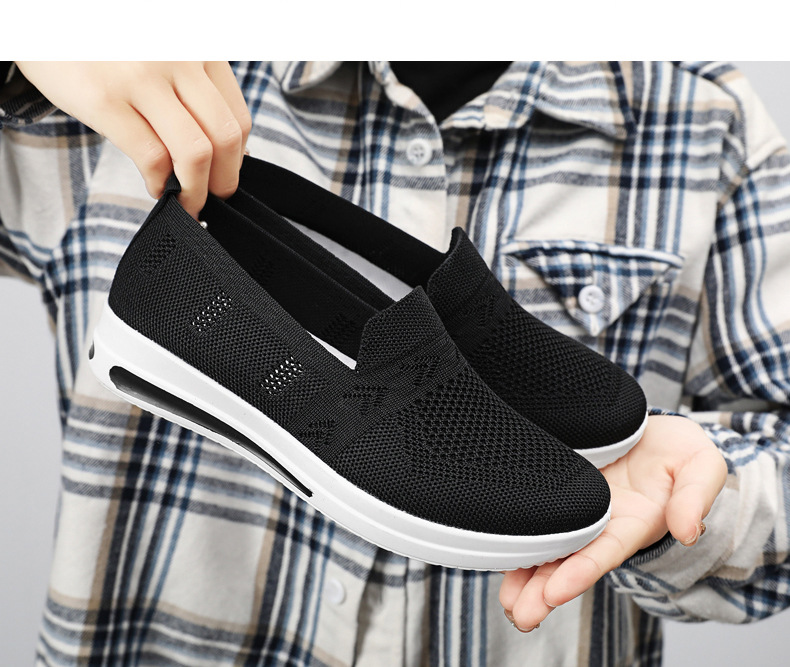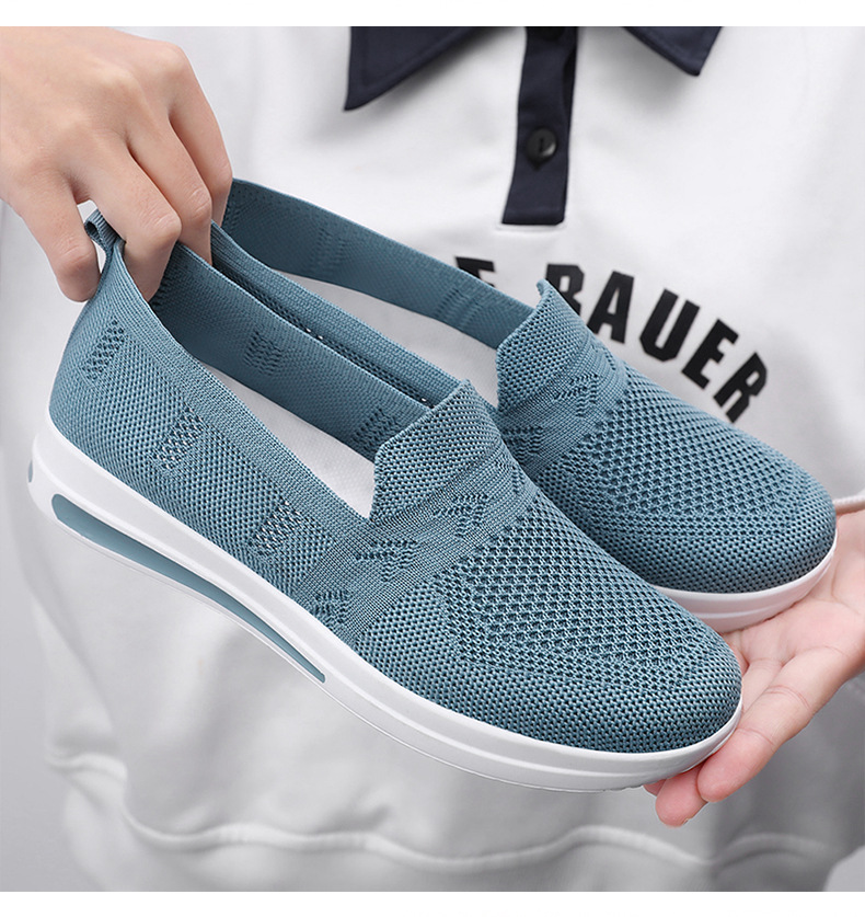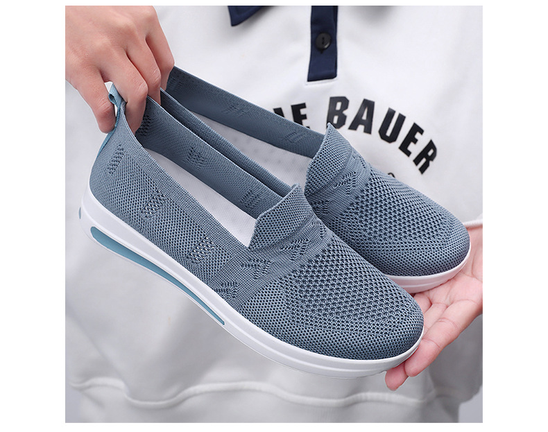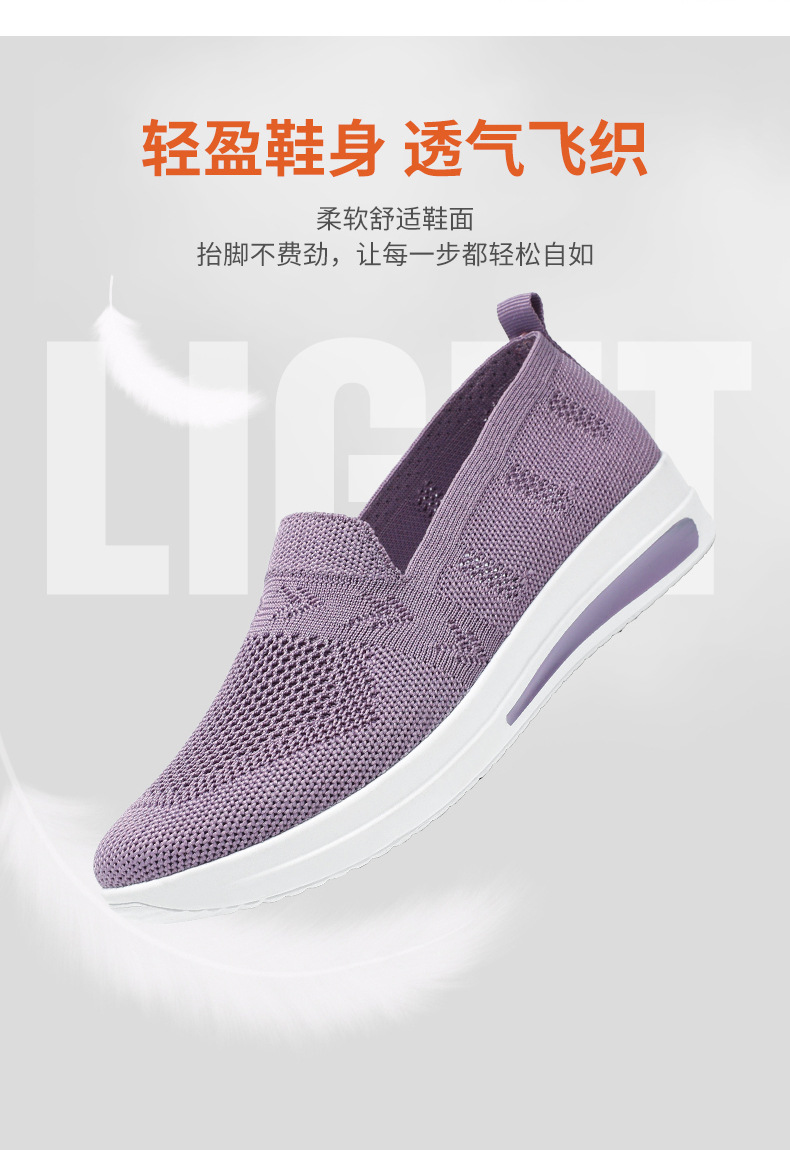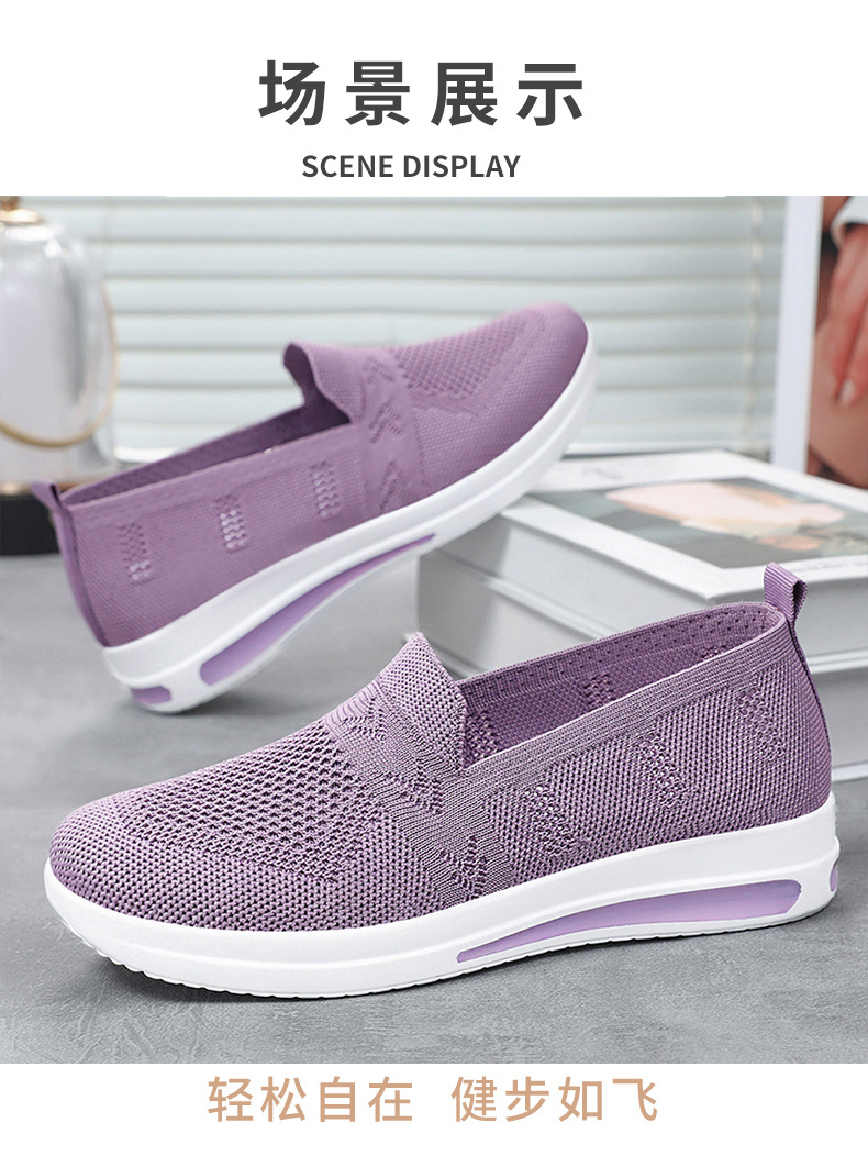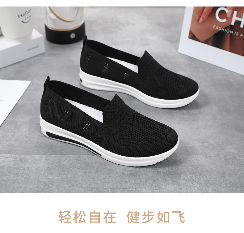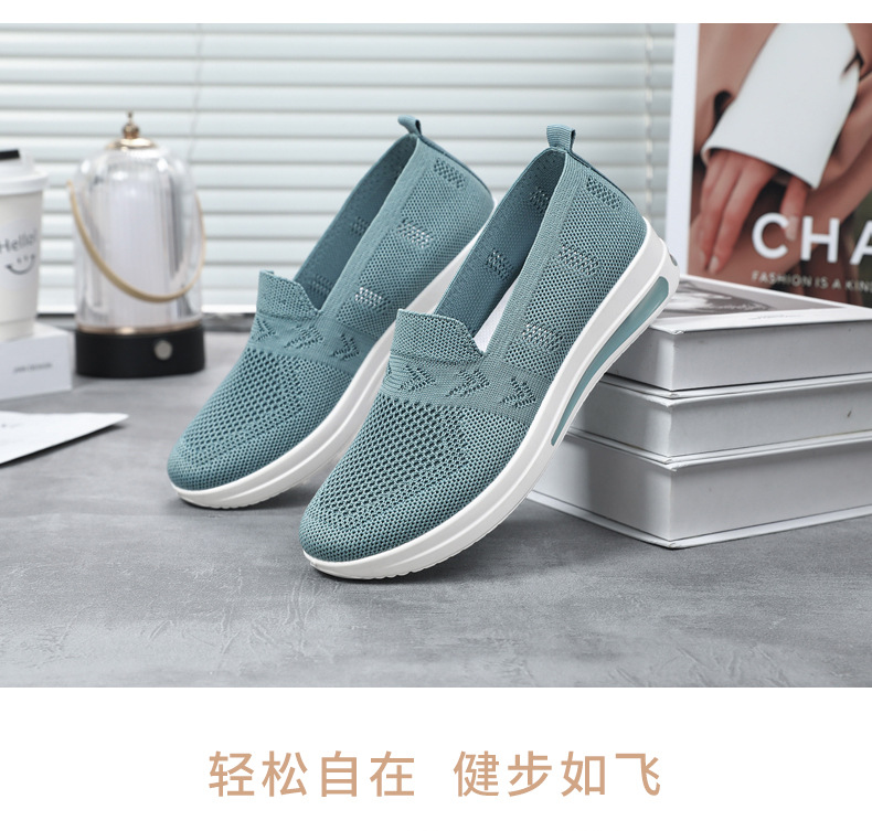 신발 여성의 여름 비행 직조 통기성 캐주얼 슈즈 슬립 온 마더 슈즈 라이트급 워킹 슈즈 솔리드 컬러 올 매치 싱글 레이어 슈즈